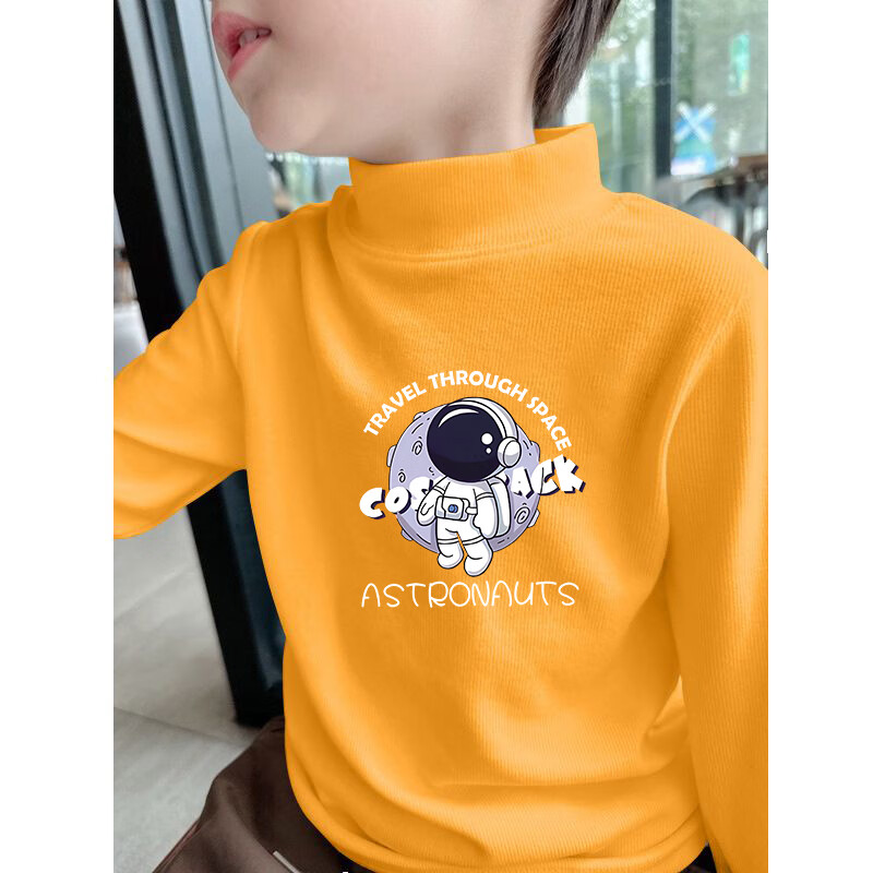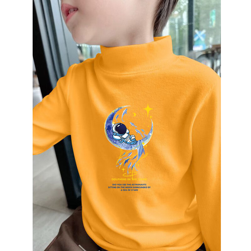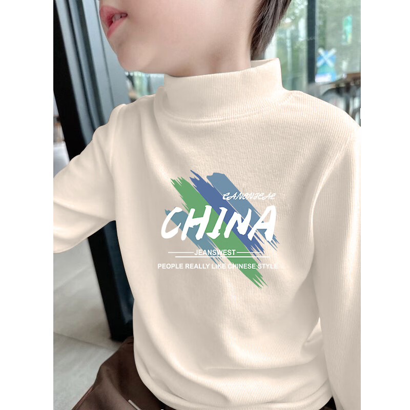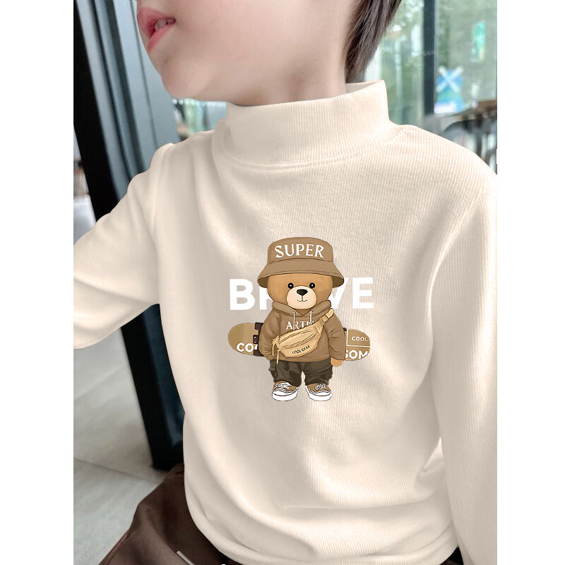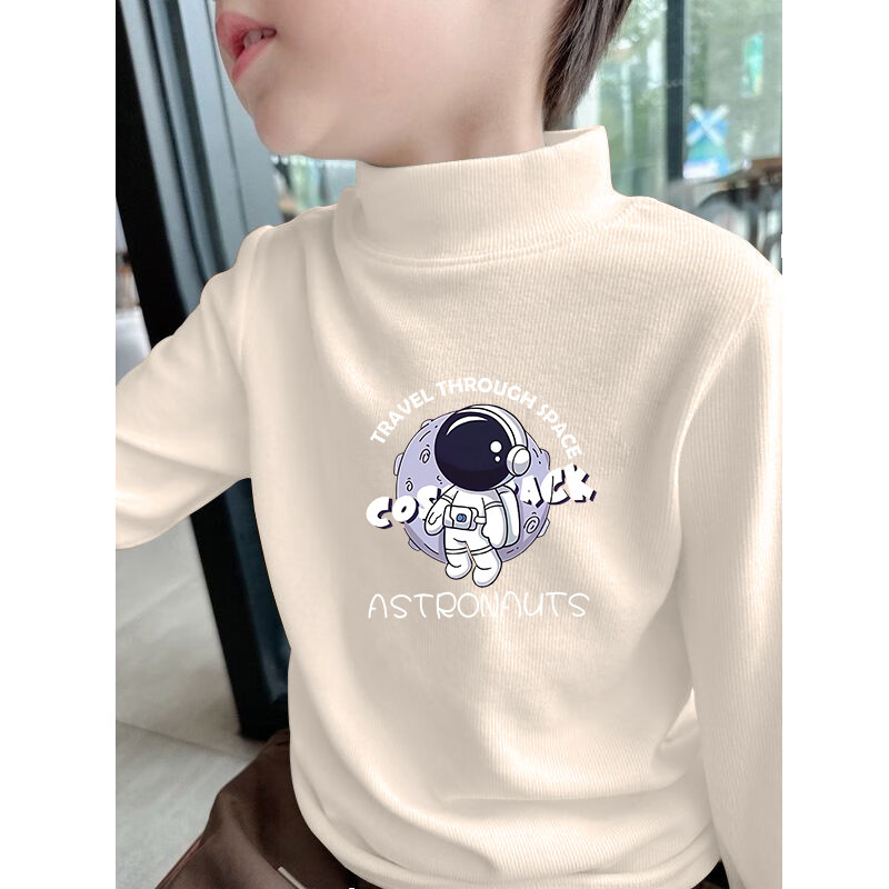 Boys' base layer shirt autumn and winter 2025 new children's warm double-sided German velvet long-sleeved T-shirt winter brushed top, apricot Y2439 150