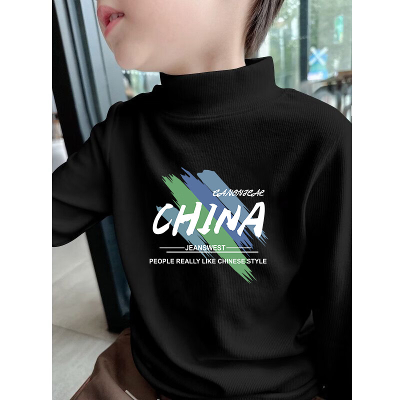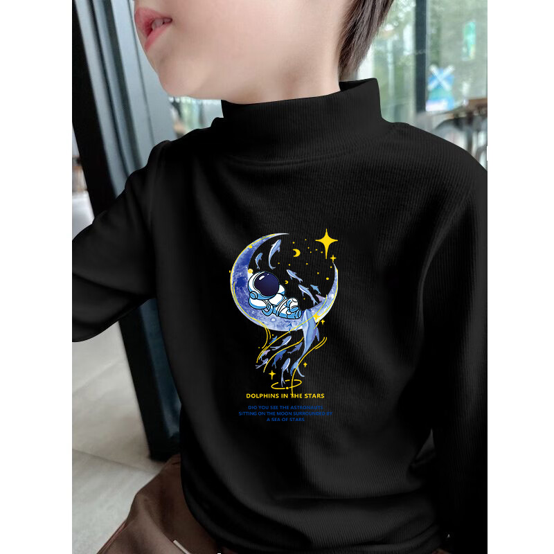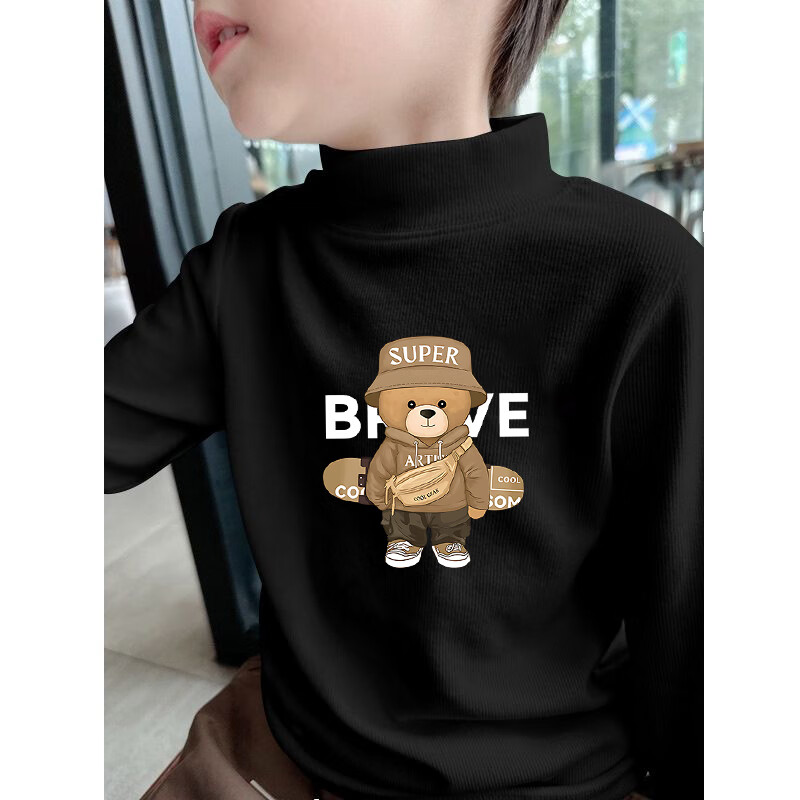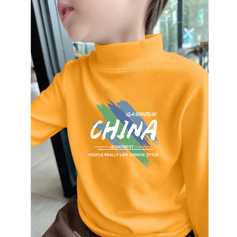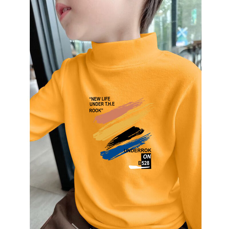 Boys' base layer shirt autumn and winter 2025 new children's warm double-sided German velvet long-sleeved T-shirt winter brushed top, apricot Y2439 150
