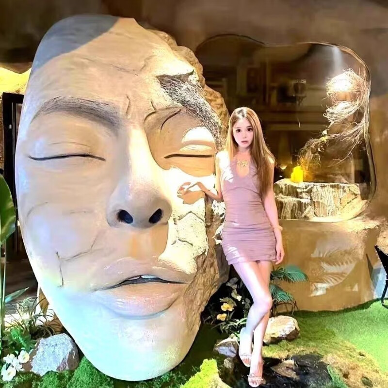 Large foam sculpture customized face giant face piece 3D check-in hotel shopping mall cafe props for photo taking Factory direct sales Customized to your drawings Please contact customer service for a quote
