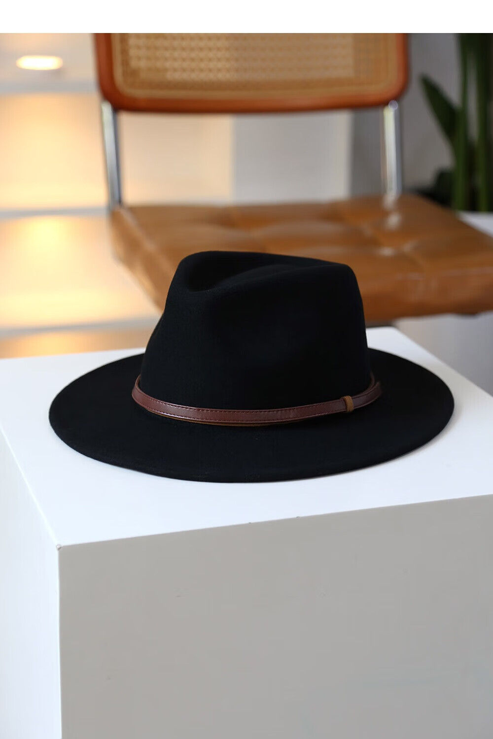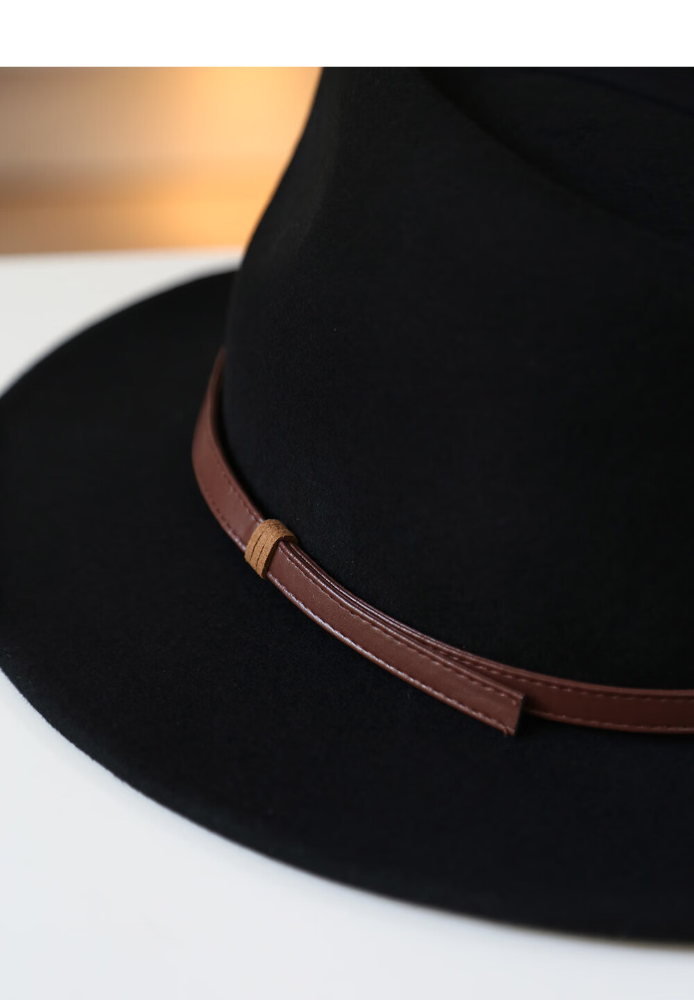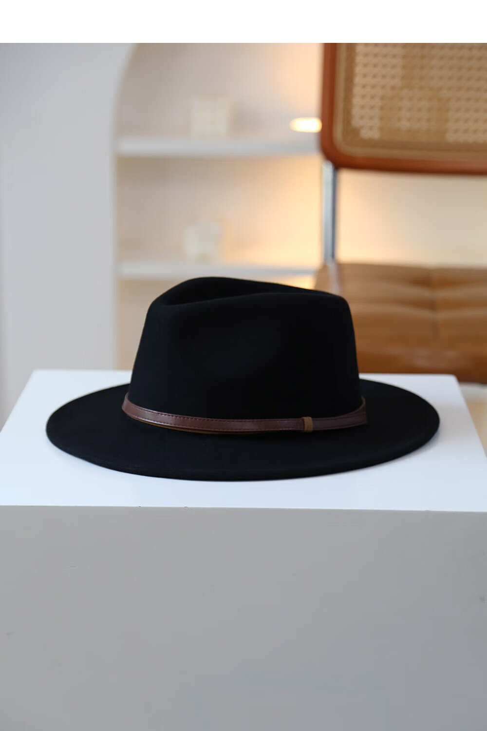 JOLISAC European and American gentleman rookie style wool hat for men and women in autumn and winter high-end British jazz belt hat felt hat for women black adjustable