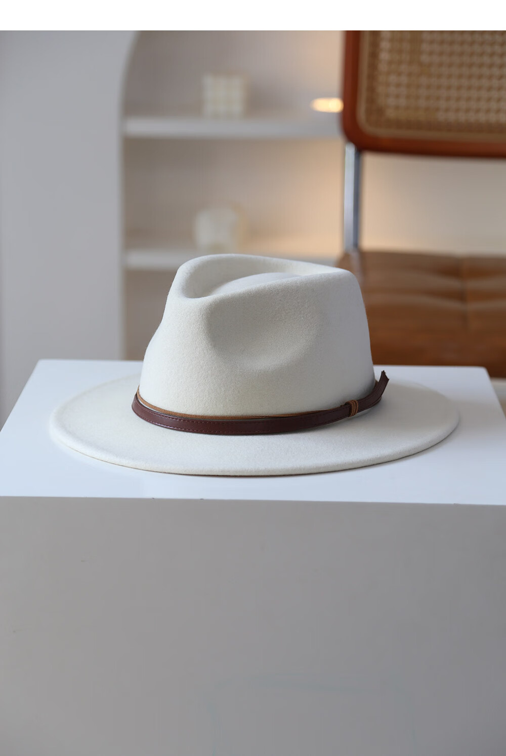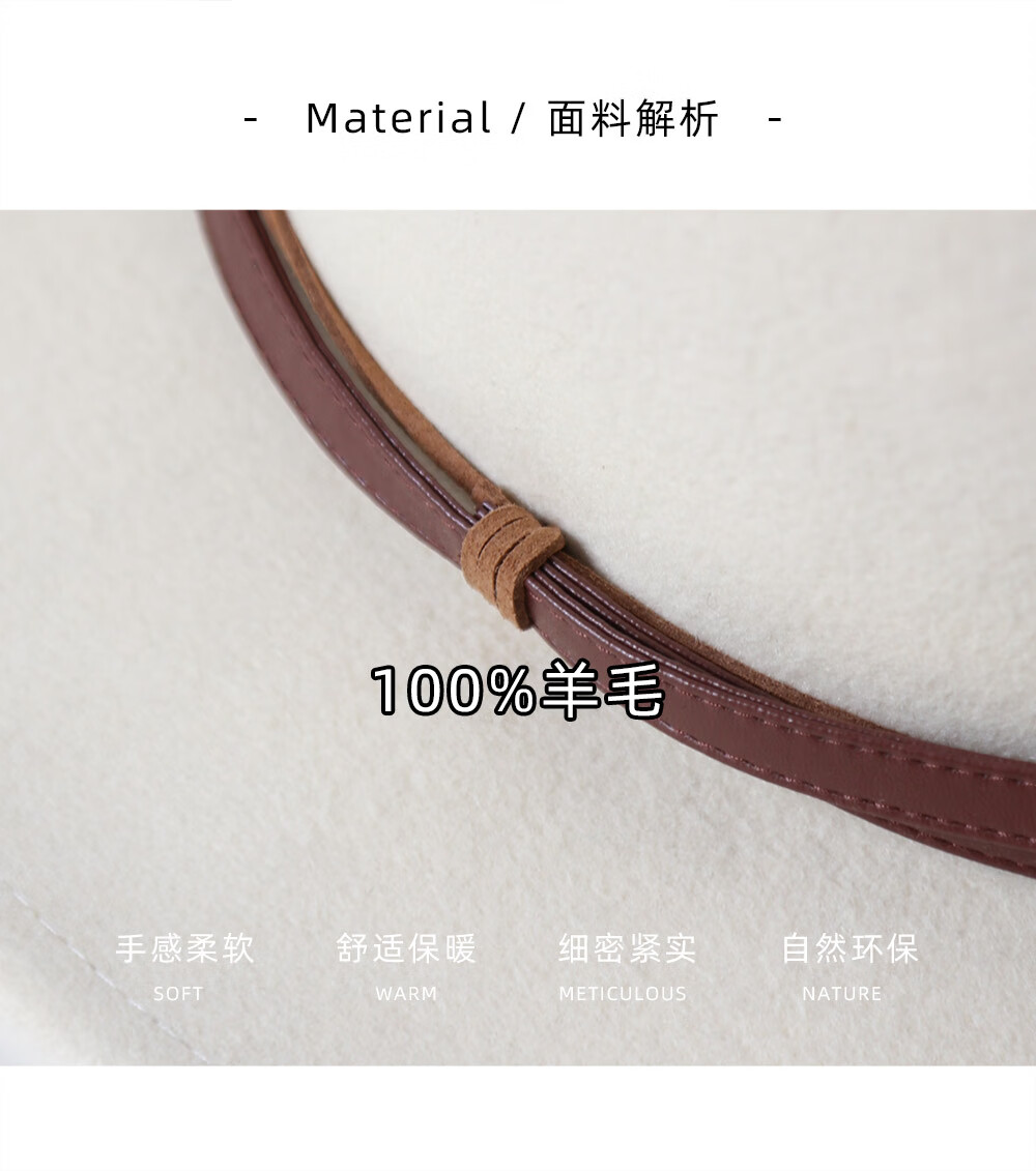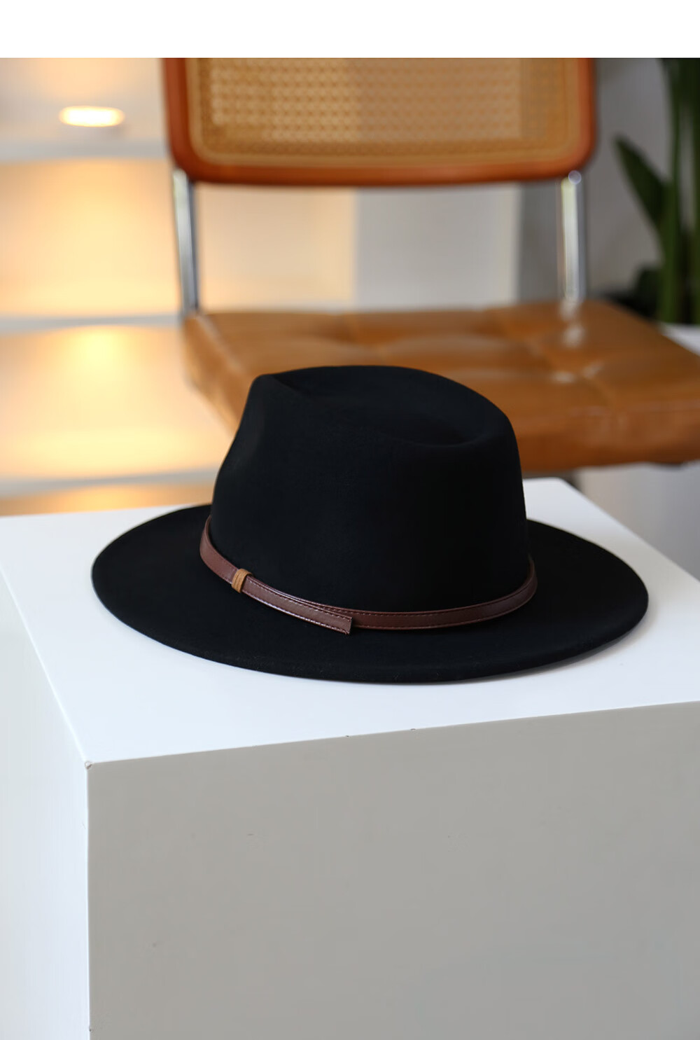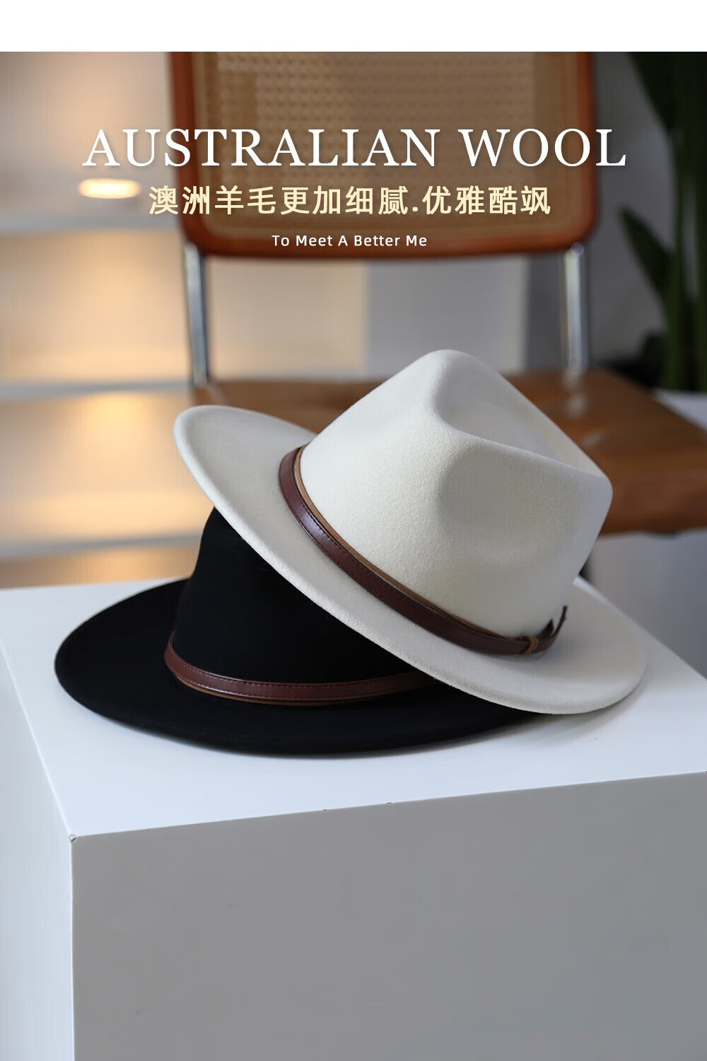JOLISAC European and American gentleman rookie style wool hat for men and women in autumn and winter high-end British jazz belt hat felt hat for women black adjustable
