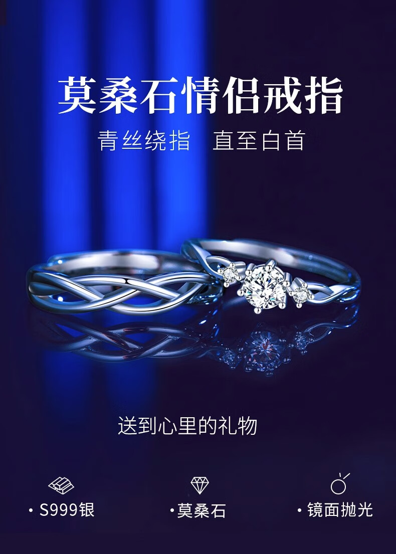 DR Official Flagship Moissanite Diamond Ring Ring for a Lifetime Couple Ring Open for a Lifetime Couple Ring + Quality Inspection Certificate