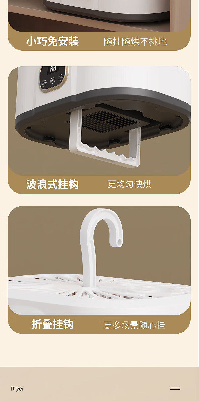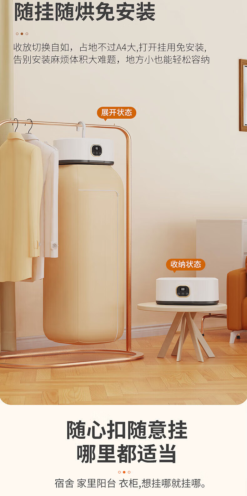 Jinghaohao Trend Care Appliance Dryer Home Clothes Hanging Dryer Portable Small Clothes Baby Clothes Dormitory Foldable Display 2025 Latest Model White Standard Configuration