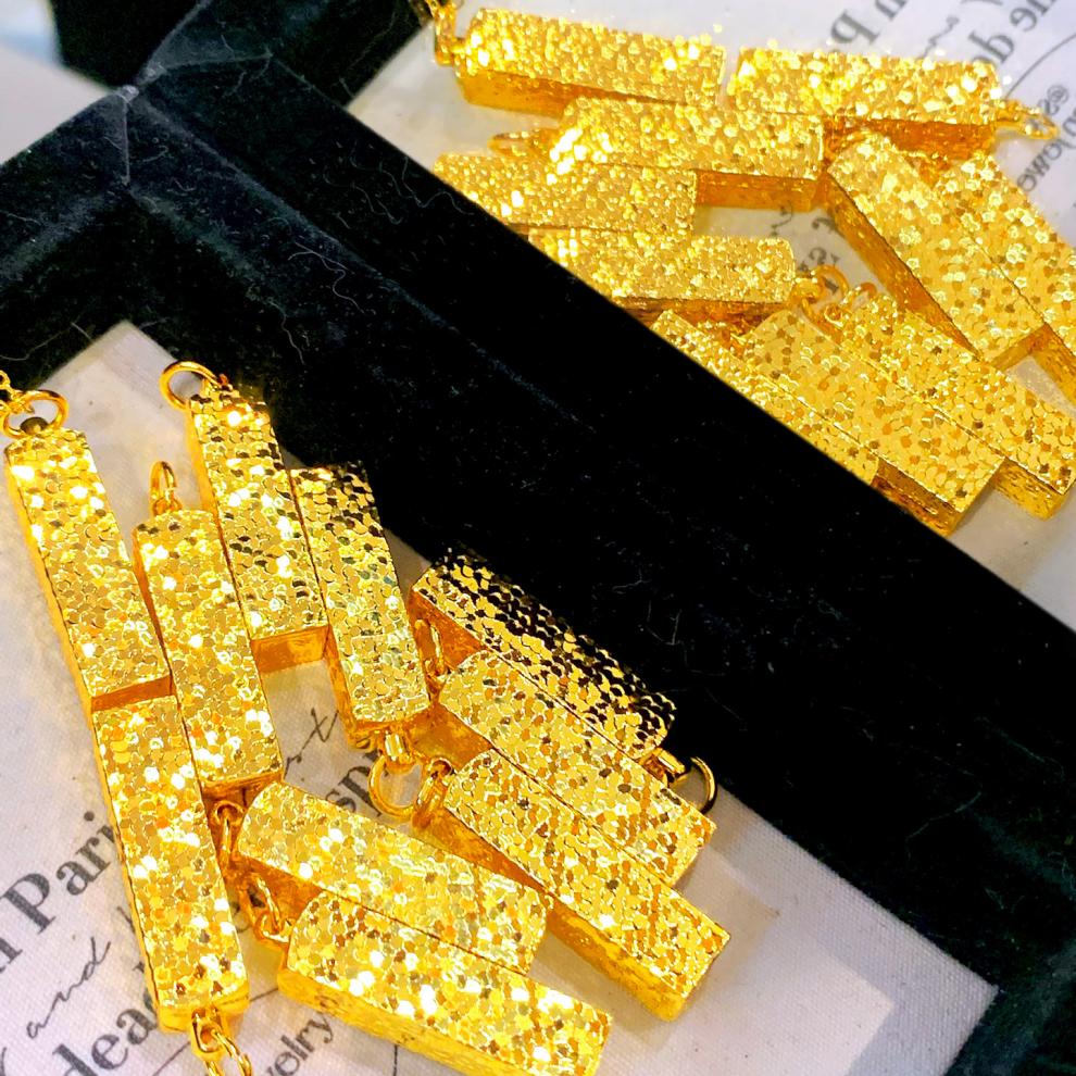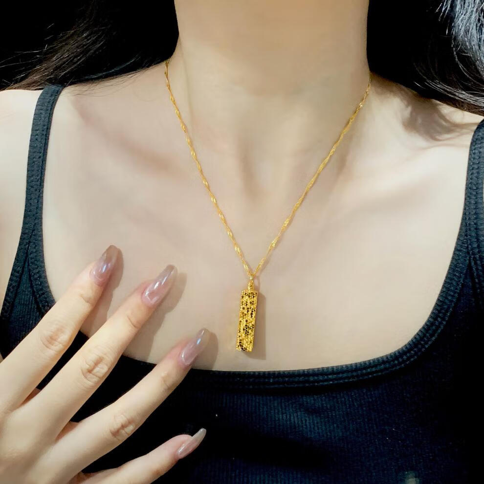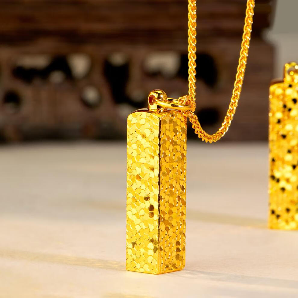 KZD Old Phoenix 999 Pure Gold Exploding Crushed Ice Square Lai Cai Small Square Bar Pendant Women's Fashion Crushed Ice Square Necklace Pendant (excluding chain) about 16 grams