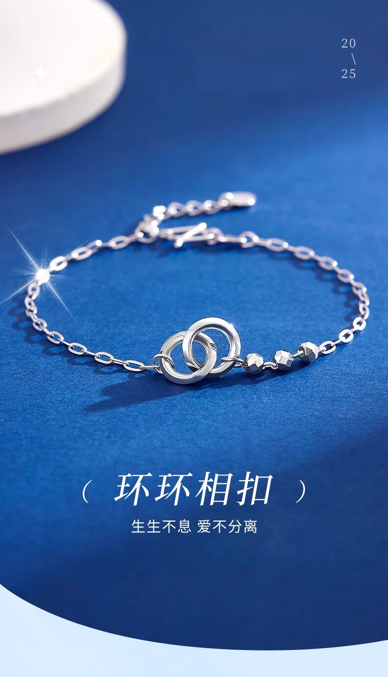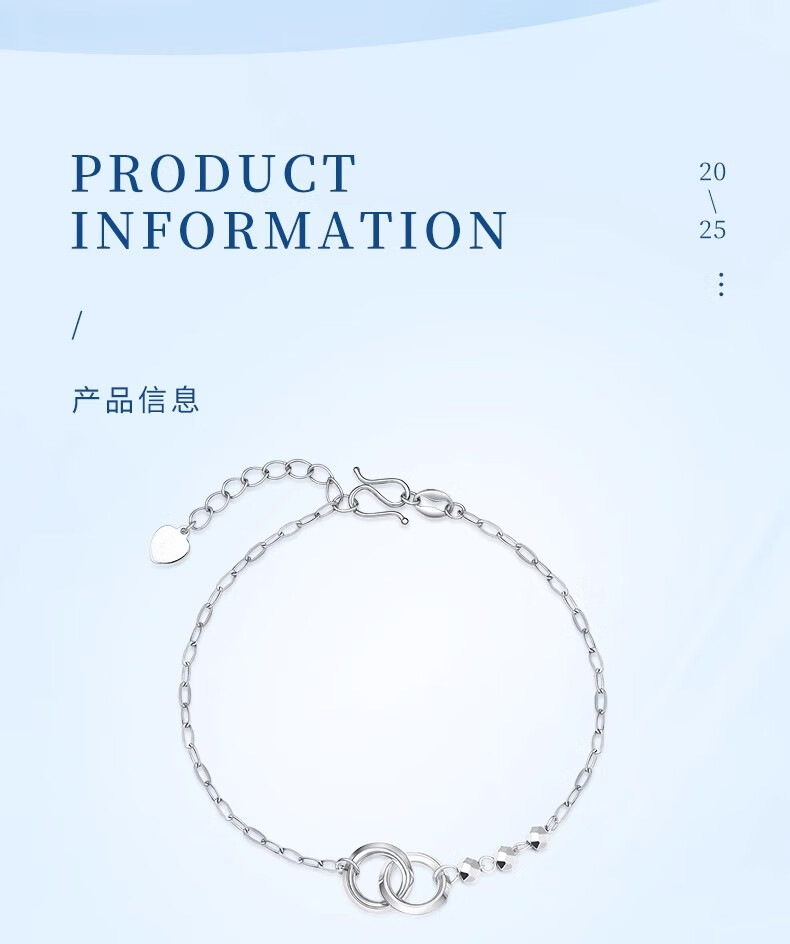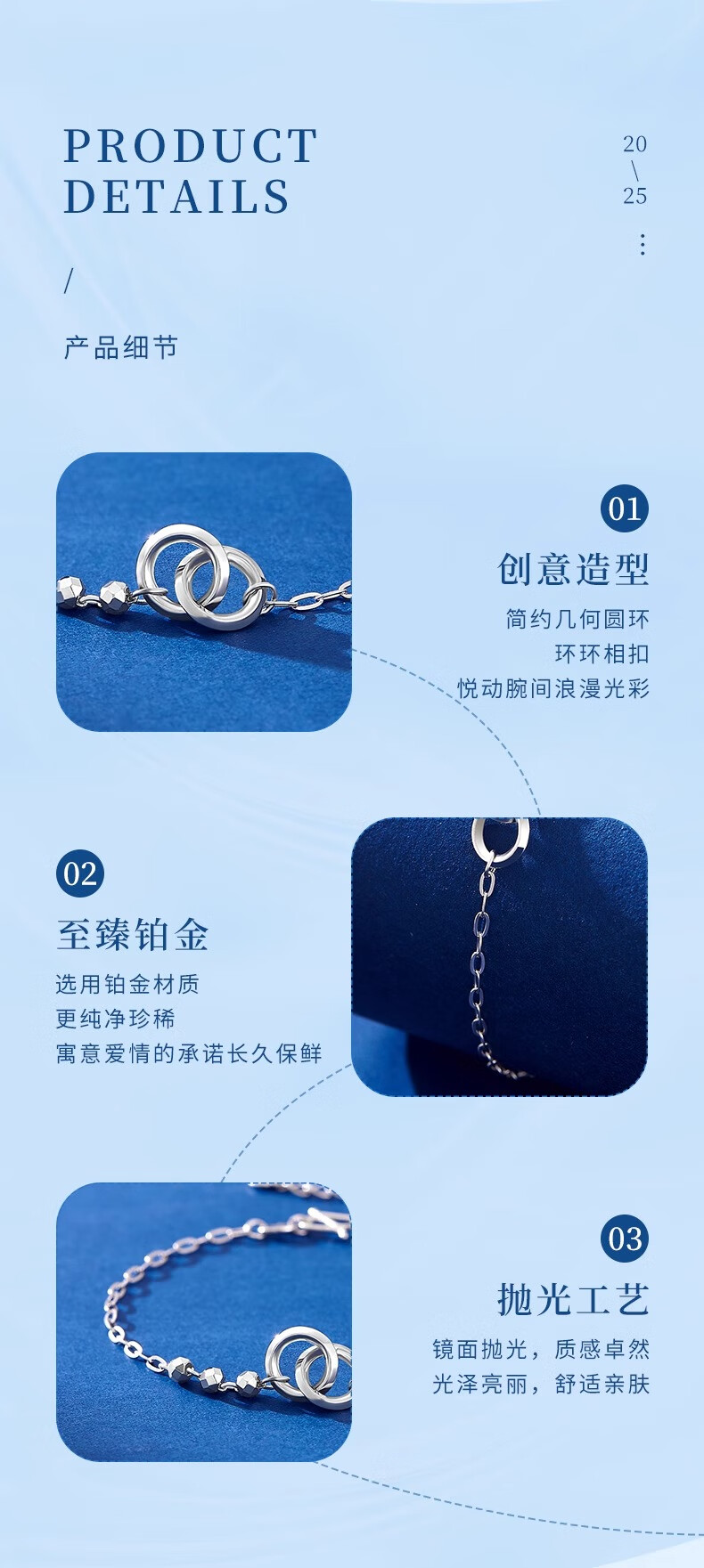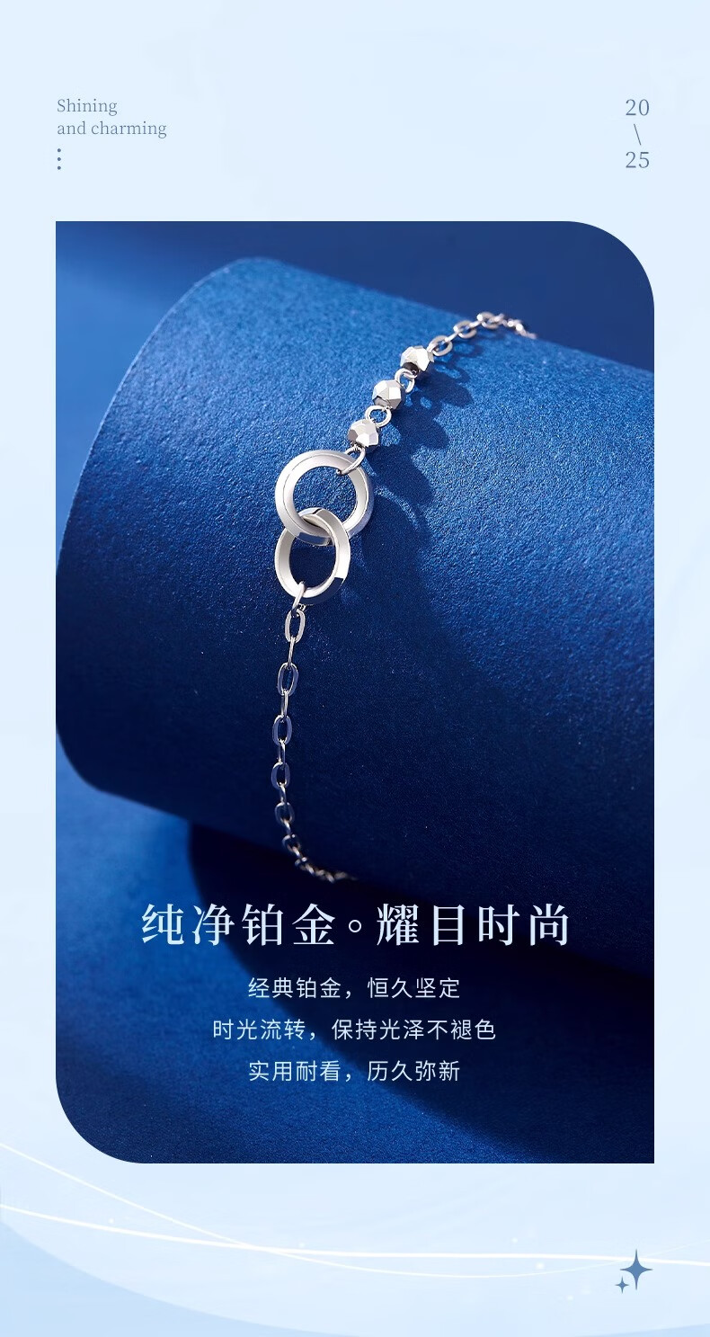 CHINA GOLD PT950 Platinum Interlocking Bracelet Women's Platinum Bracelet Wedding and Birthday Gifts for Women on Valentine's Day PT950 Platinum Interlocking Bracelet About 3.5g