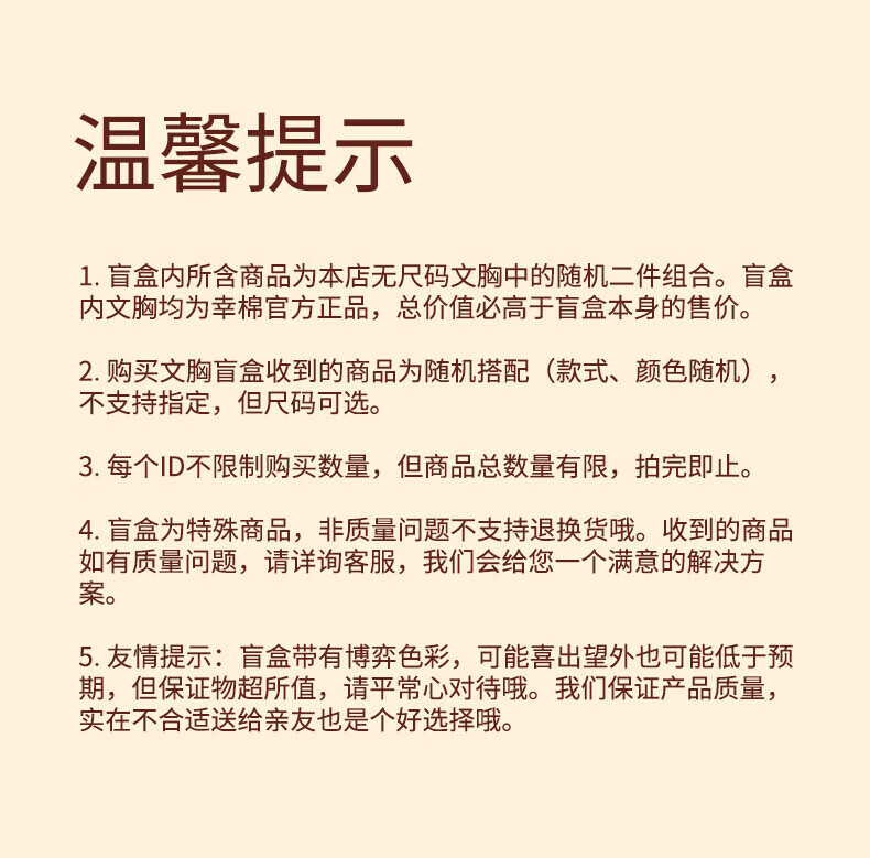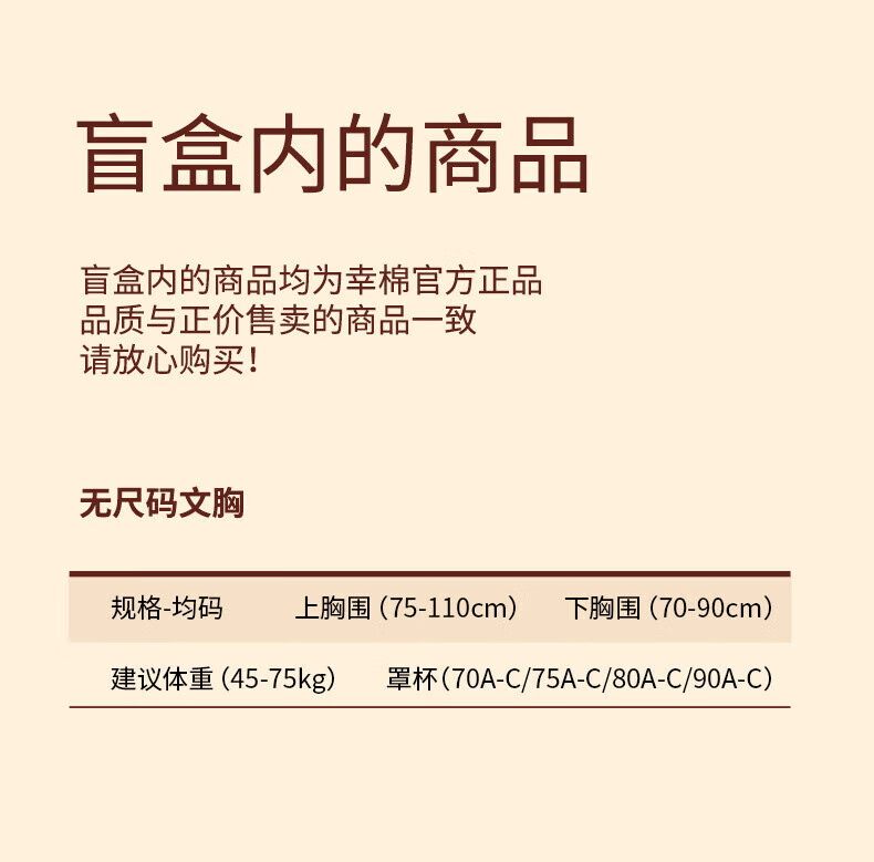 Lucky LUCKY underwear blind box 2-pack no size bra lucky bag optional 1 color 2-pack cream skin + random style no size one size fits all (A-C cup/90-140Jin Jin equals 0.5kg/bottom circumference 70-90)