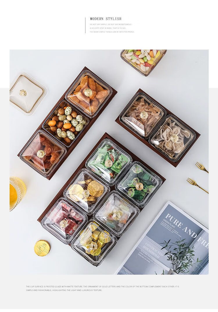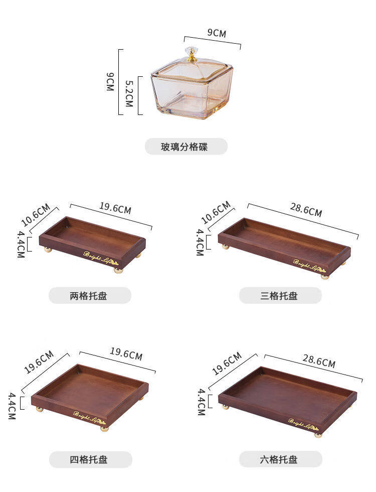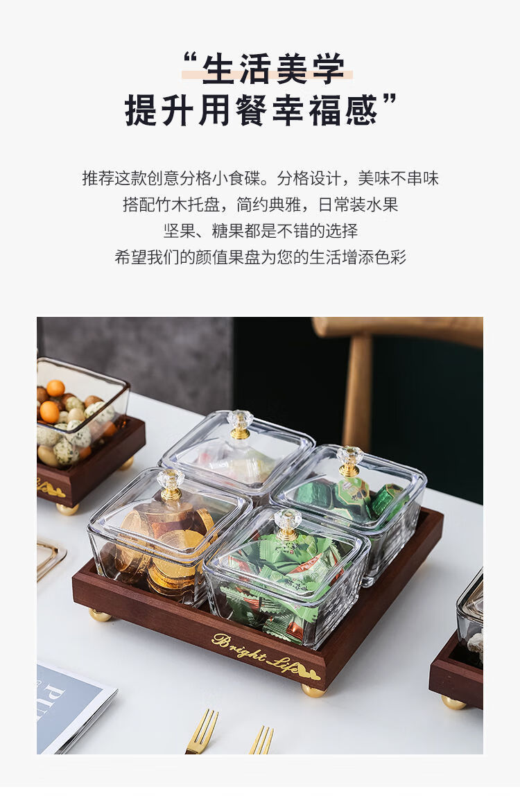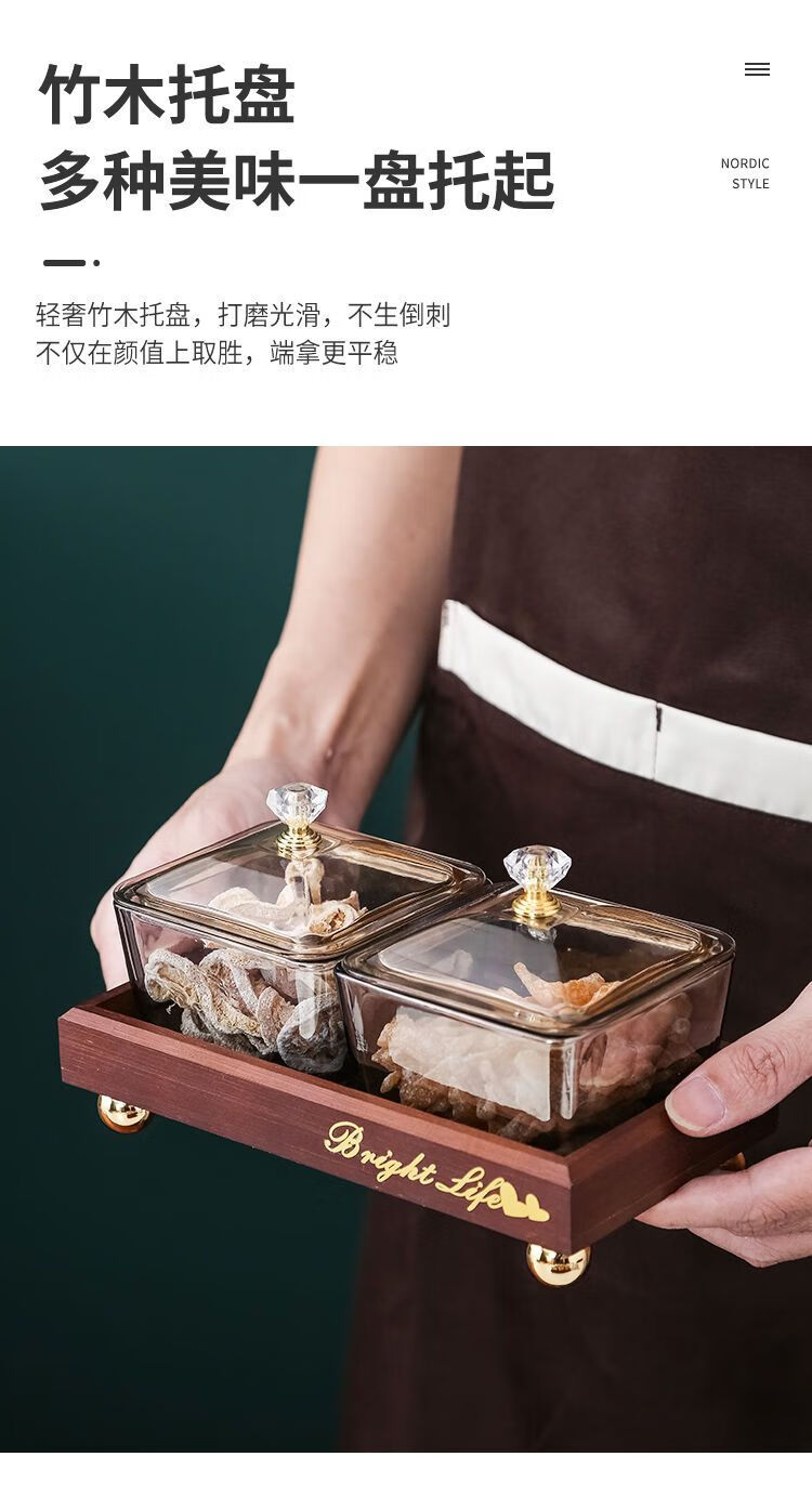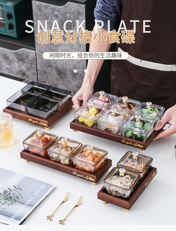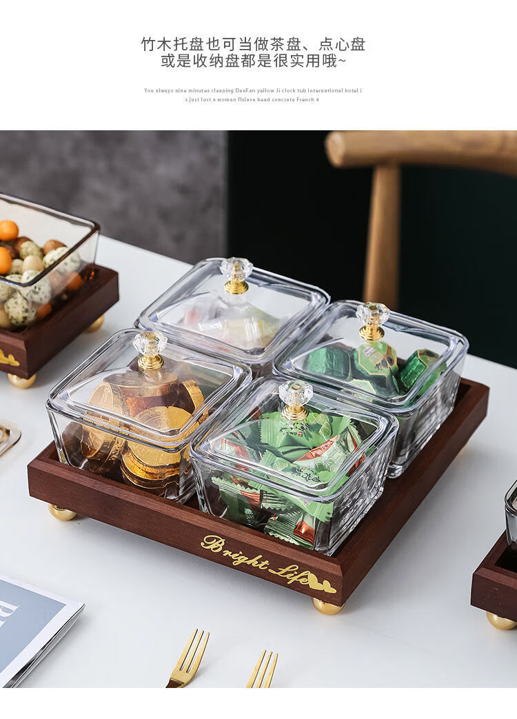 Harvest grain creative snack compartmented dry fruit plate Nordic ins glass fruit plate light luxury snack tea fruit plate internet celebrity fruit plate amber glass dish two glass dishes + two compartments bamboo tray