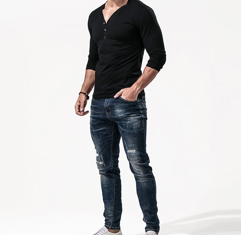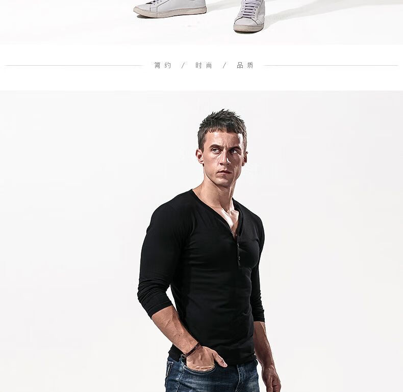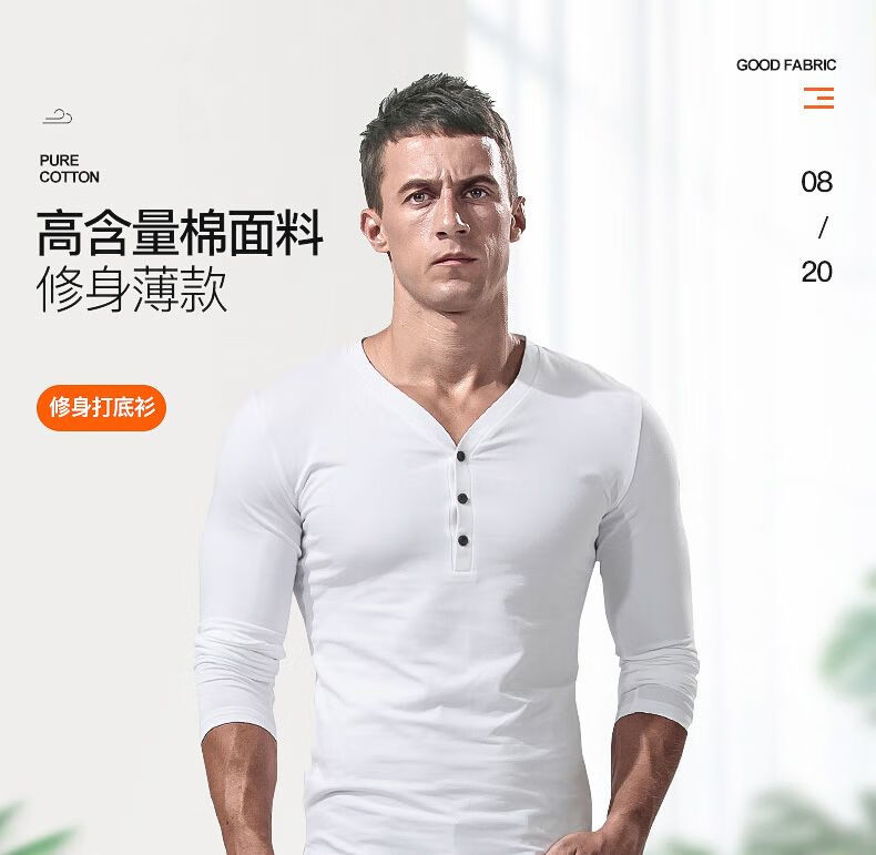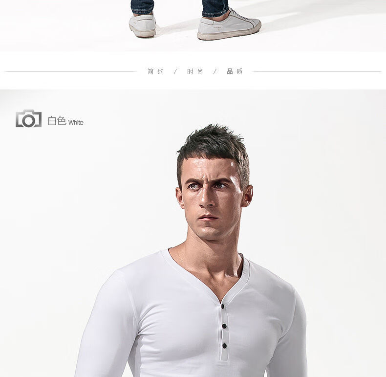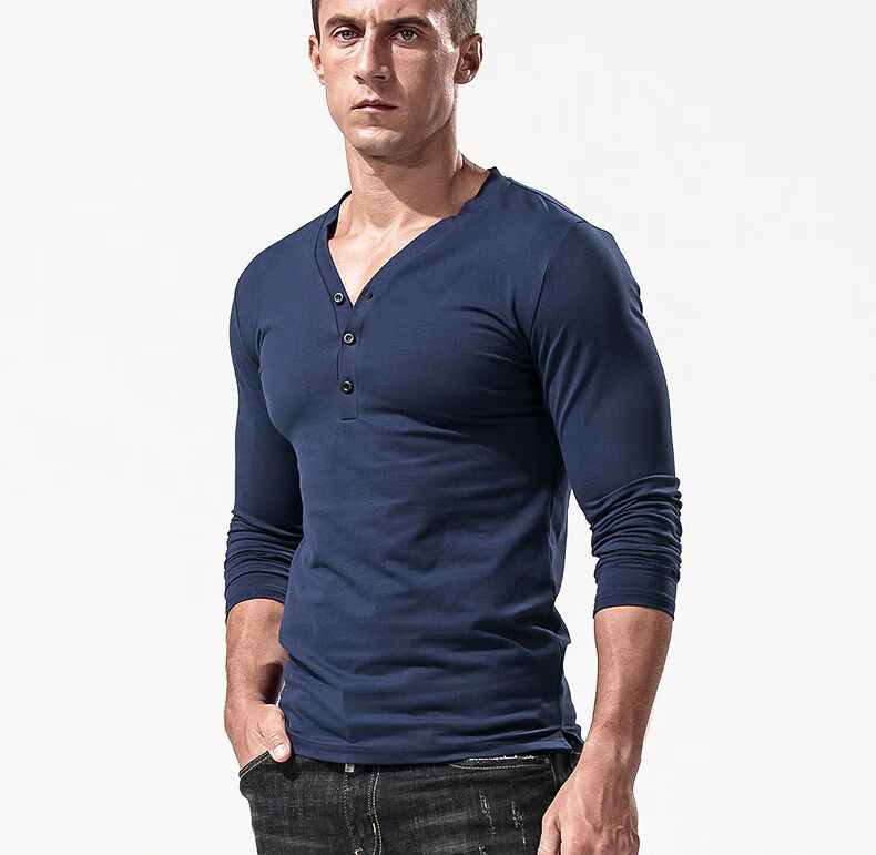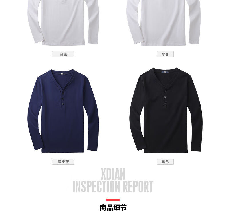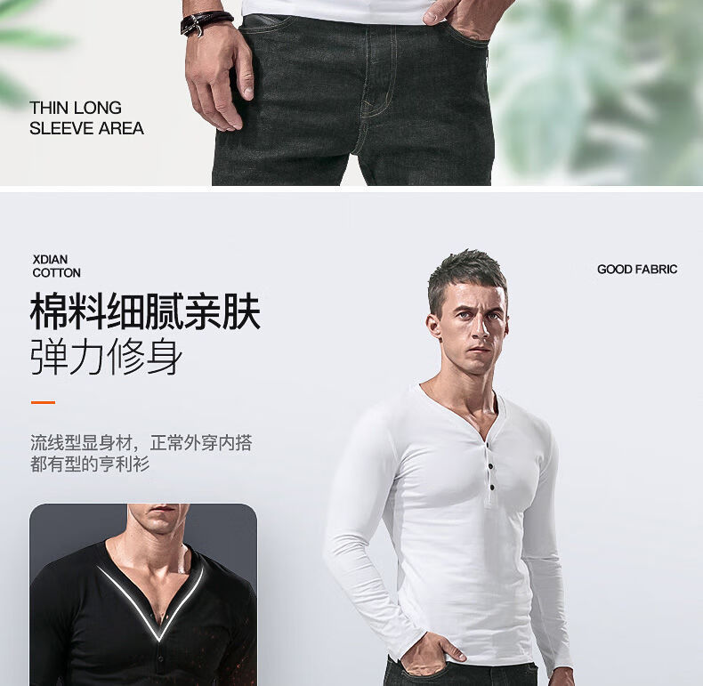Fanshu Henry shirt long-sleeved T-shirt for men, low-neck American retro bottoming shirt, tight-fitting top, large V-neck spring and autumn style, white M 90-118Jin Jin equals 0.5 kg