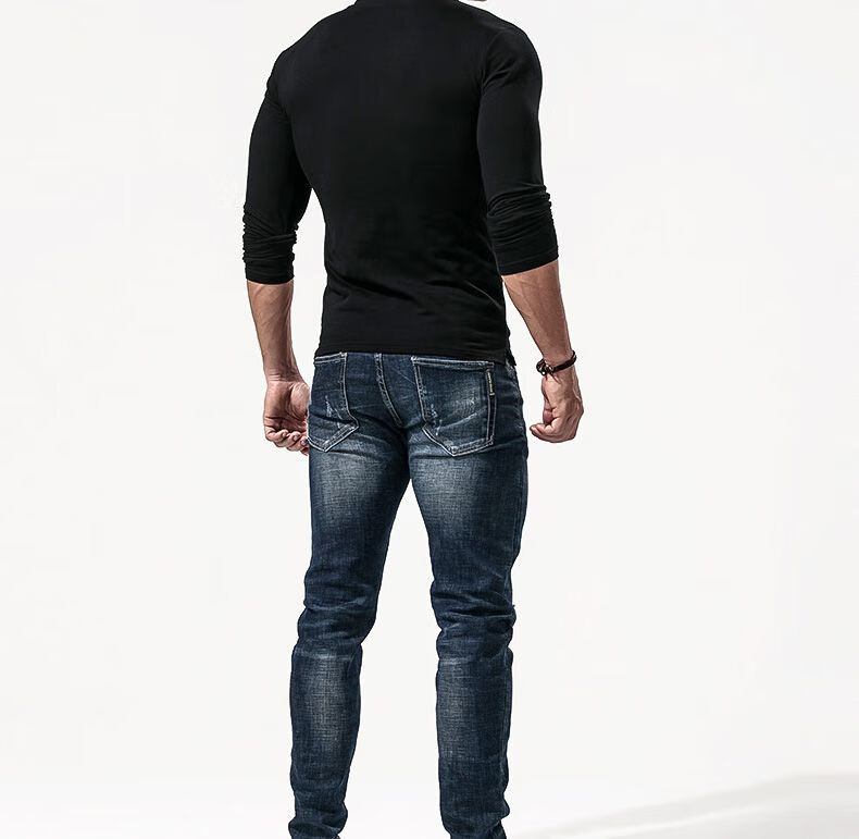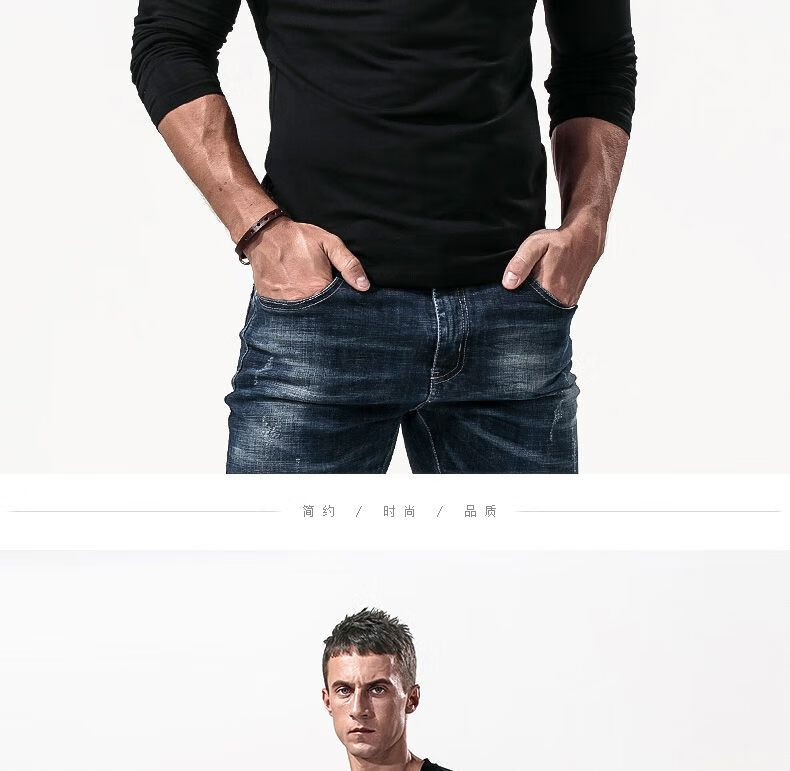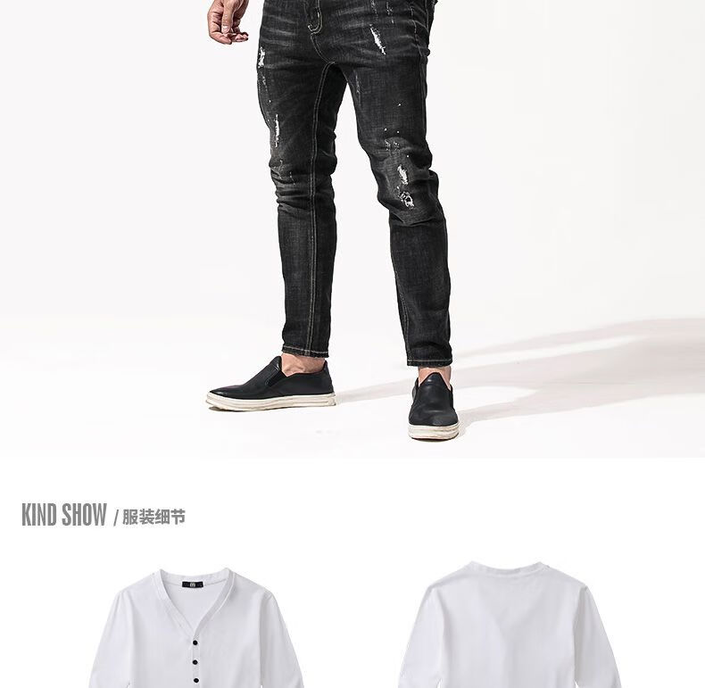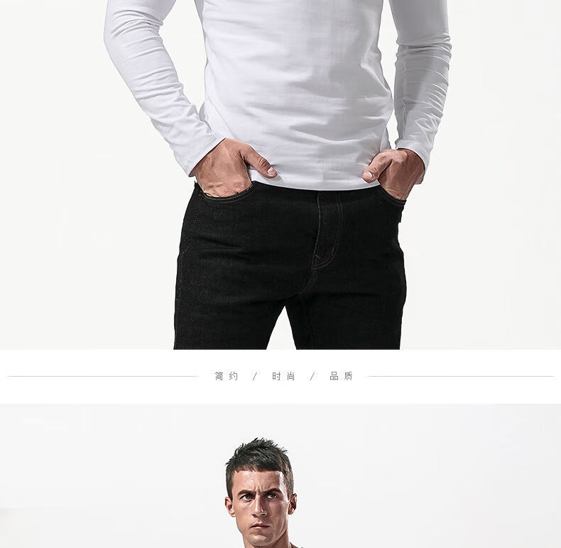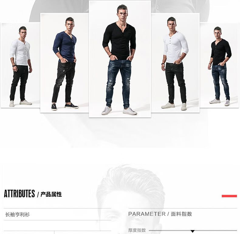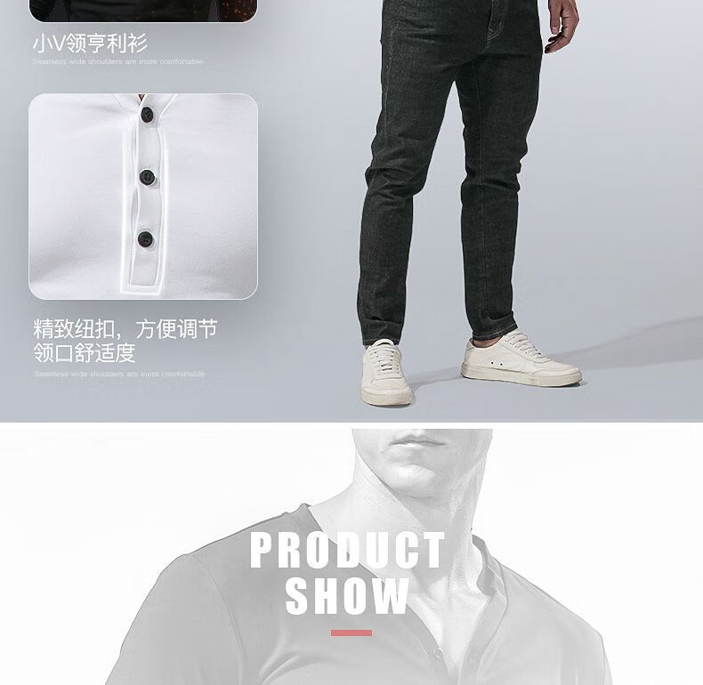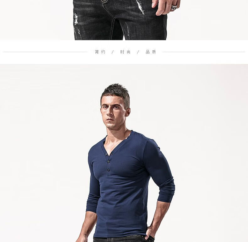 Fanshu Henry shirt long-sleeved T-shirt for men, low-neck American retro bottoming shirt, tight-fitting top, large V-neck spring and autumn style, white M 90-118Jin Jin equals 0.5 kg