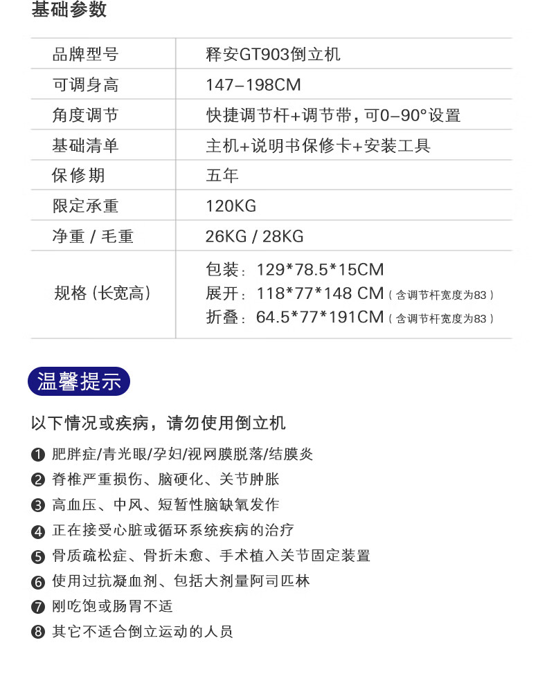 Shi'an inversion machine, home fitness equipment, upside-down hanging artifact, lumbar and cervical traction, multi-functional inversion and stretching all-in-one machine GT903 luxury model (top pressure ball + cervical traction + handstand)