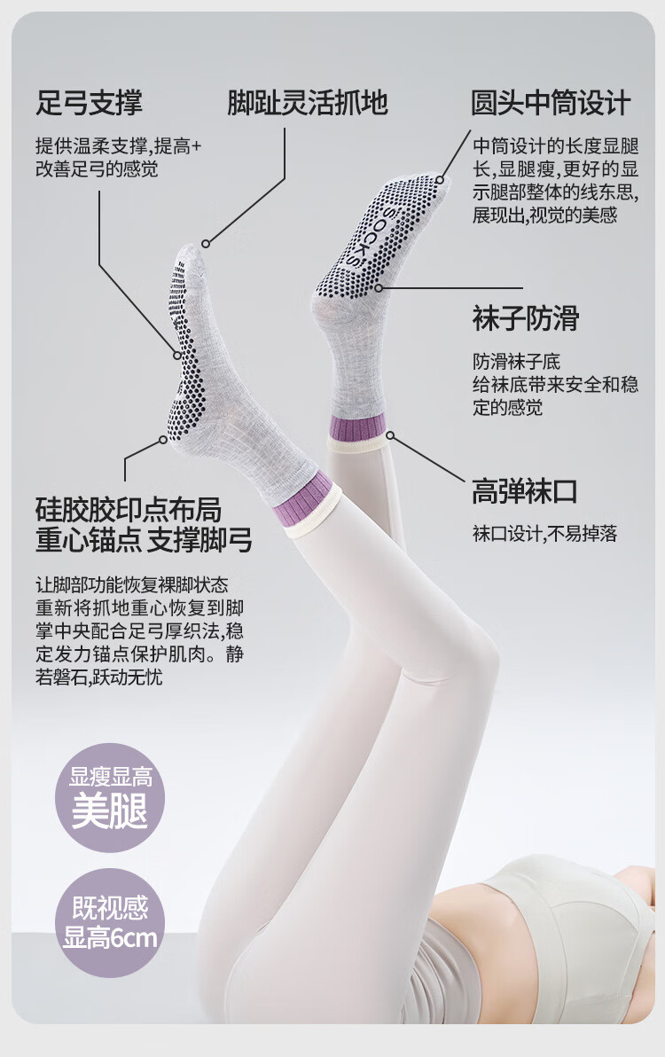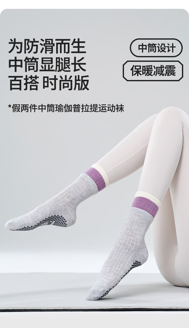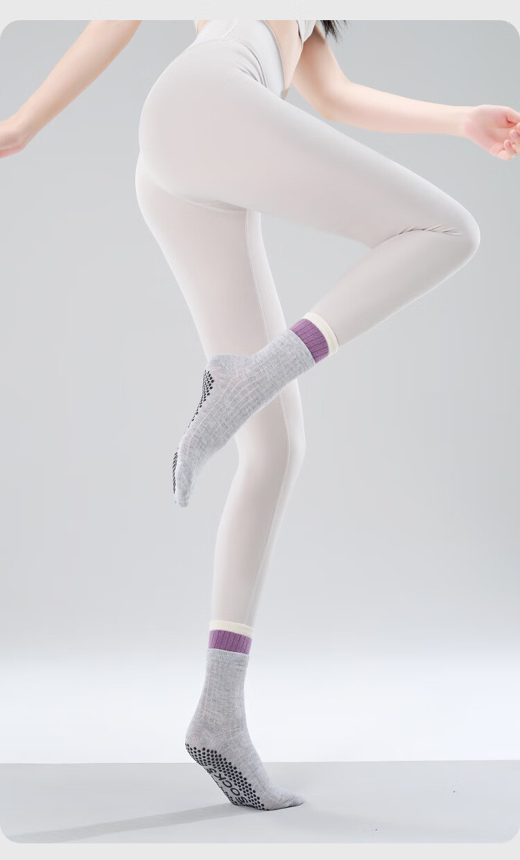 BIBK Japanese Yoga Socks Pilates Socks Double Layer Medium Tube New Sweat-Absorbent Breathable Adhesive Anti-Slip Sports Fitness Socks Yunshui Blue