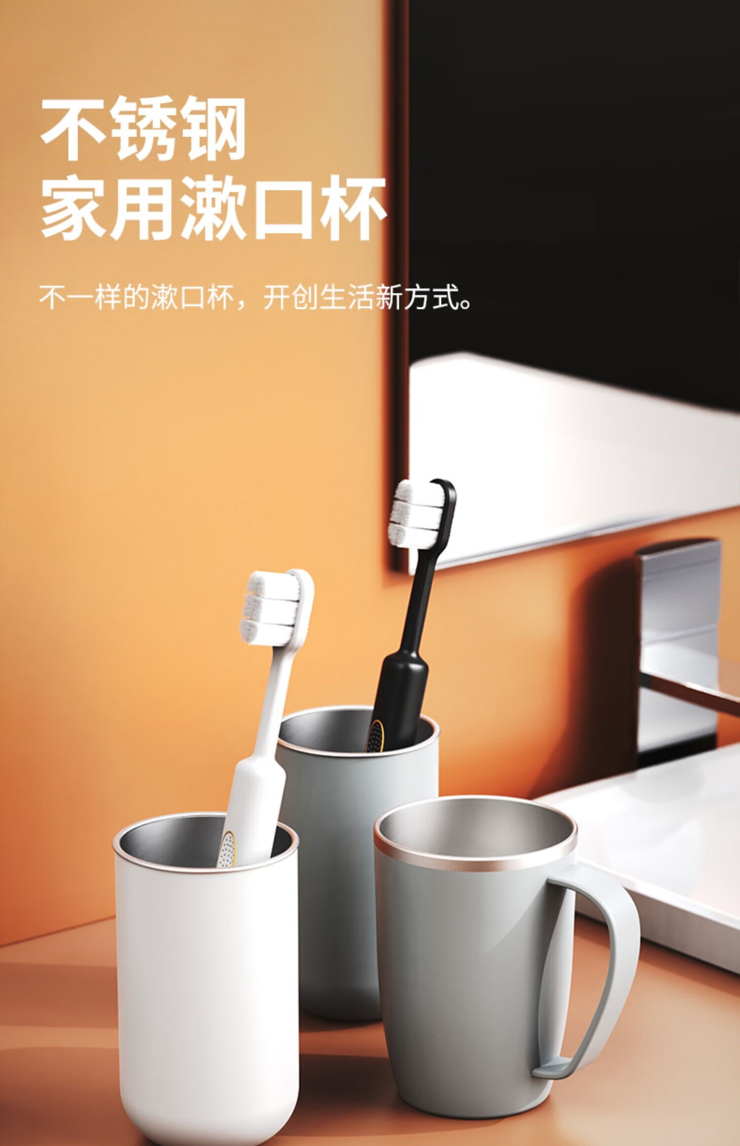 Yakong mouthwash cup, toothbrushing cup, household toothbrush cup, dental cylinder, stainless steel wash cup, couple set, children's set, stainless steel white with handle