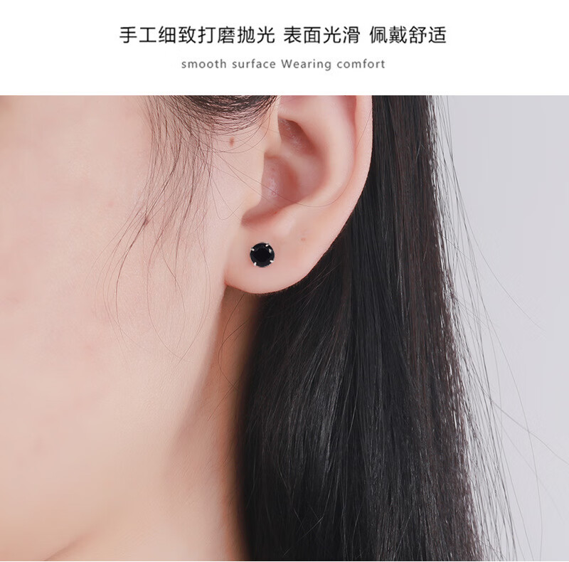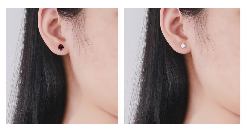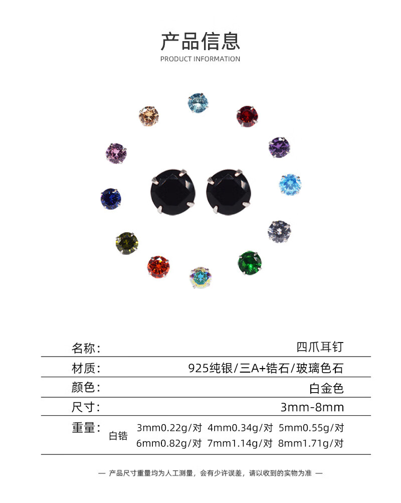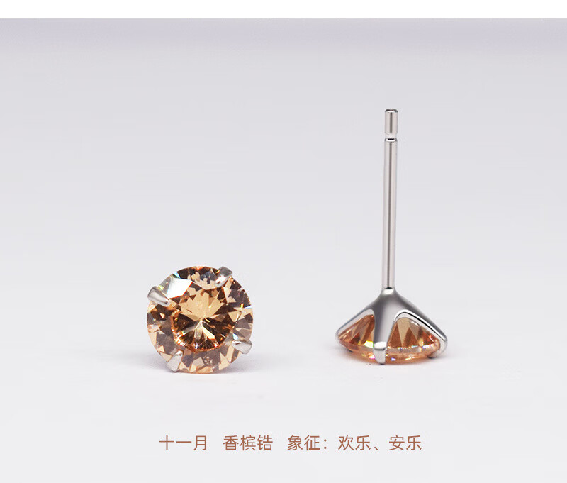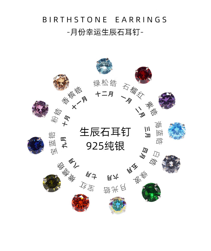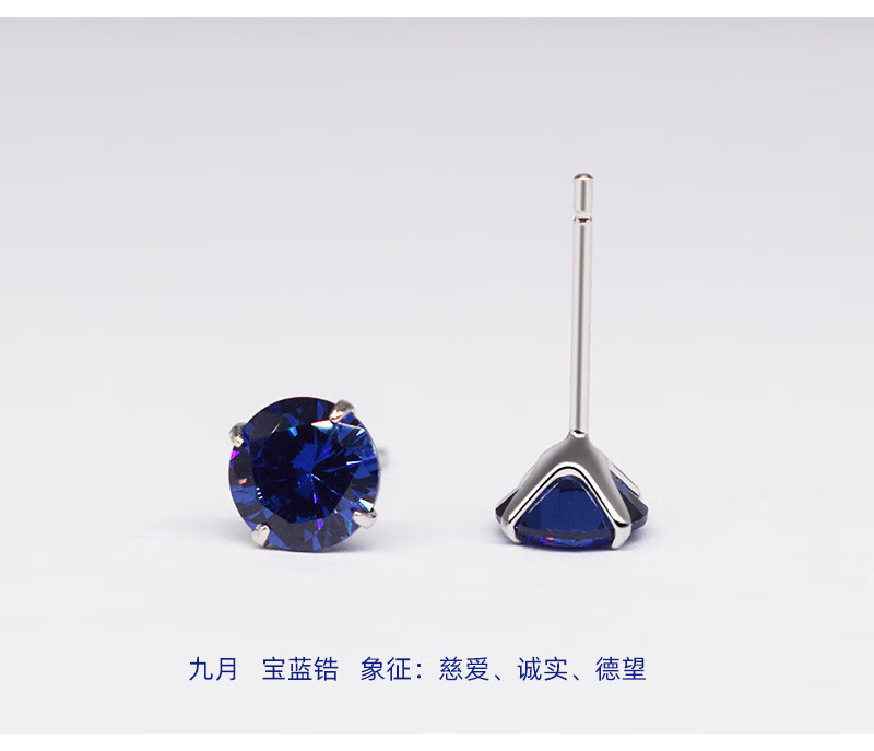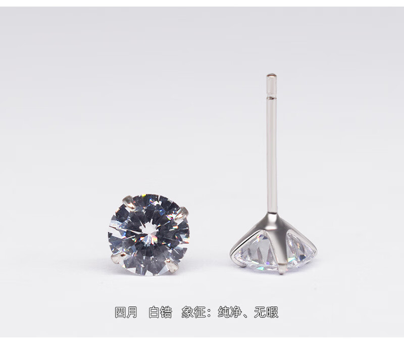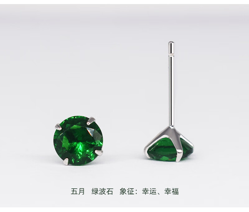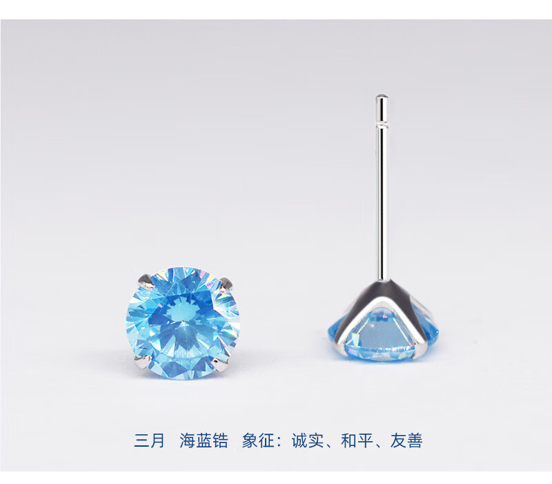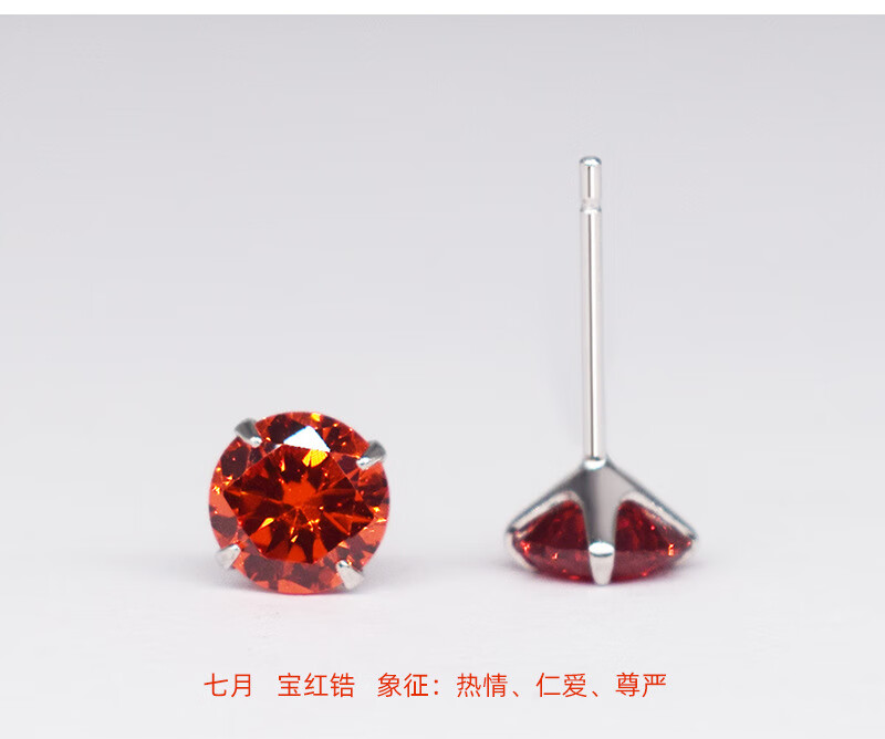 Lao Fengxiang sterling silver 925 four-claw zircon earrings for women, extremely simple ins crystal birthstone ear piercing earrings, white earrings, July, fiery love, ruby red zirconium 7mm