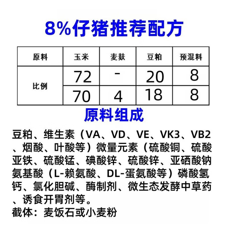 Zhengda 8% piglet premix nursery period fattening piglet suckling pig weaning feed stretched skeleton high lysine 8% piglet 5 bags