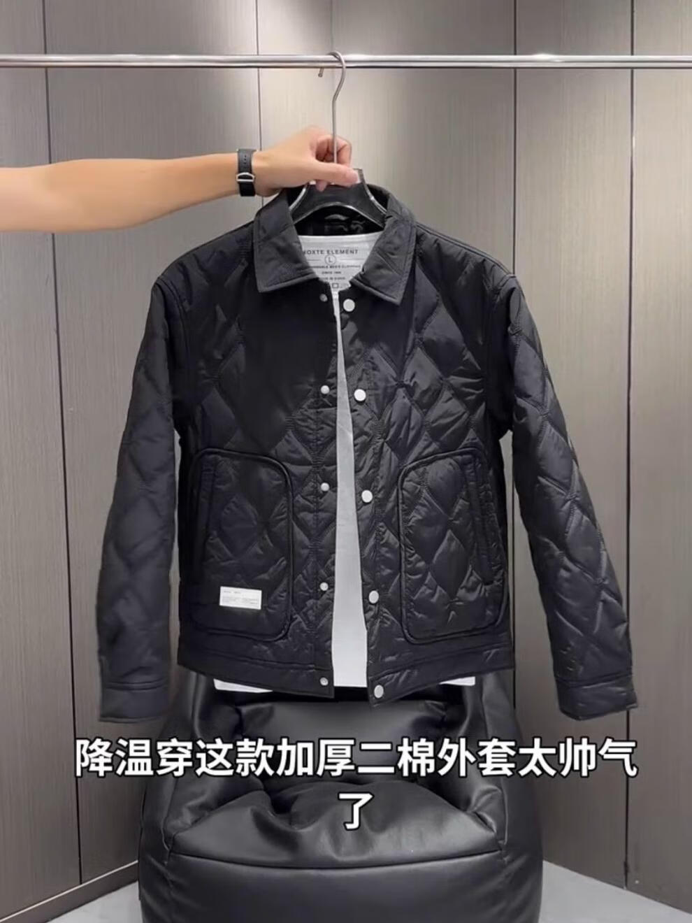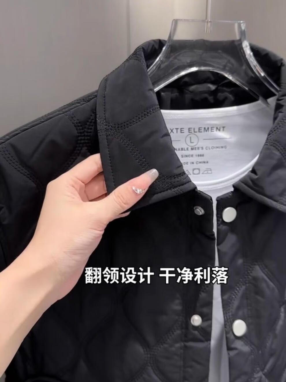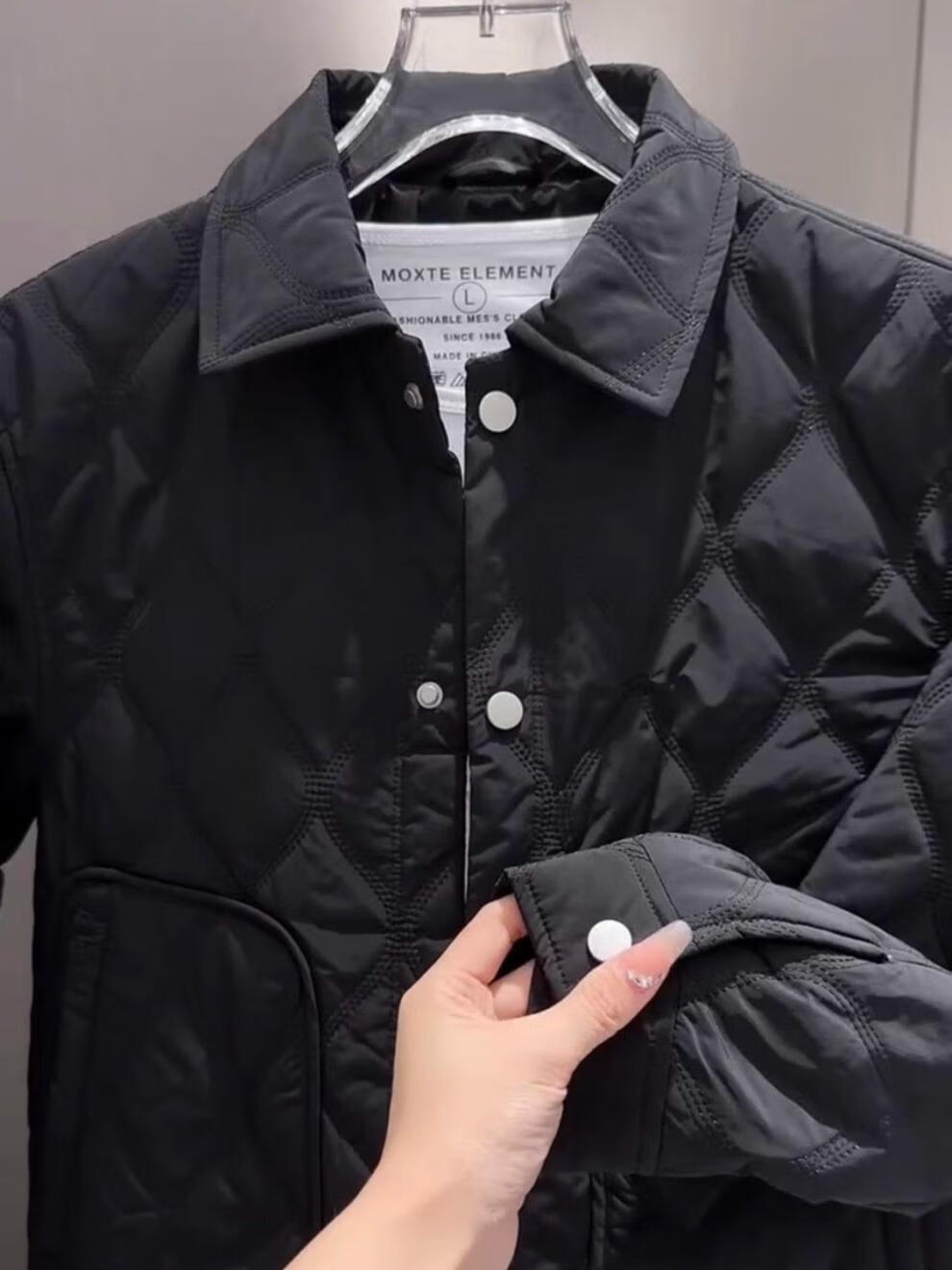 JEEP SPIRIT men's thin cotton coat lapel thin cotton jacket European fashionable versatile shirt temperament youth coat cotton coat M28 black L