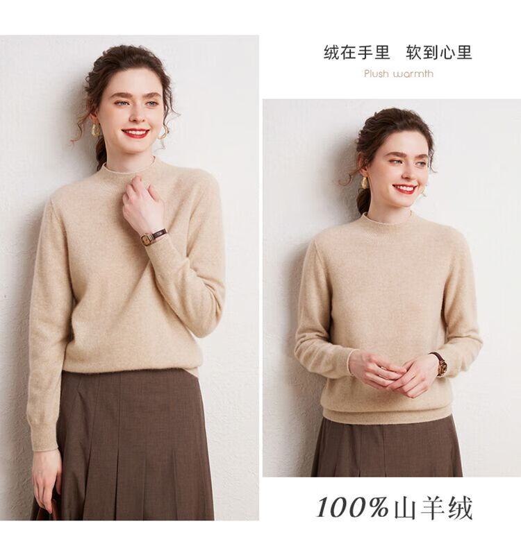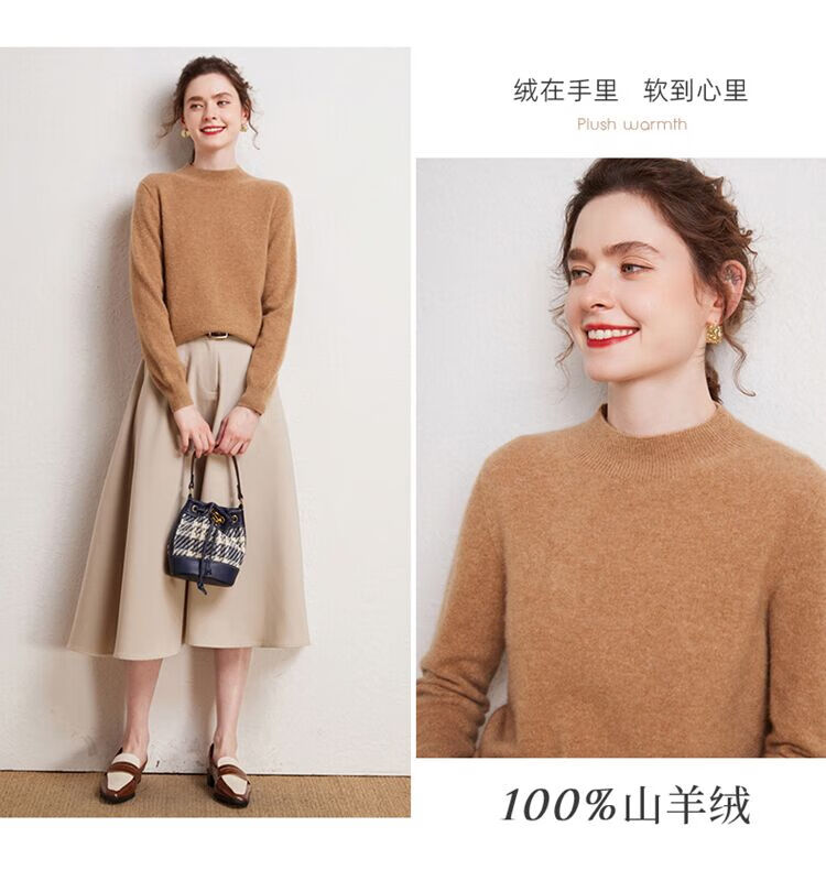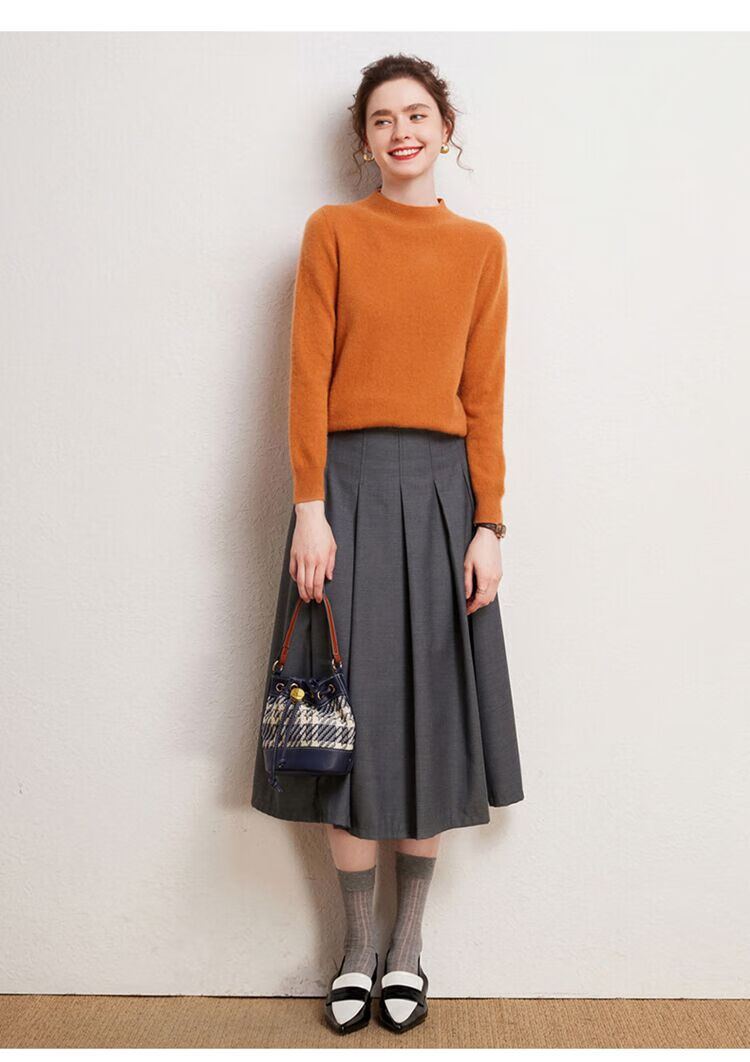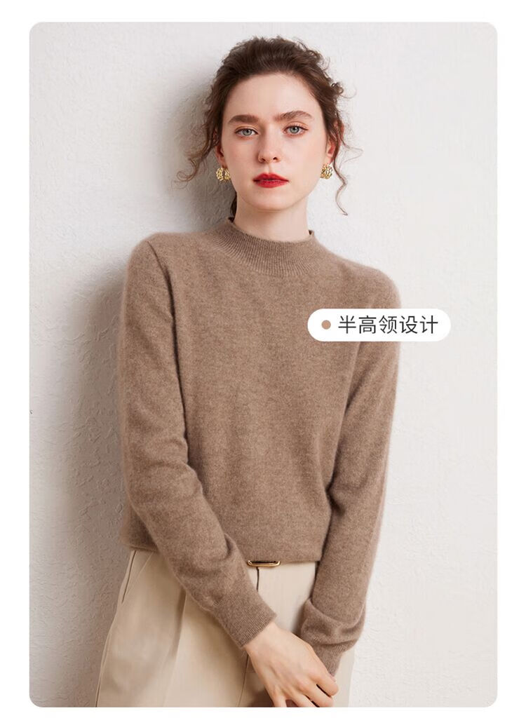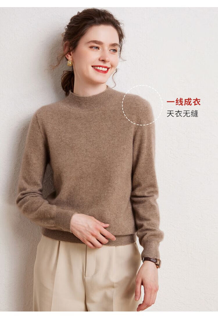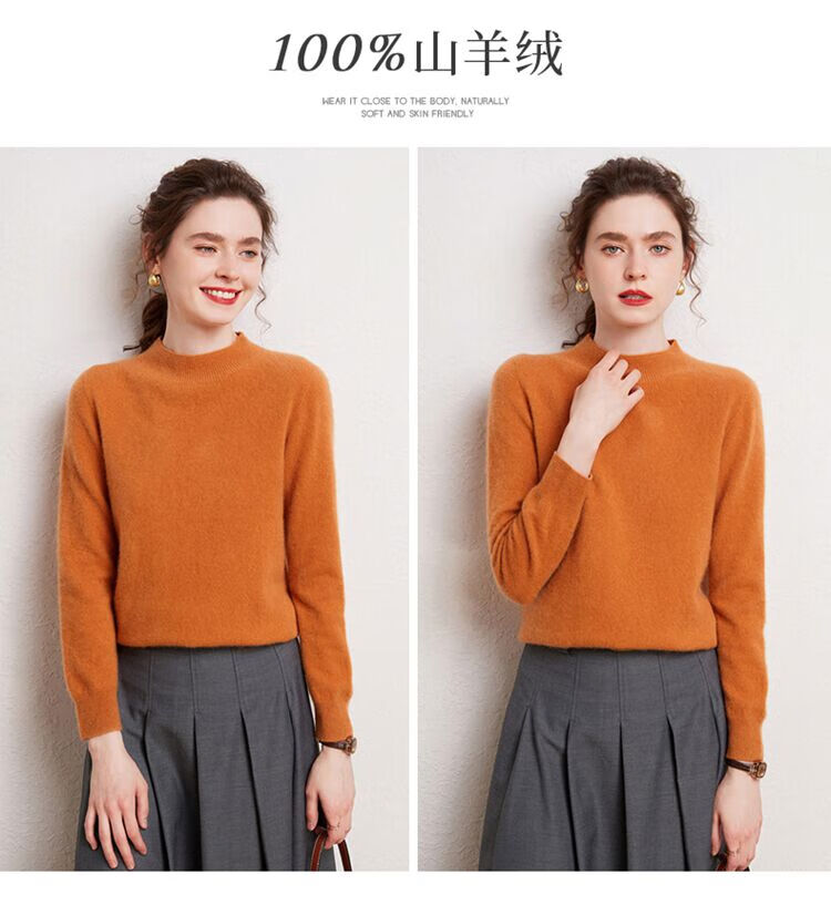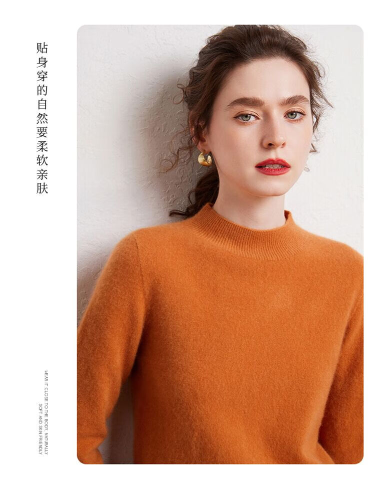 SENLIYA international light luxury high-end cashmere sweater is simple and easy to wear seamless 100 pure cashmere sweater women's half turtleneck loose Emma Orange S