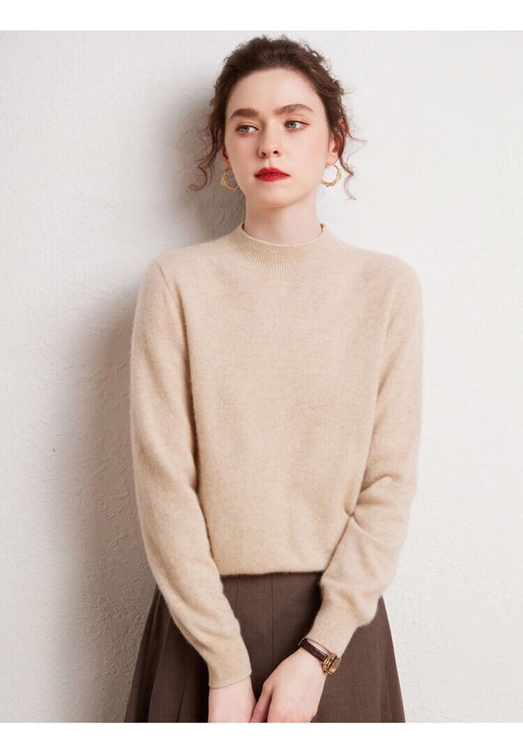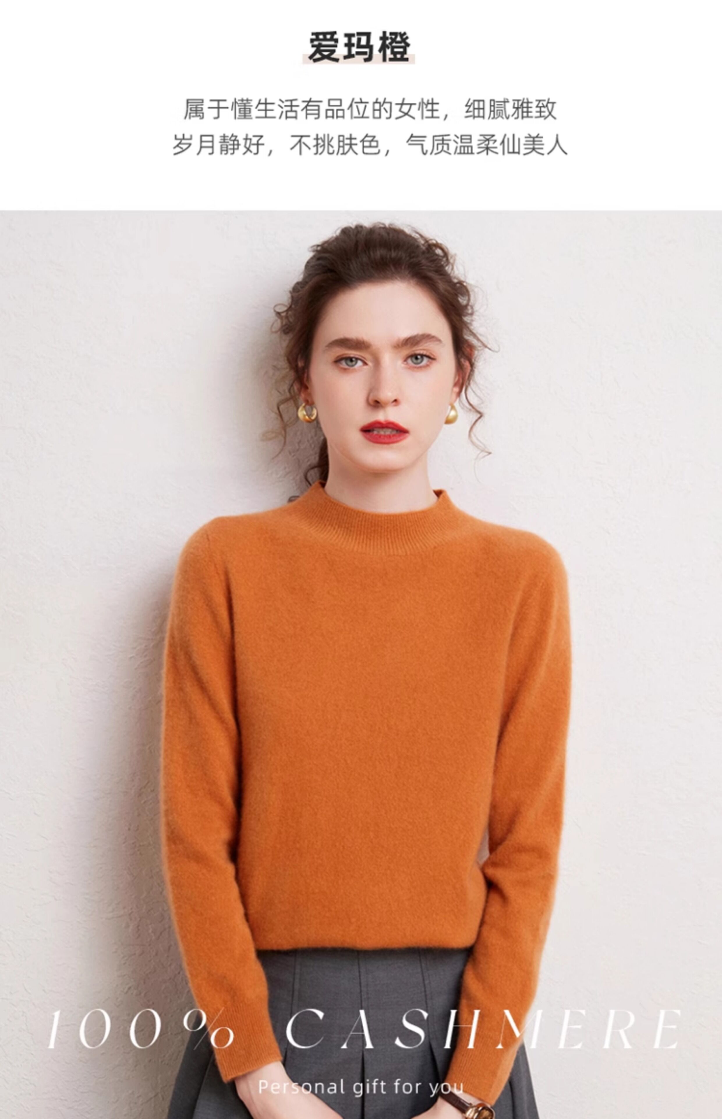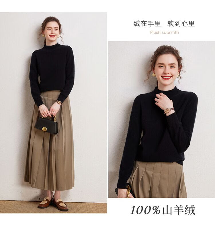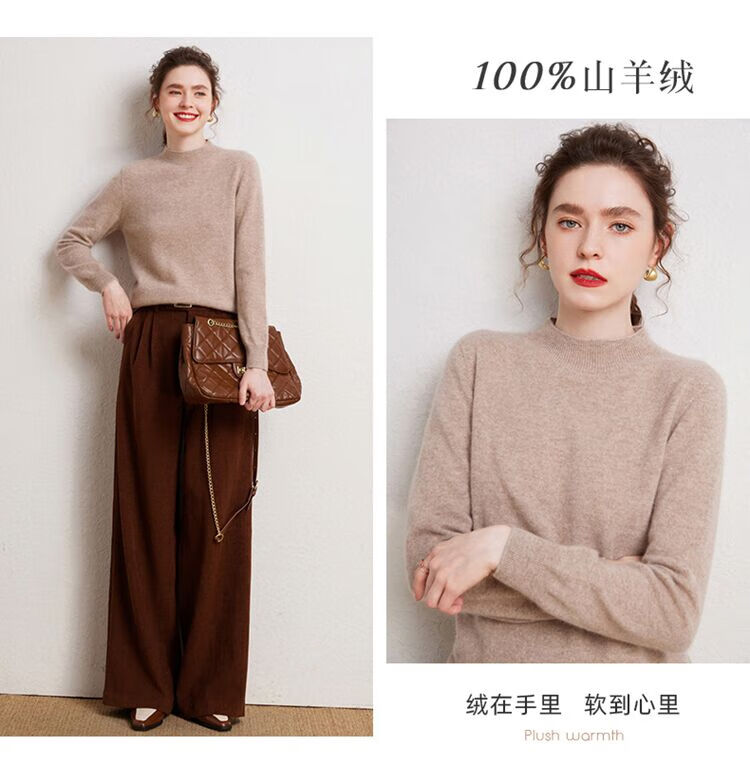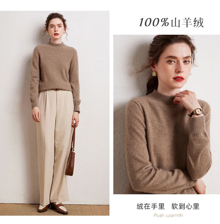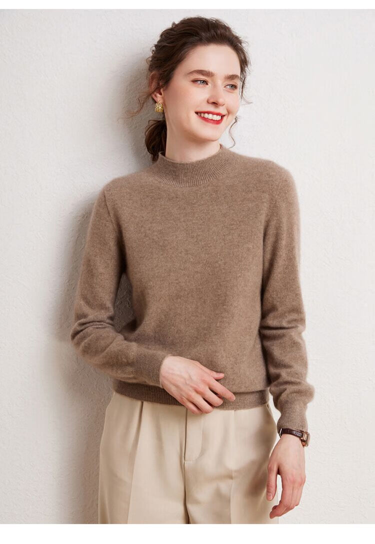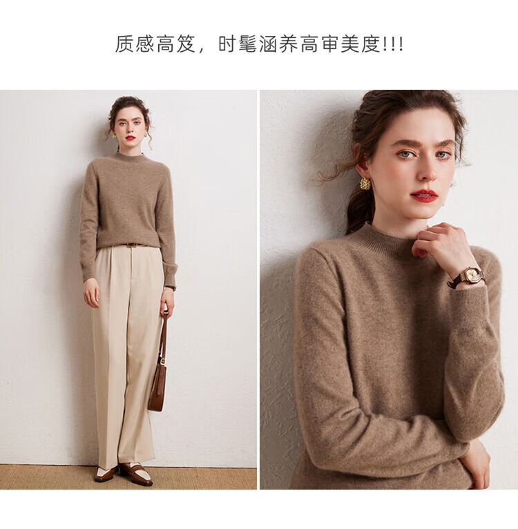 SENLIYA international light luxury high-end cashmere sweater is simple and easy to wear seamless 100 pure cashmere sweater women's half turtleneck loose Emma Orange S
