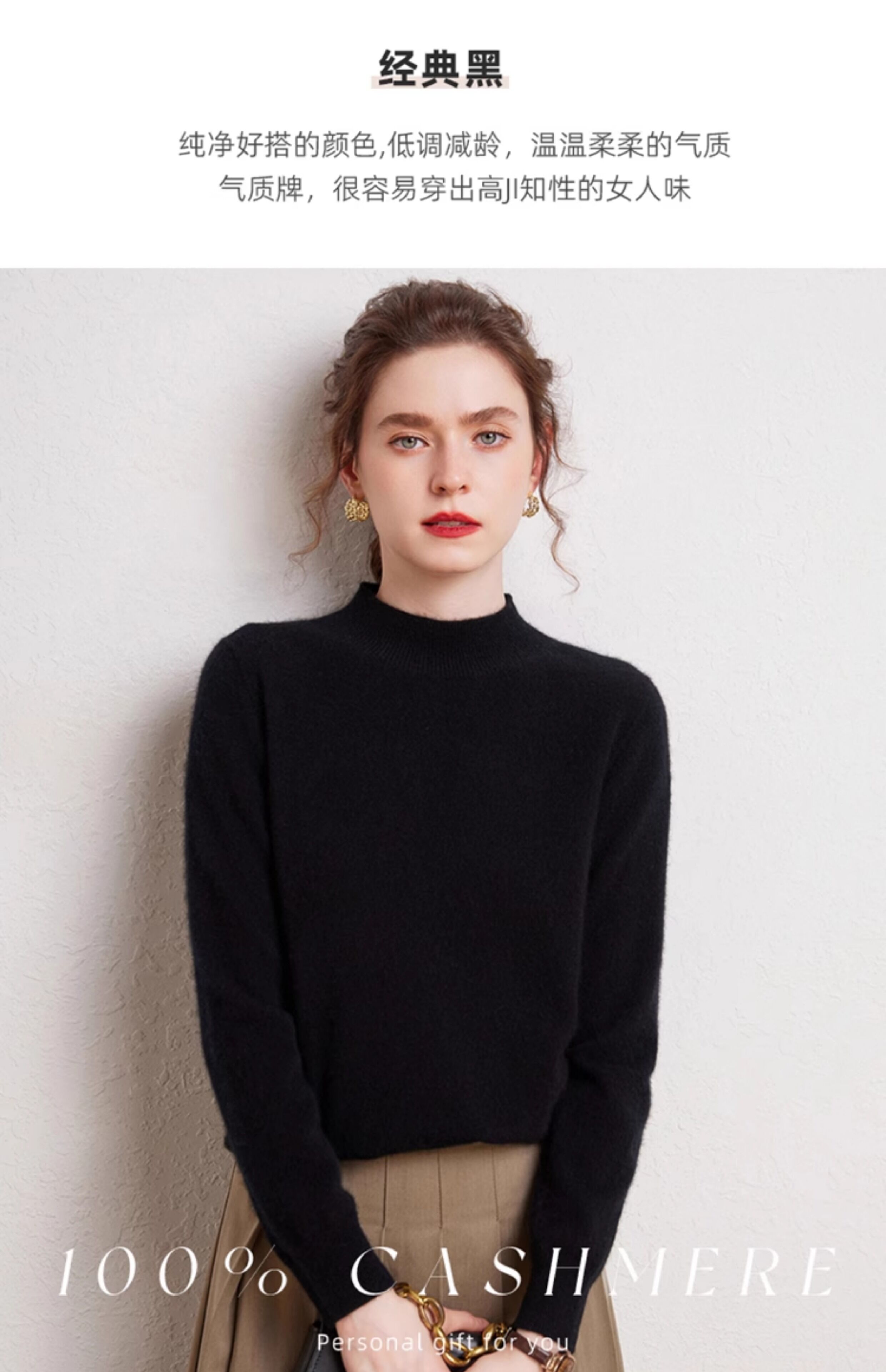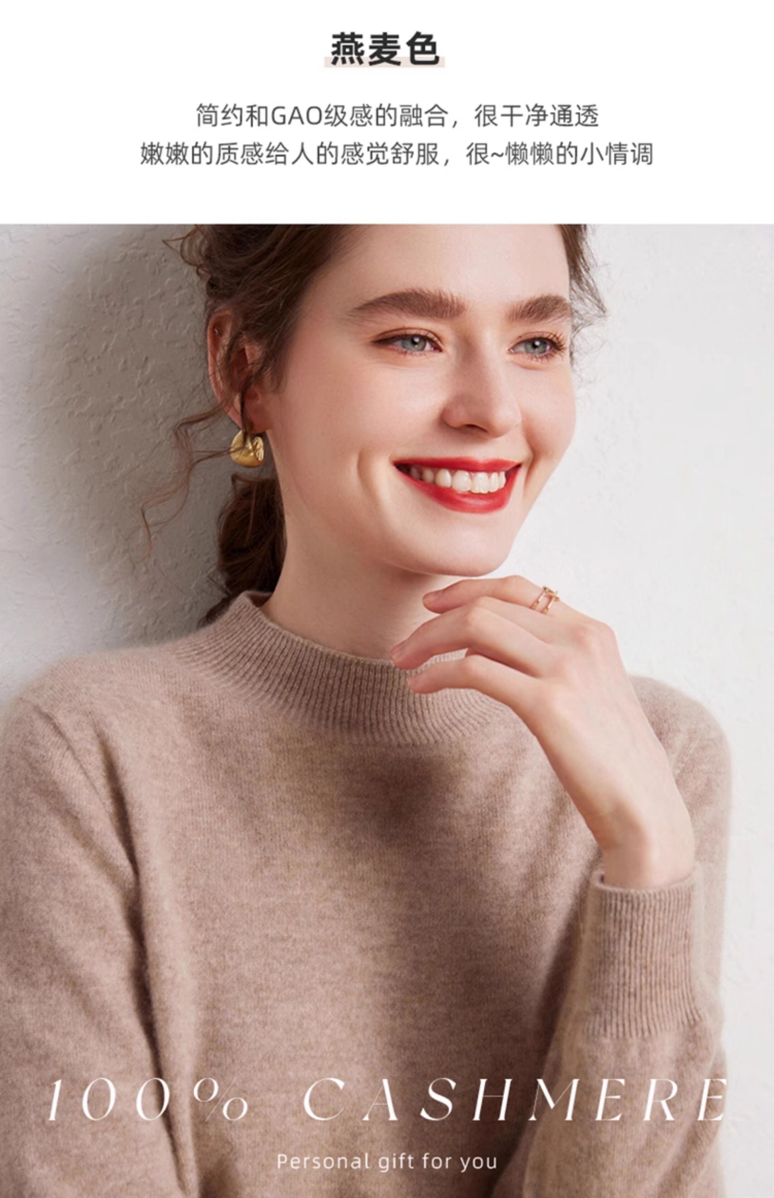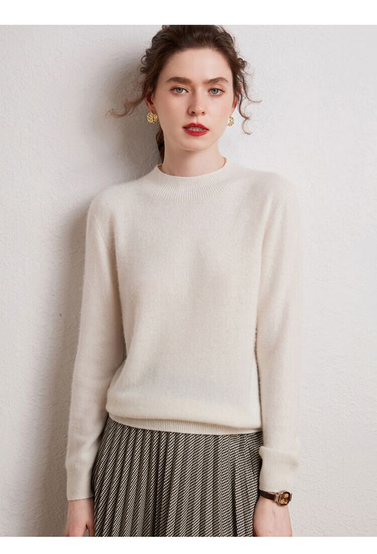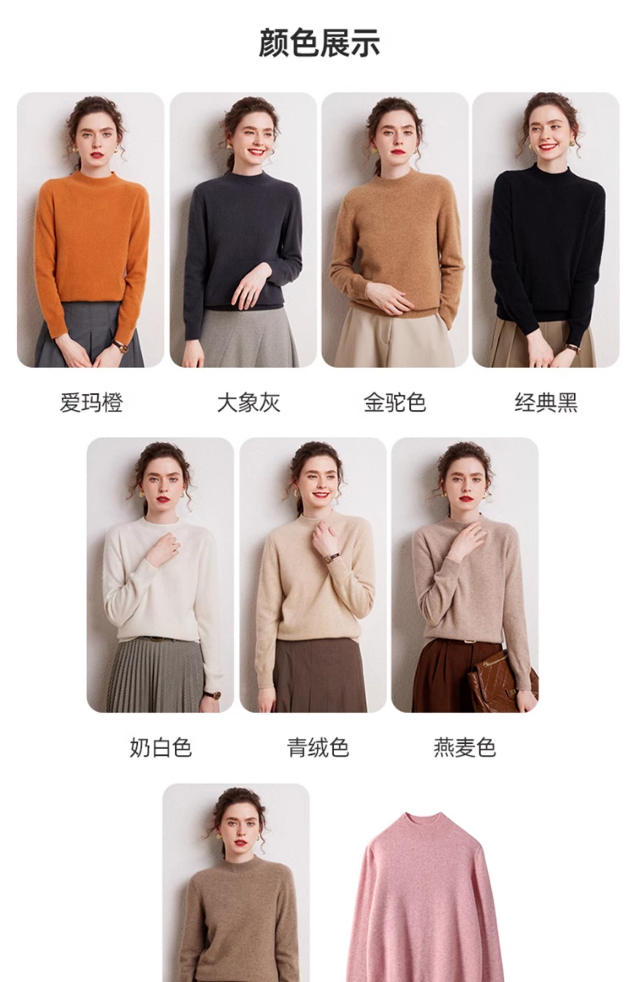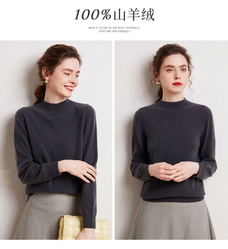 SENLIYA international light luxury high-end cashmere sweater is simple and easy to wear seamless 100 pure cashmere sweater women's half turtleneck loose Emma Orange S