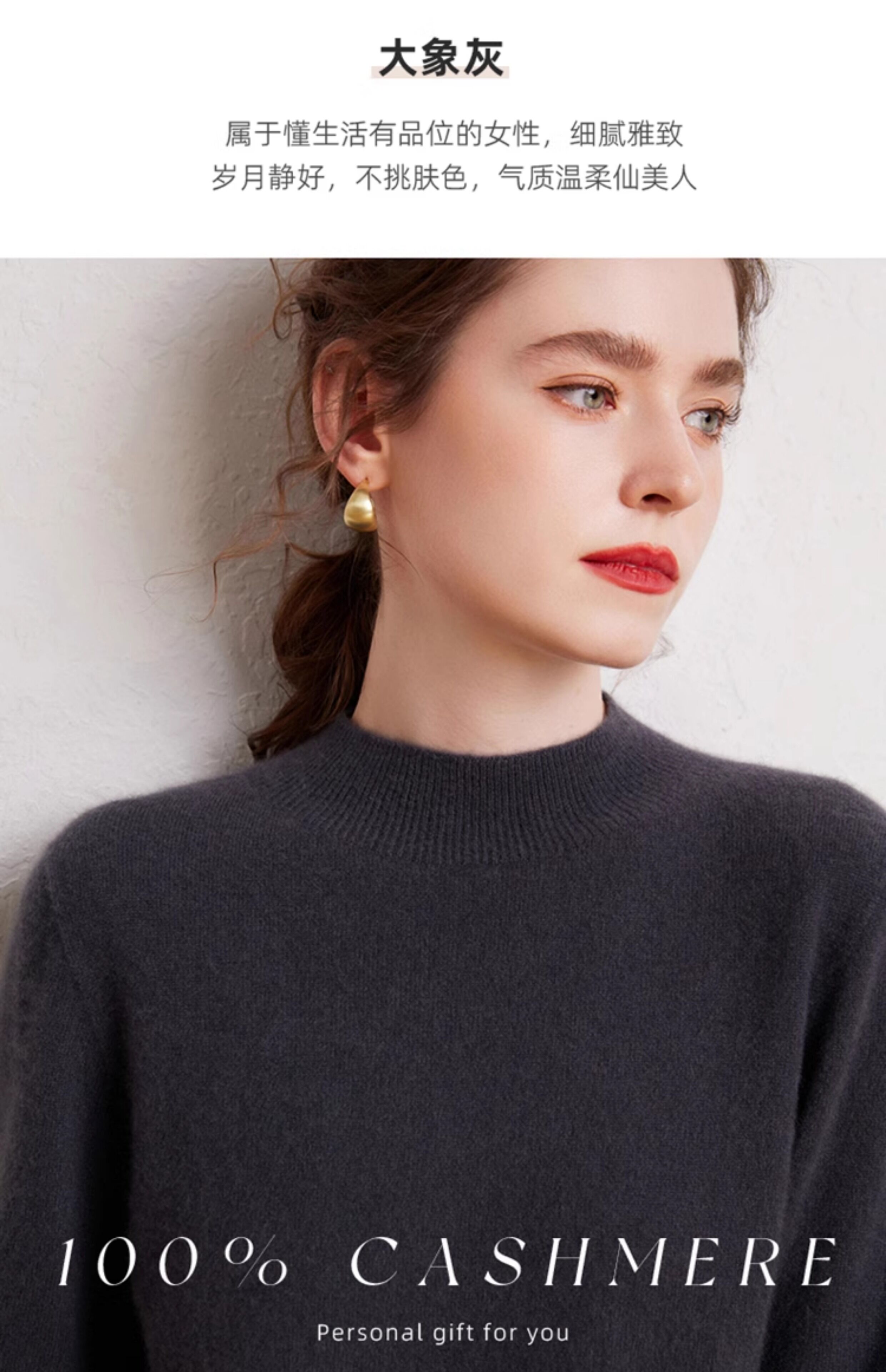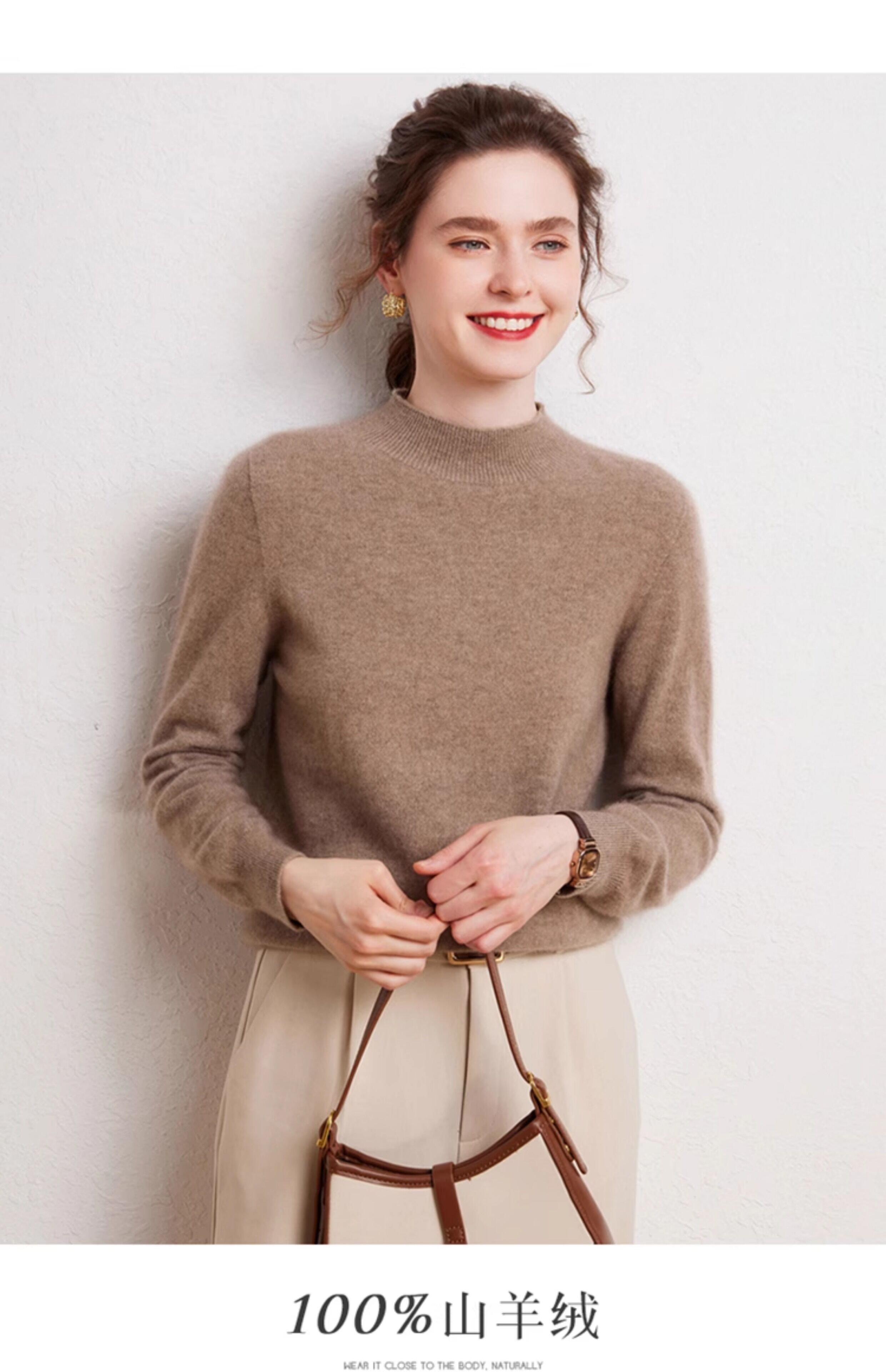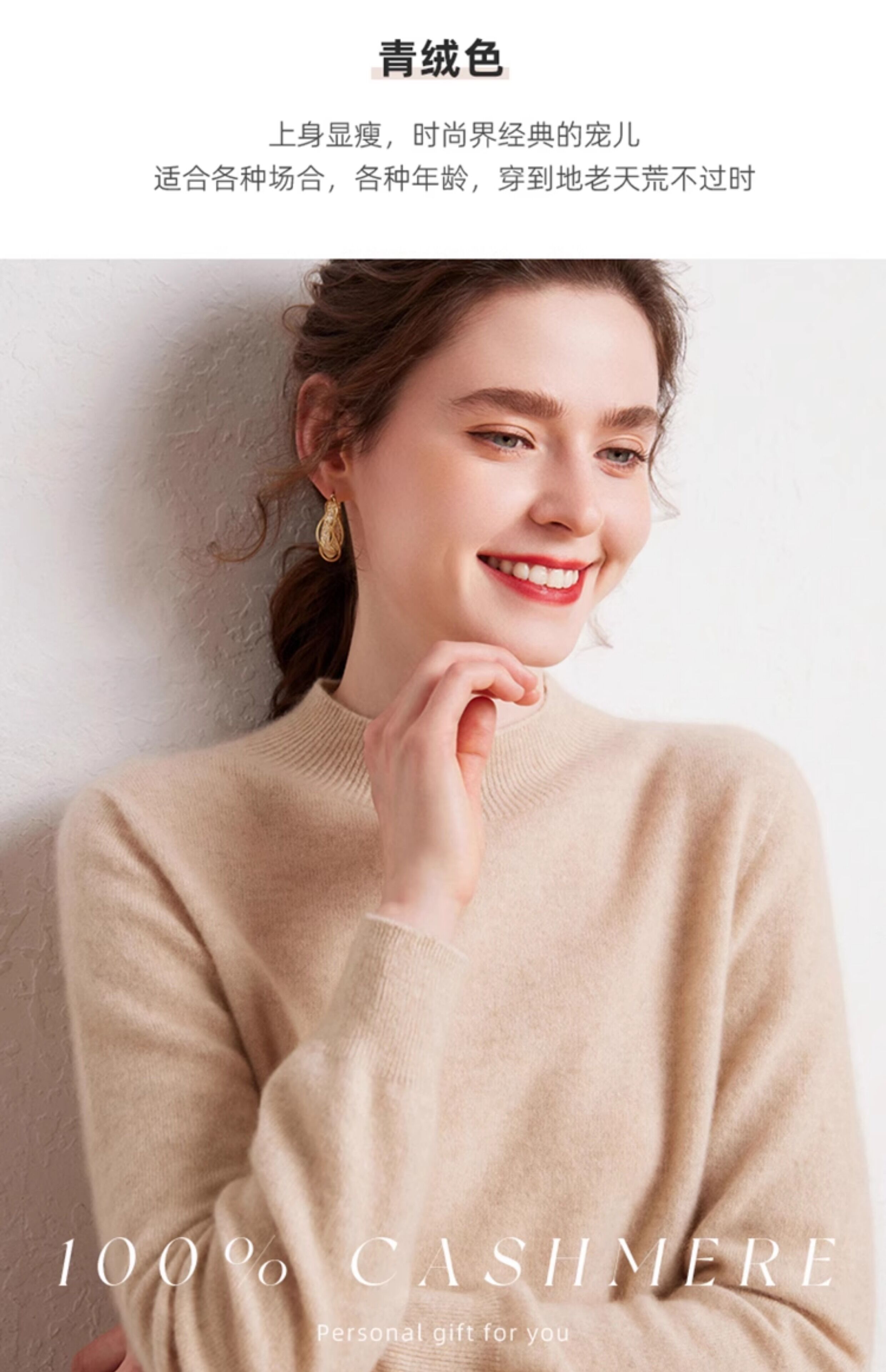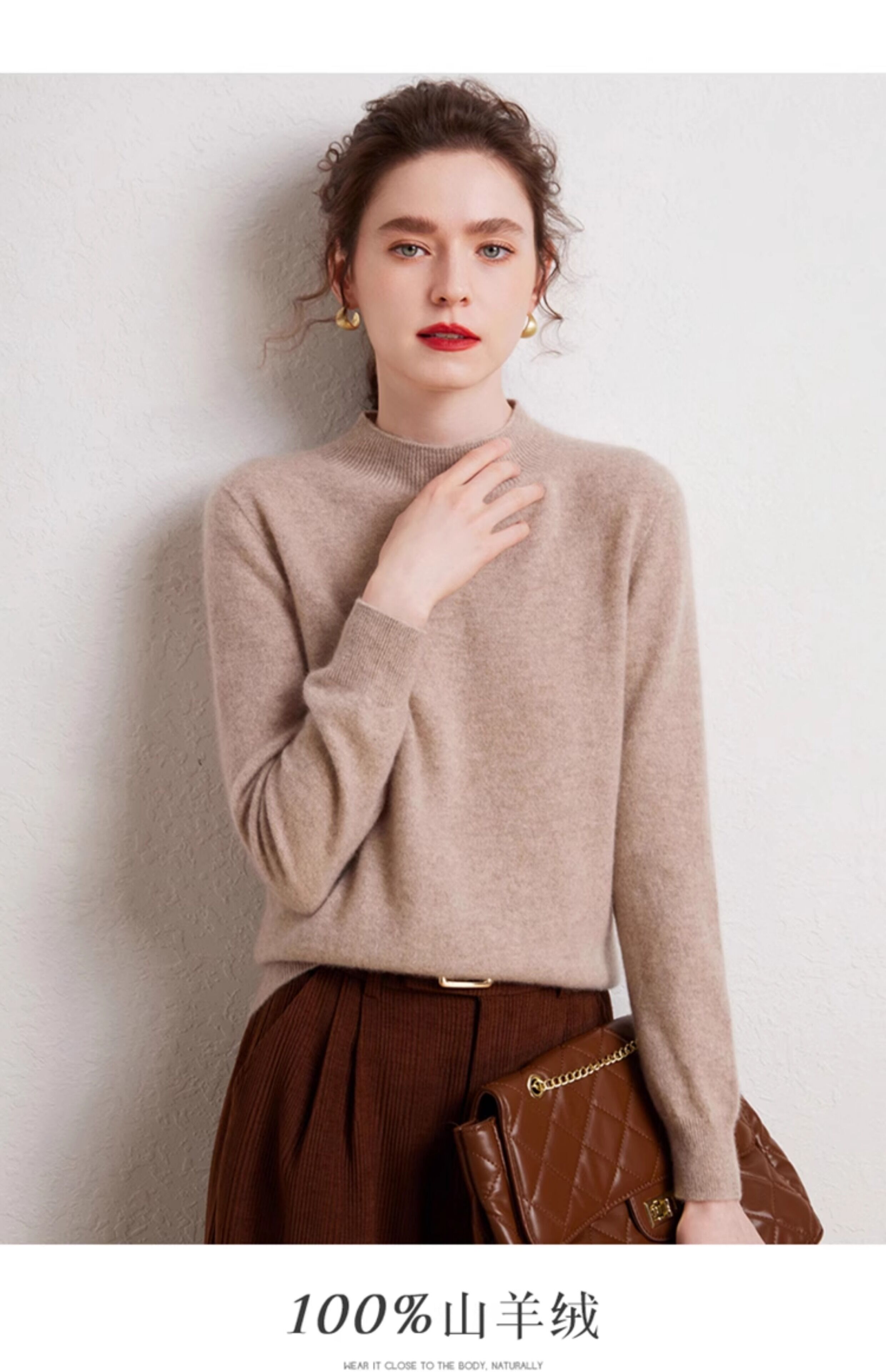 SENLIYA international light luxury high-end cashmere sweater is simple and easy to wear seamless 100 pure cashmere sweater women's half turtleneck loose Emma Orange S