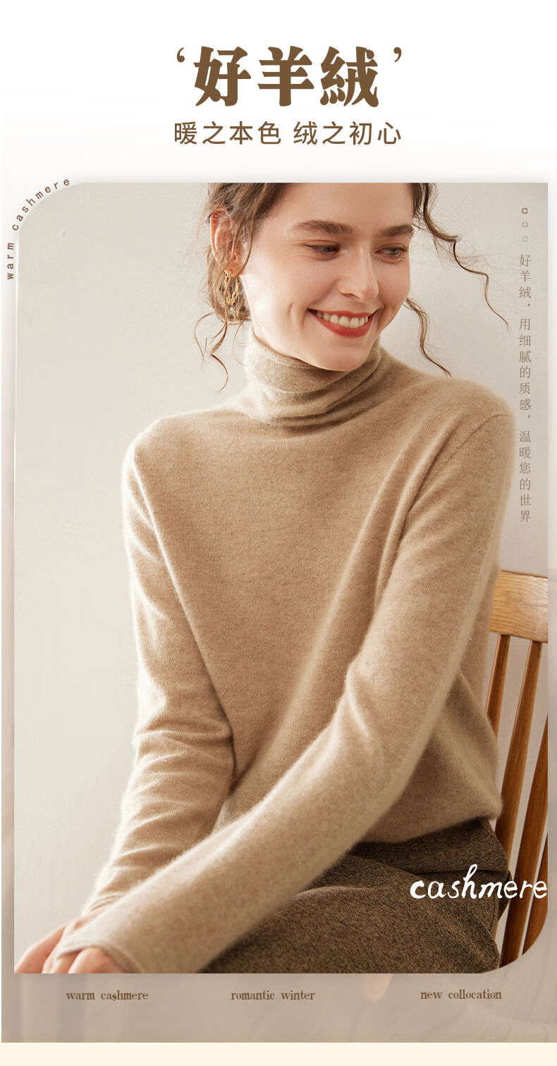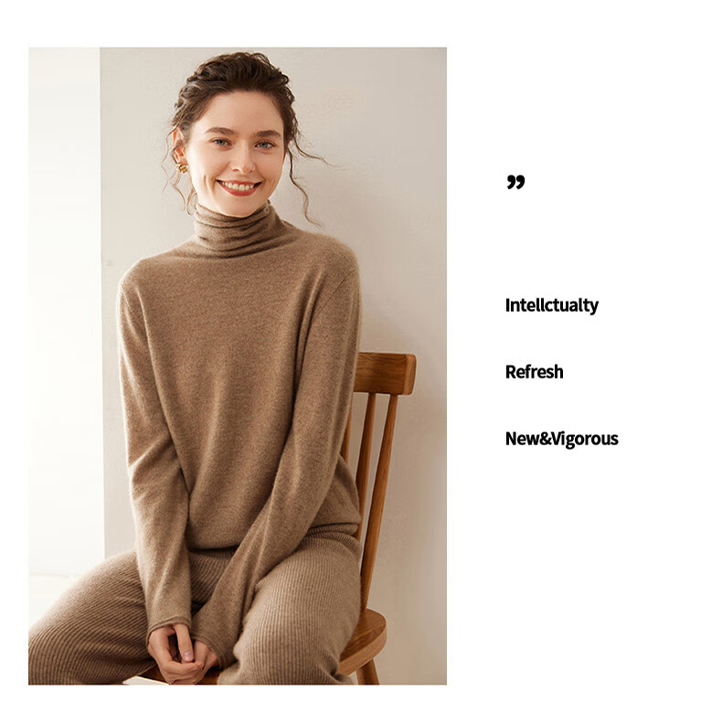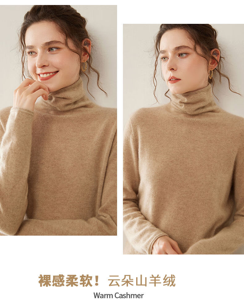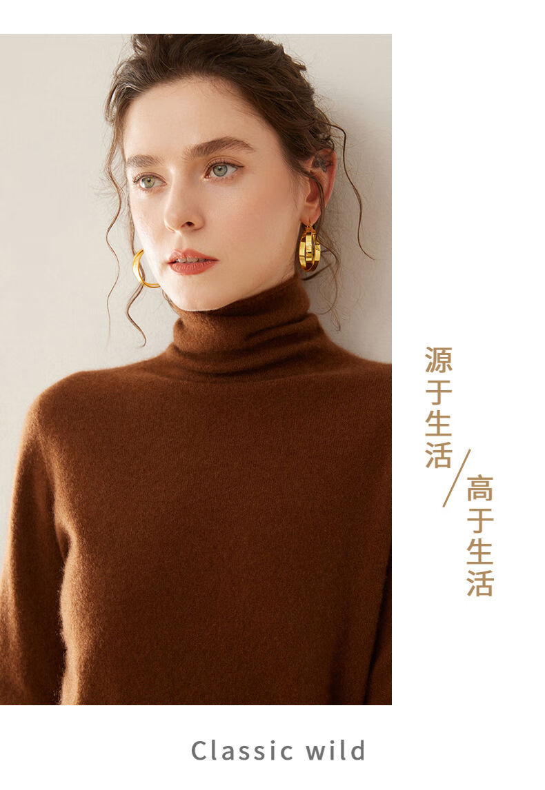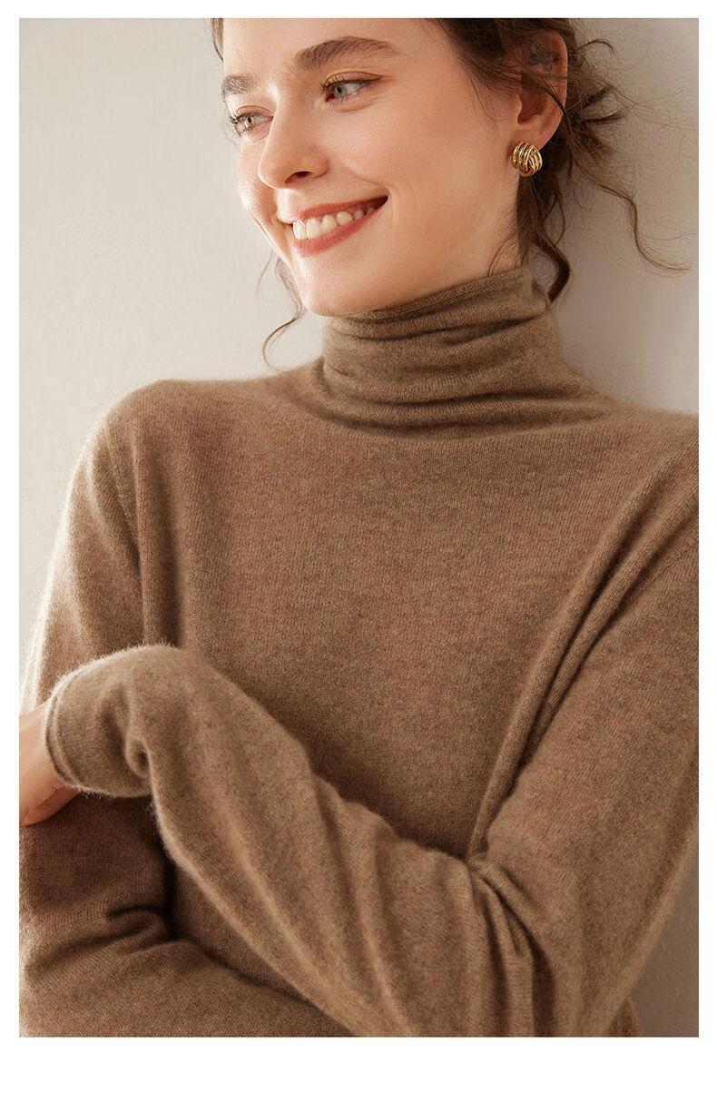 SENLIYA international light luxury high-end cashmere sweater production ready-to-wear pile collar cashmere sweater for women loose knitted inner sweater base coffee brown S