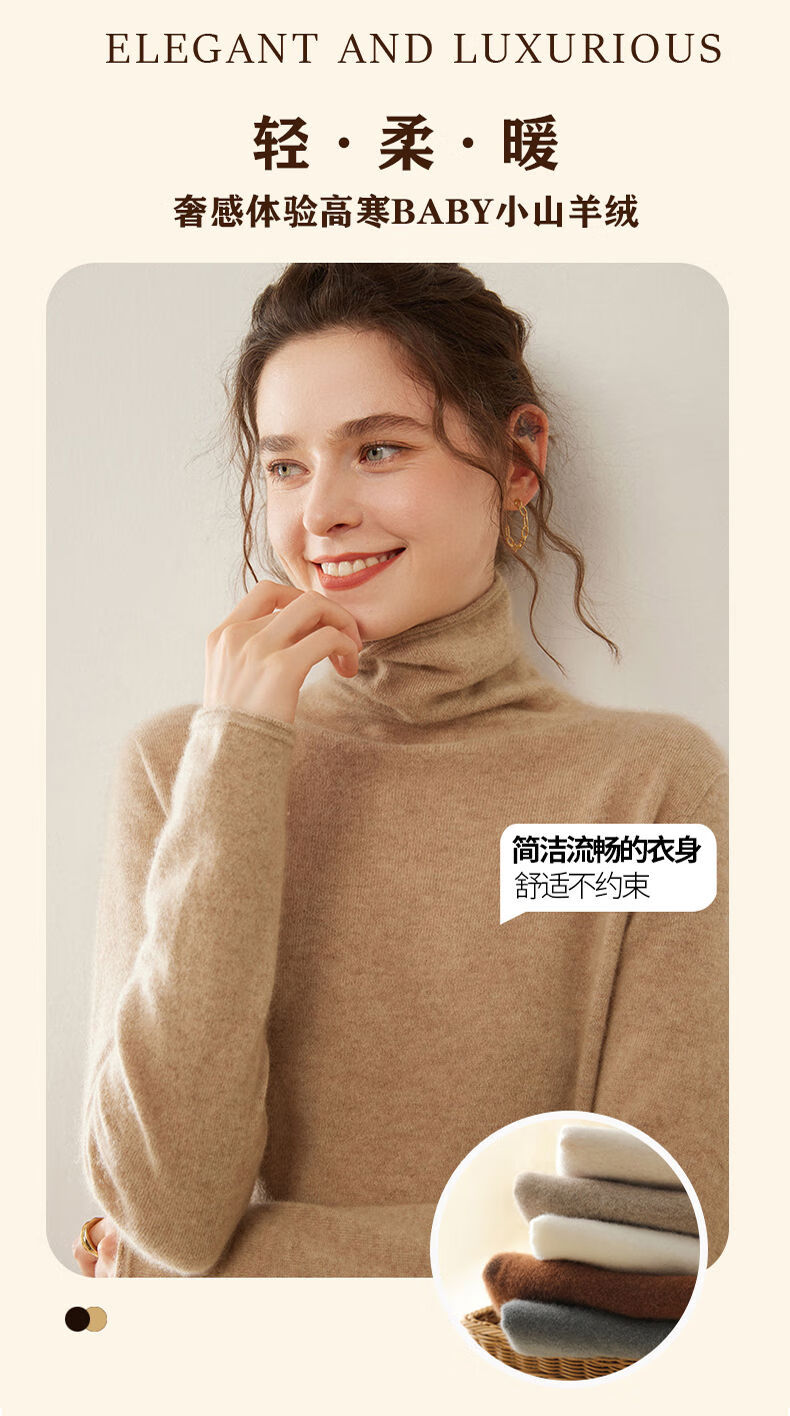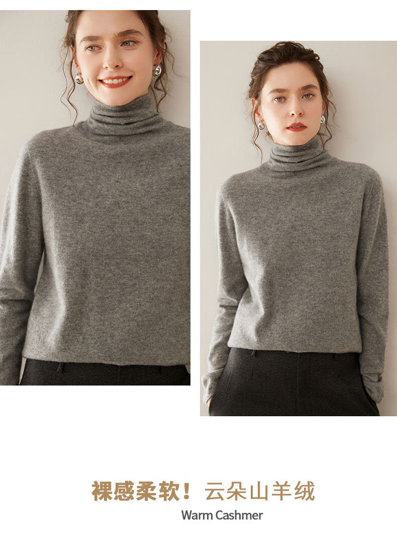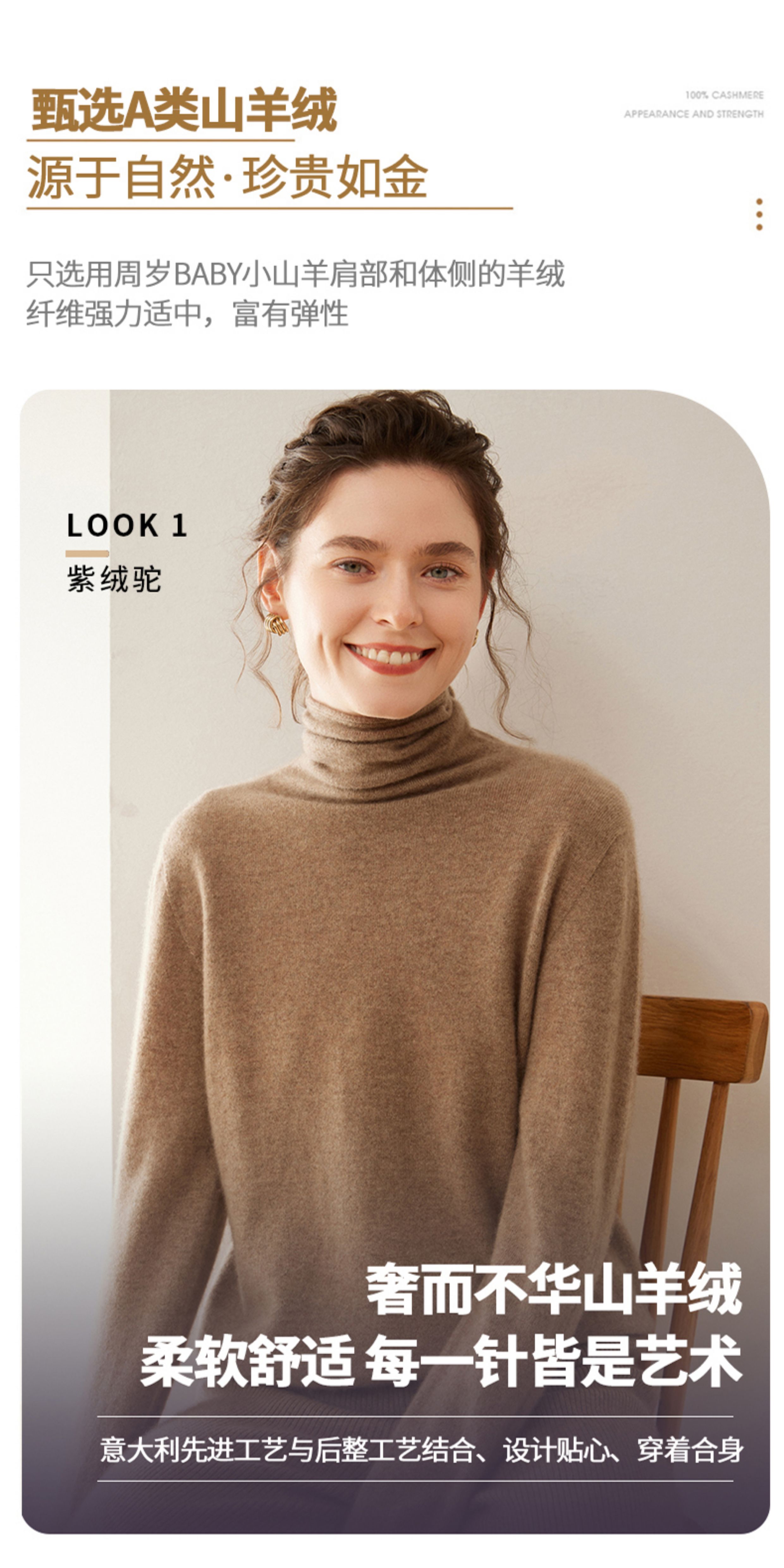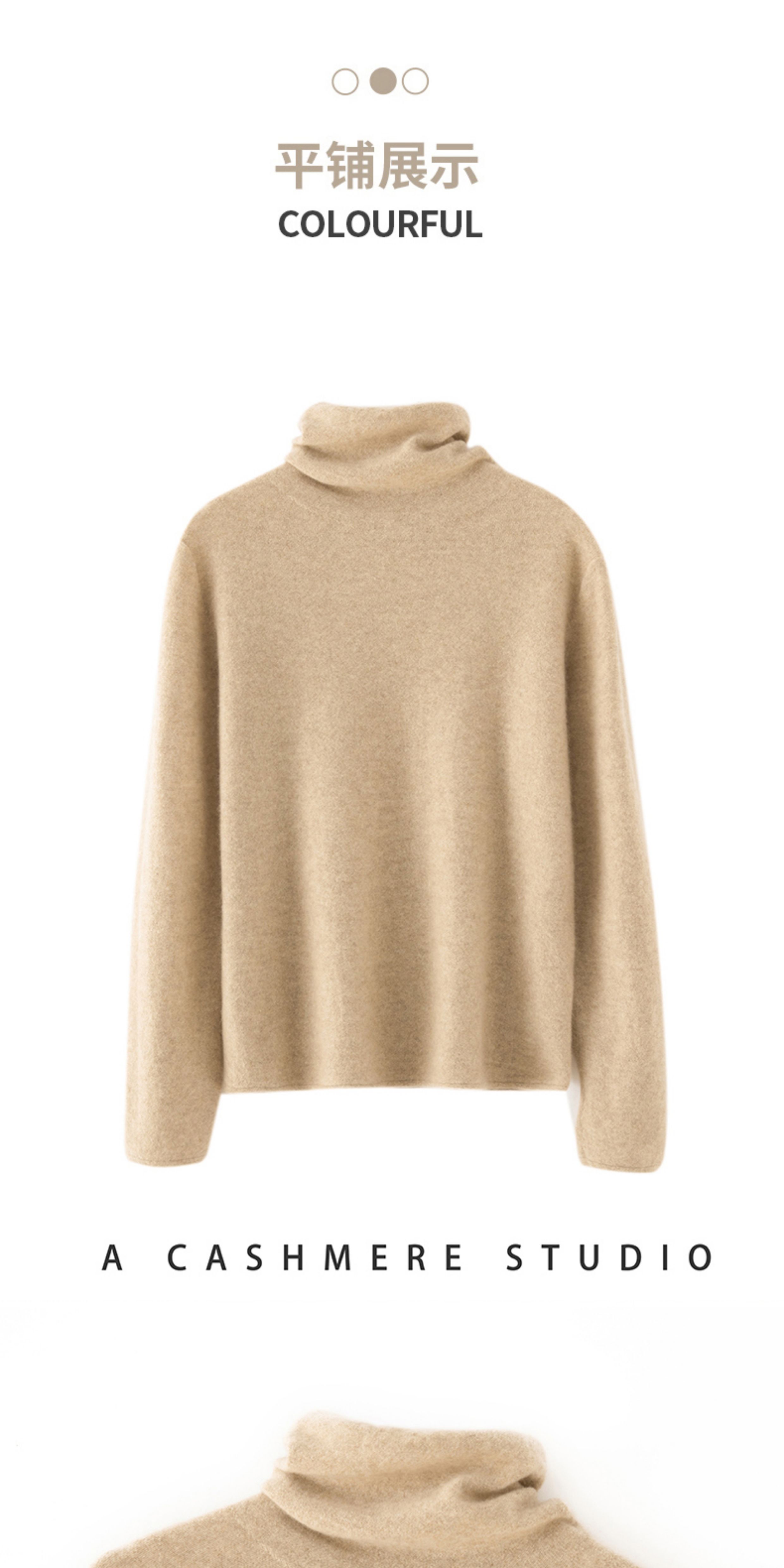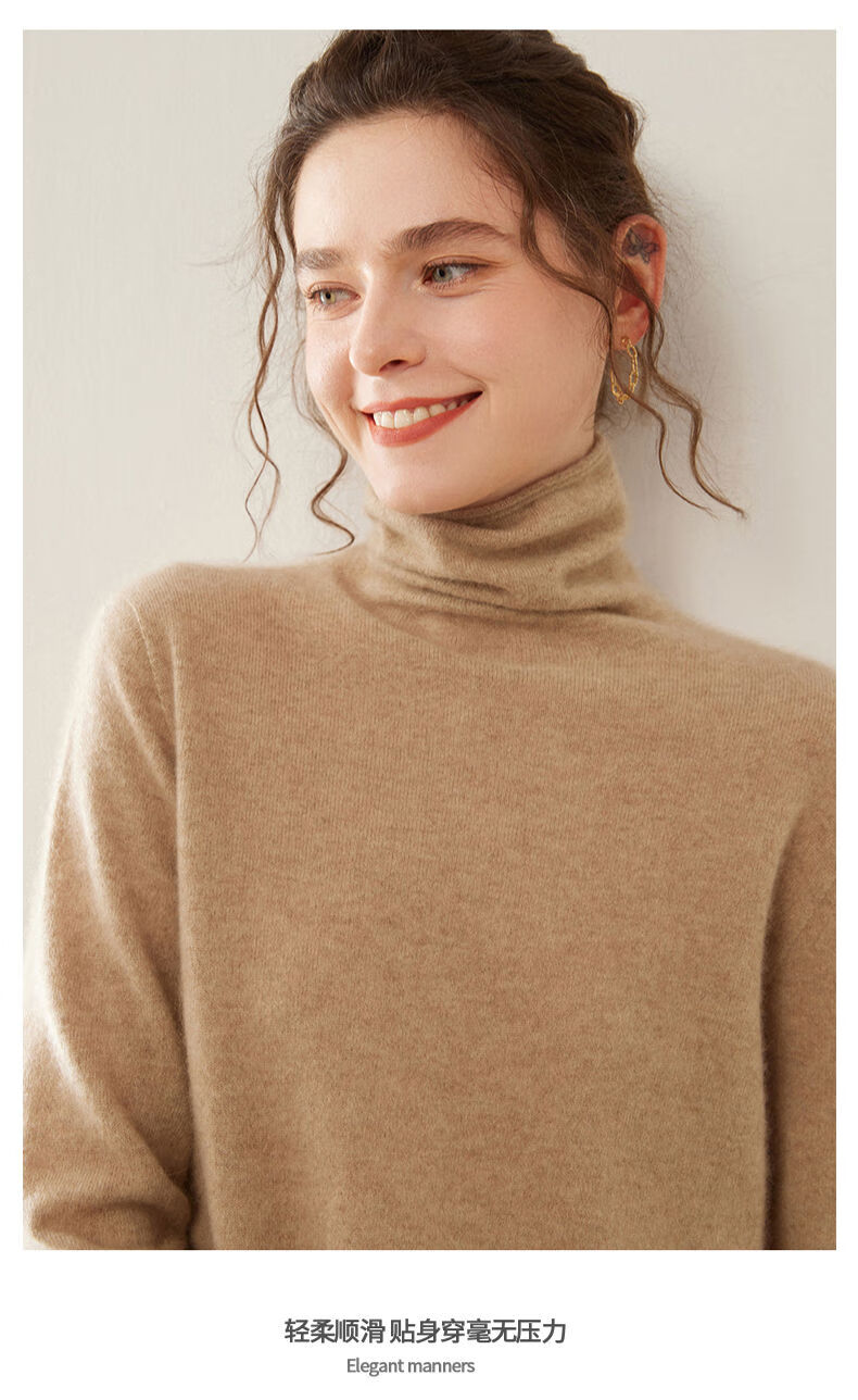 SENLIYA international light luxury high-end cashmere sweater production ready-to-wear pile collar cashmere sweater for women loose knitted inner sweater base coffee brown S