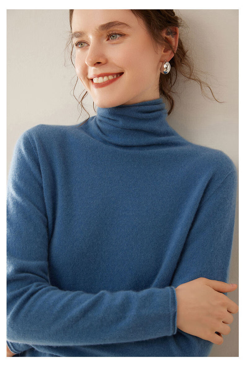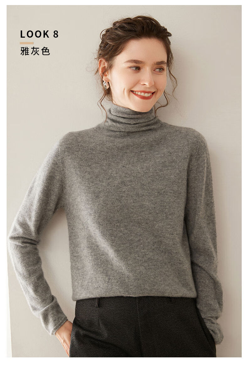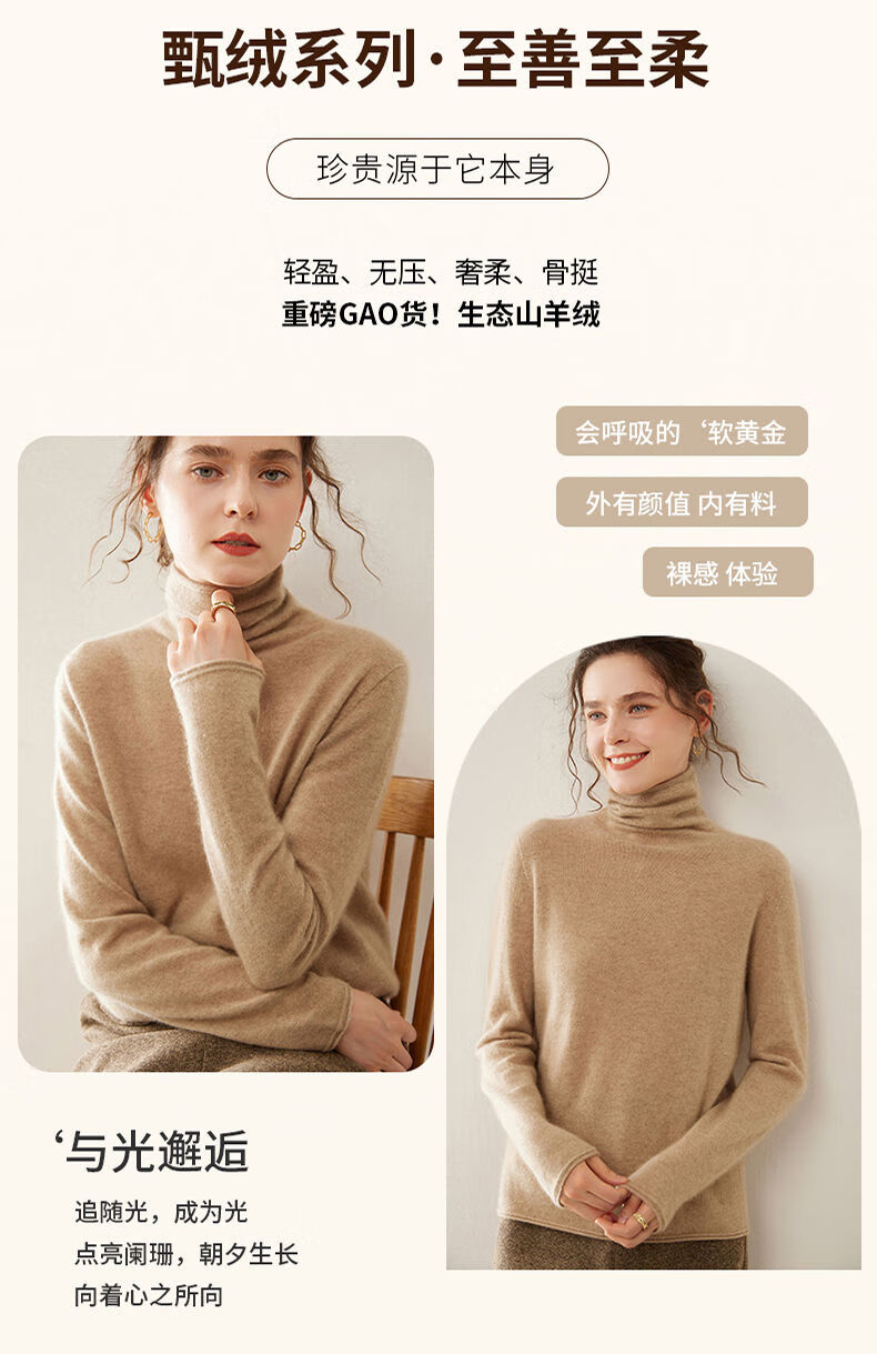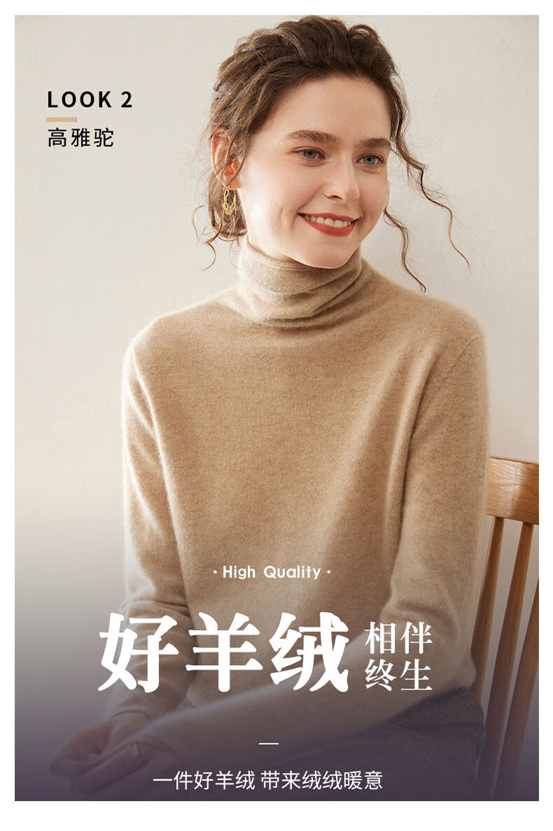 SENLIYA international light luxury high-end cashmere sweater production ready-to-wear pile collar cashmere sweater for women loose knitted inner sweater base coffee brown S
