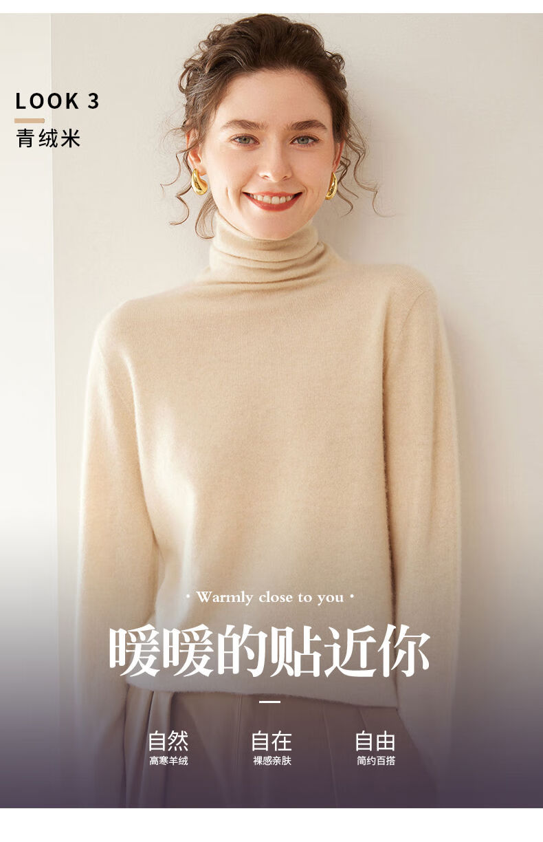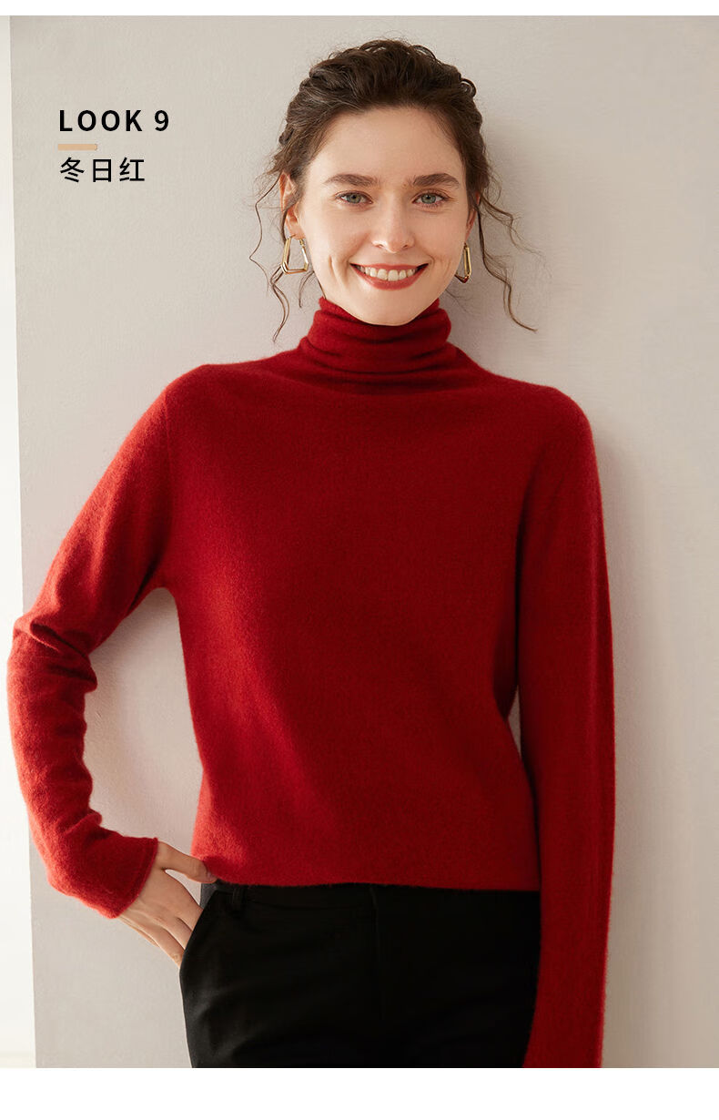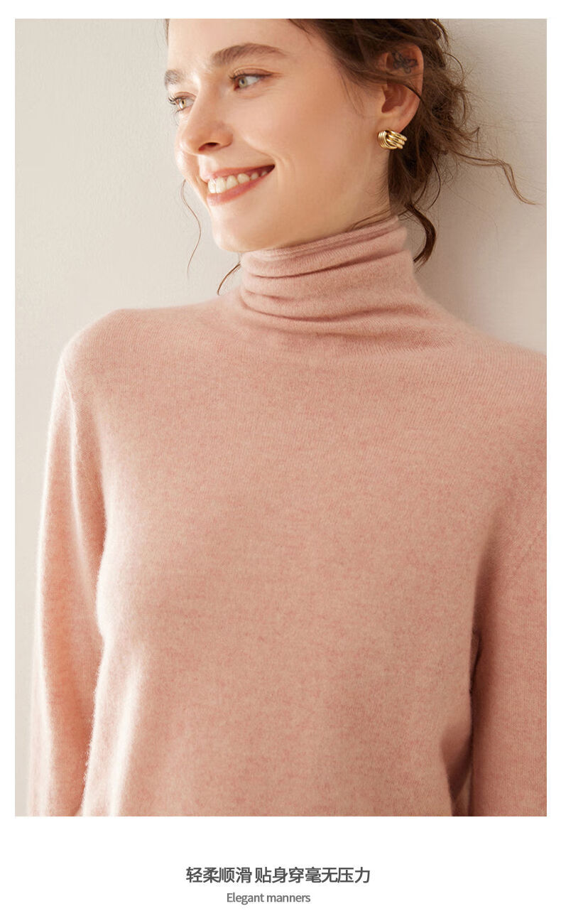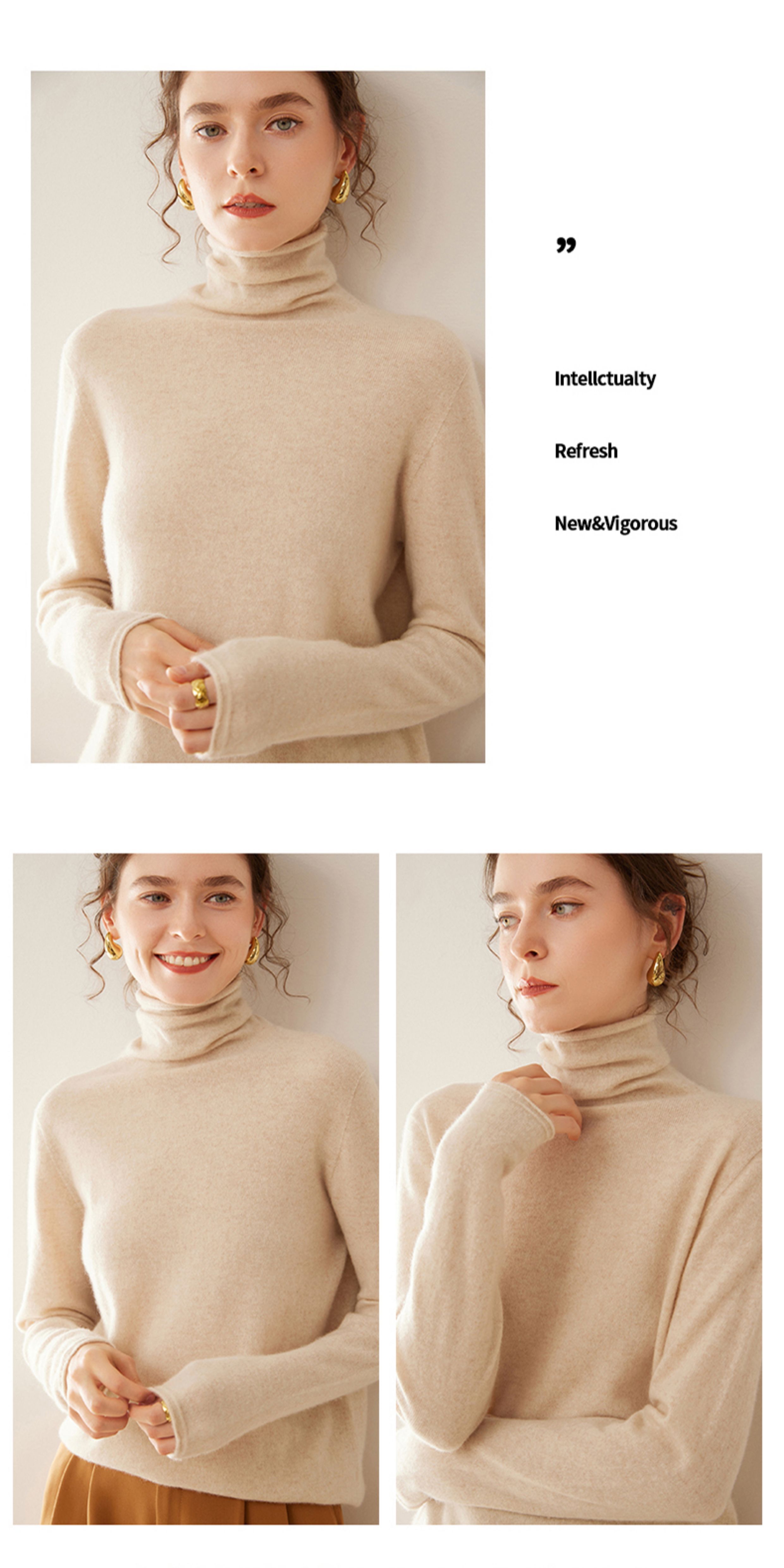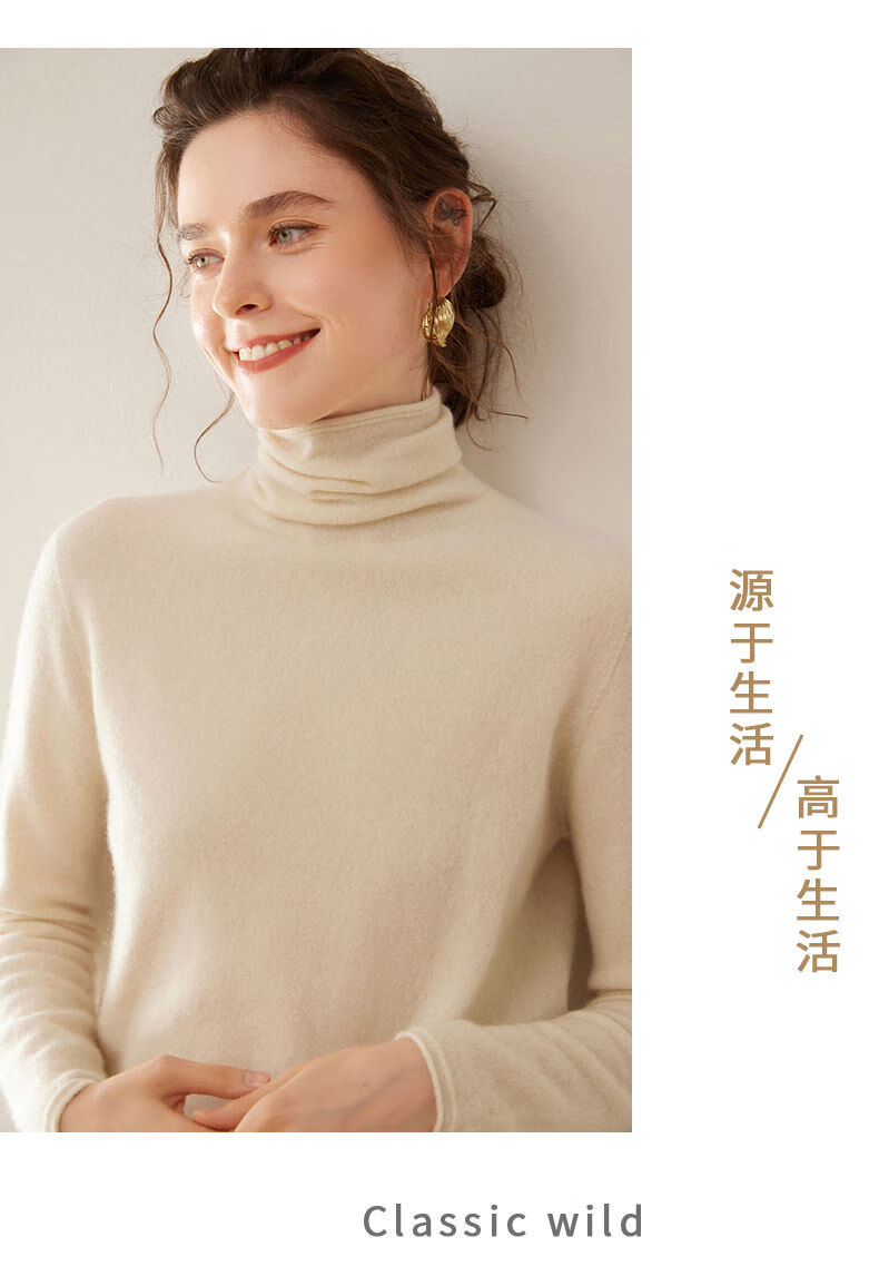 SENLIYA international light luxury high-end cashmere sweater production ready-to-wear pile collar cashmere sweater for women loose knitted inner sweater base coffee brown S