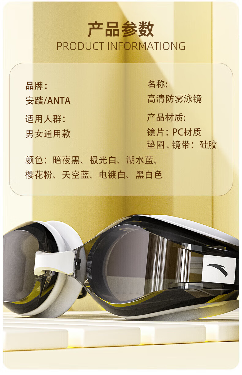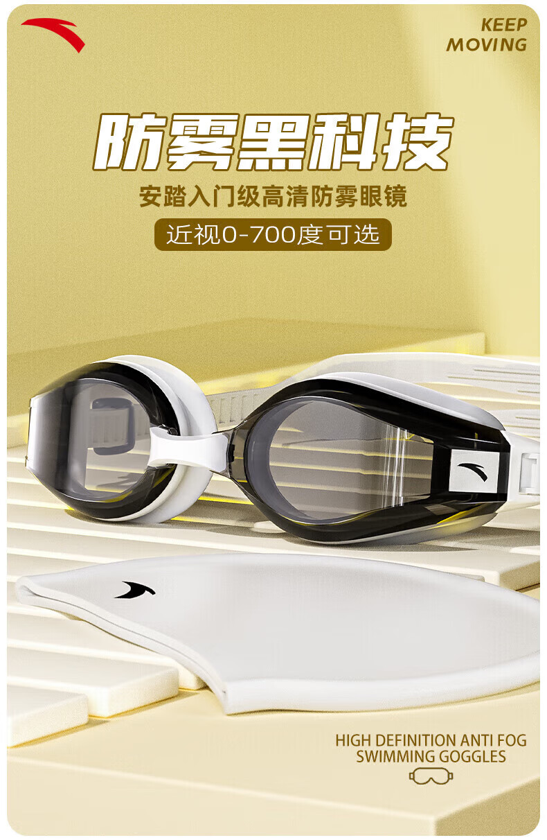 ANTA swimming goggles with myopia degree for men and women, high-definition waterproof and anti-fog swimming goggles and swimming cap set, black and white - single set of swimming goggles 0-700 optional 150