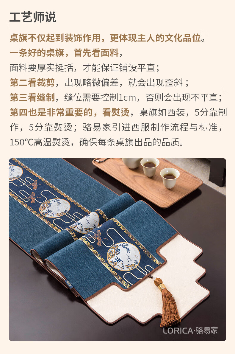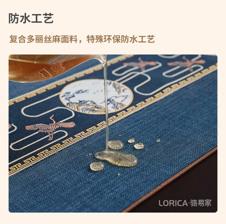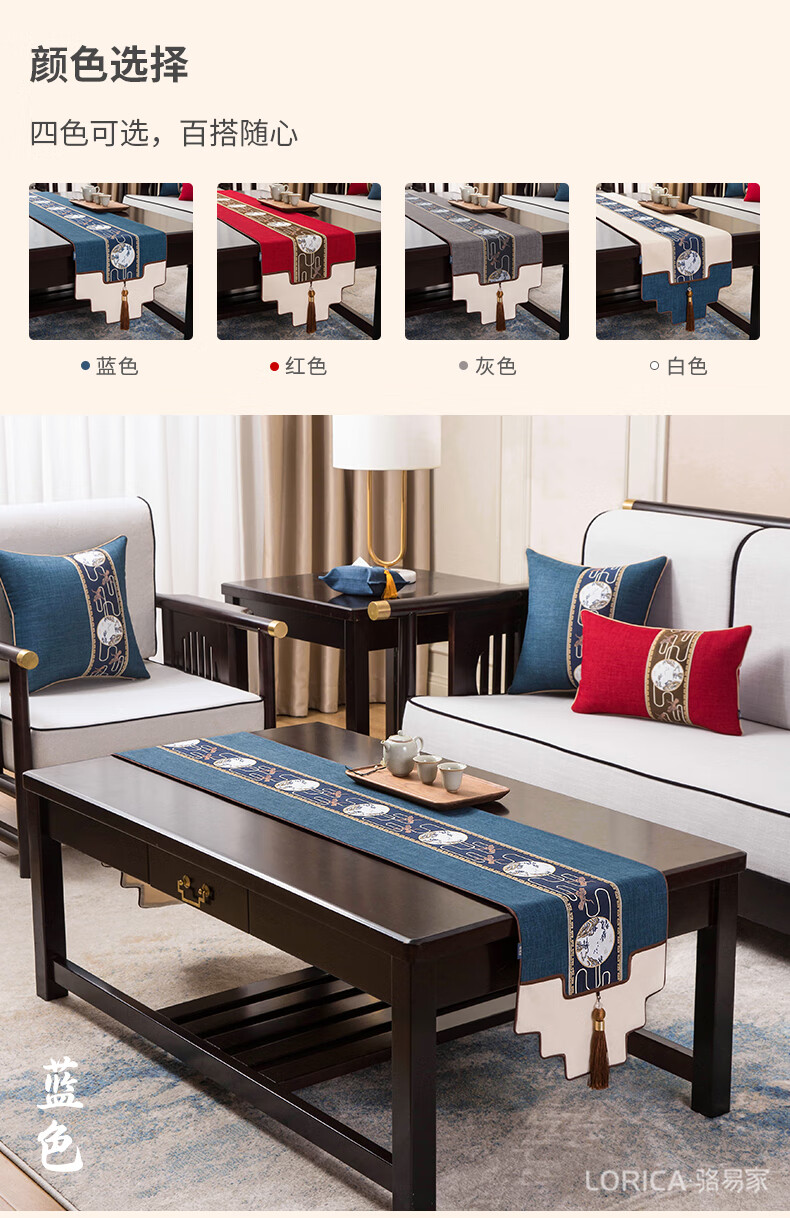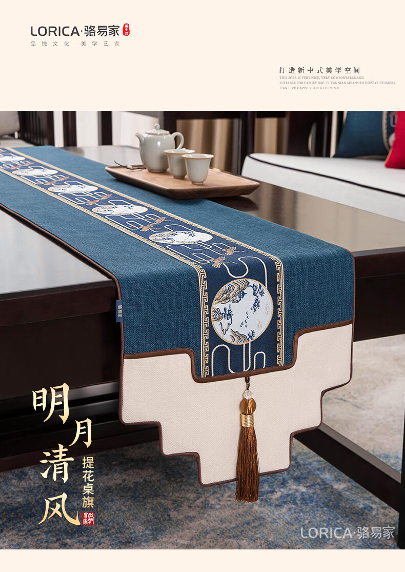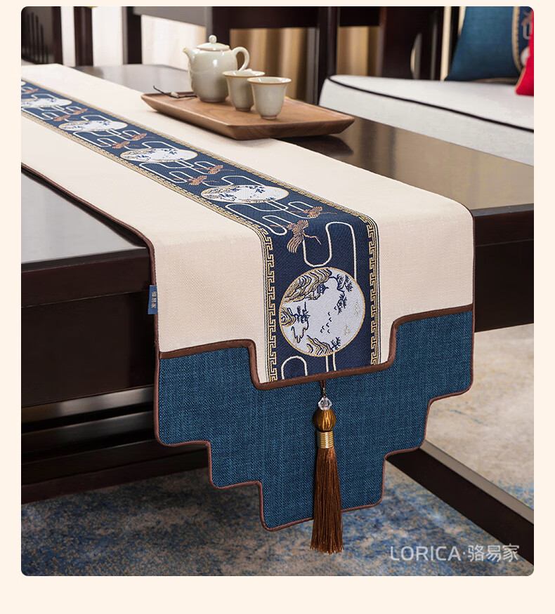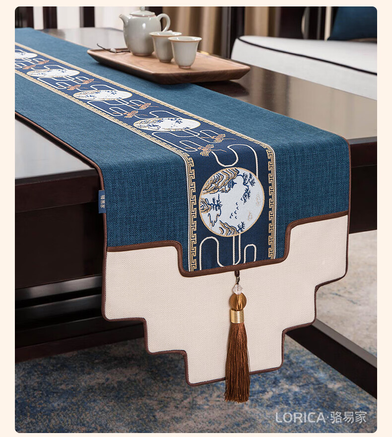Luo Yijia (Lorica) New Chinese style table flag, tea table cushion, tea table long tea table tablecloth, Zen tea flag, tea mat, tea tablecloth, Mingyueqingfeng-Blue_Waterproof model, table flag 33*120cm, suitable for table length 0.4m-0.7m