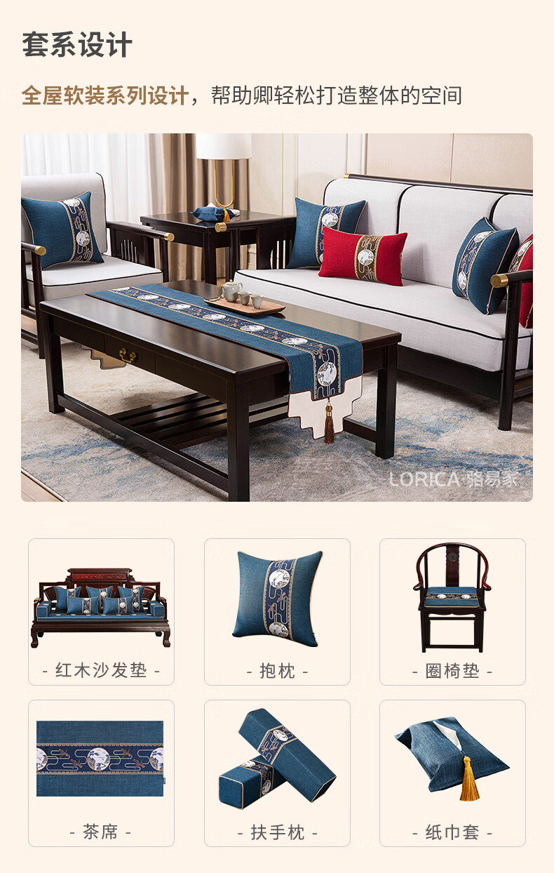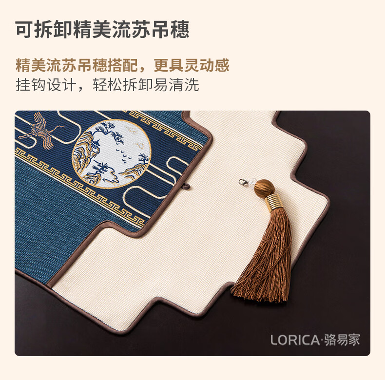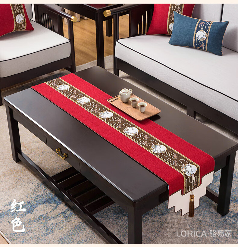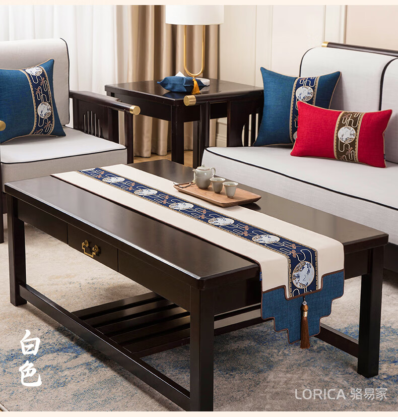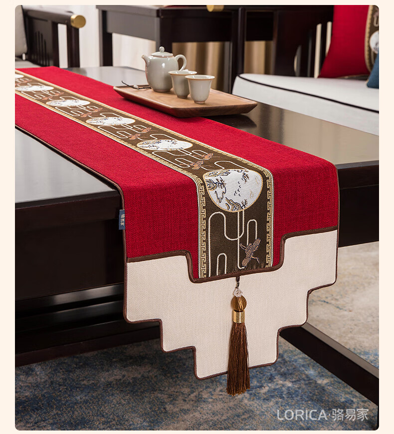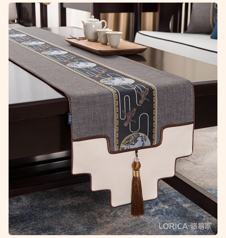 Luo Yijia (Lorica) New Chinese style table flag, tea table cushion, tea table long tea table tablecloth, Zen tea flag, tea mat, tea tablecloth, Mingyueqingfeng-Blue_Waterproof model, table flag 33*120cm, suitable for table length 0.4m-0.7m