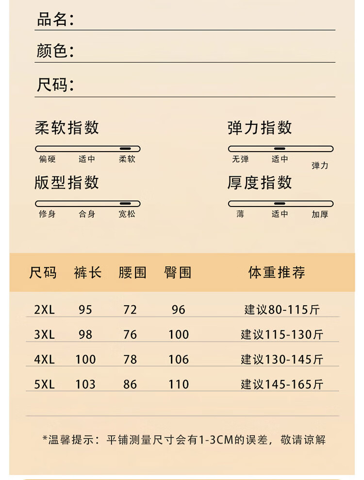 Outseam (cm) 99 cm 101.5 cm 104 cm 106.5 cm 109 cm