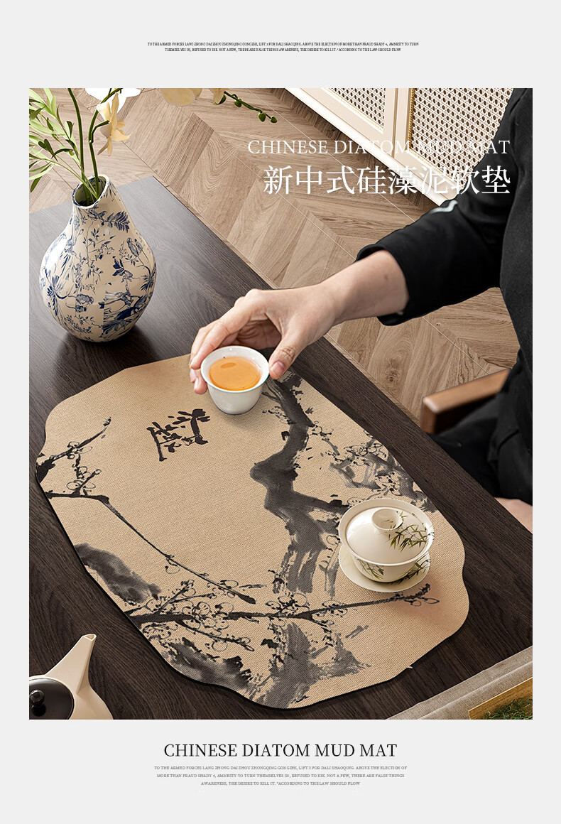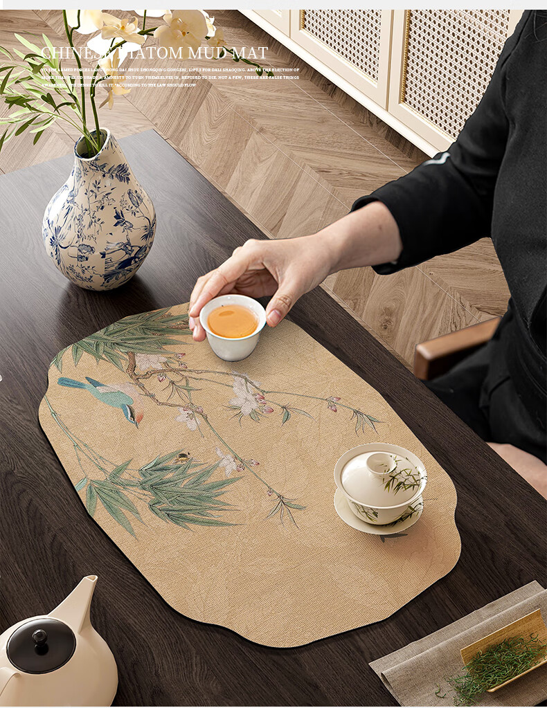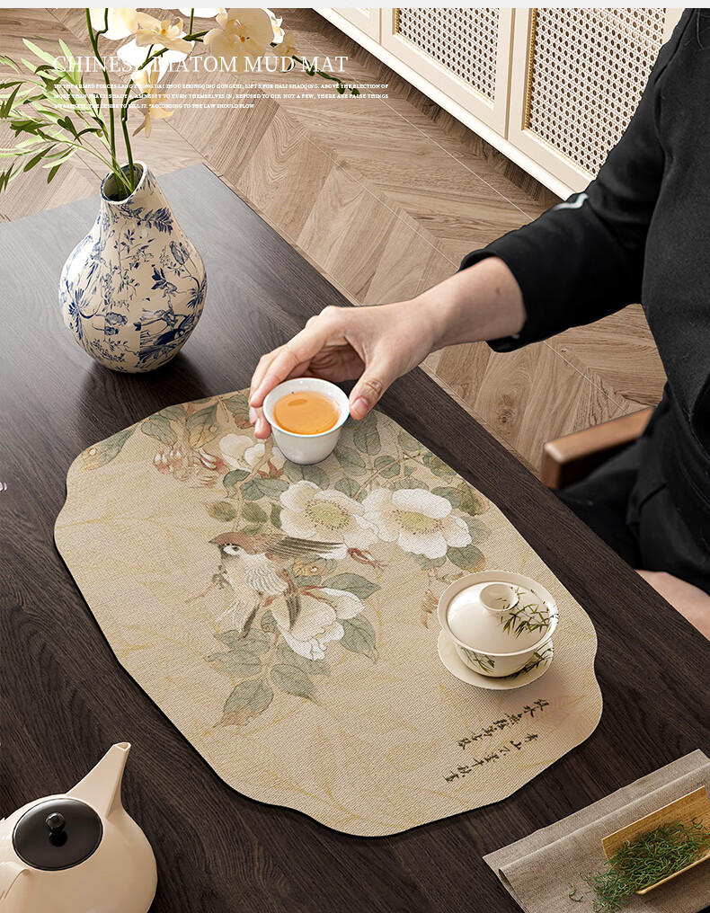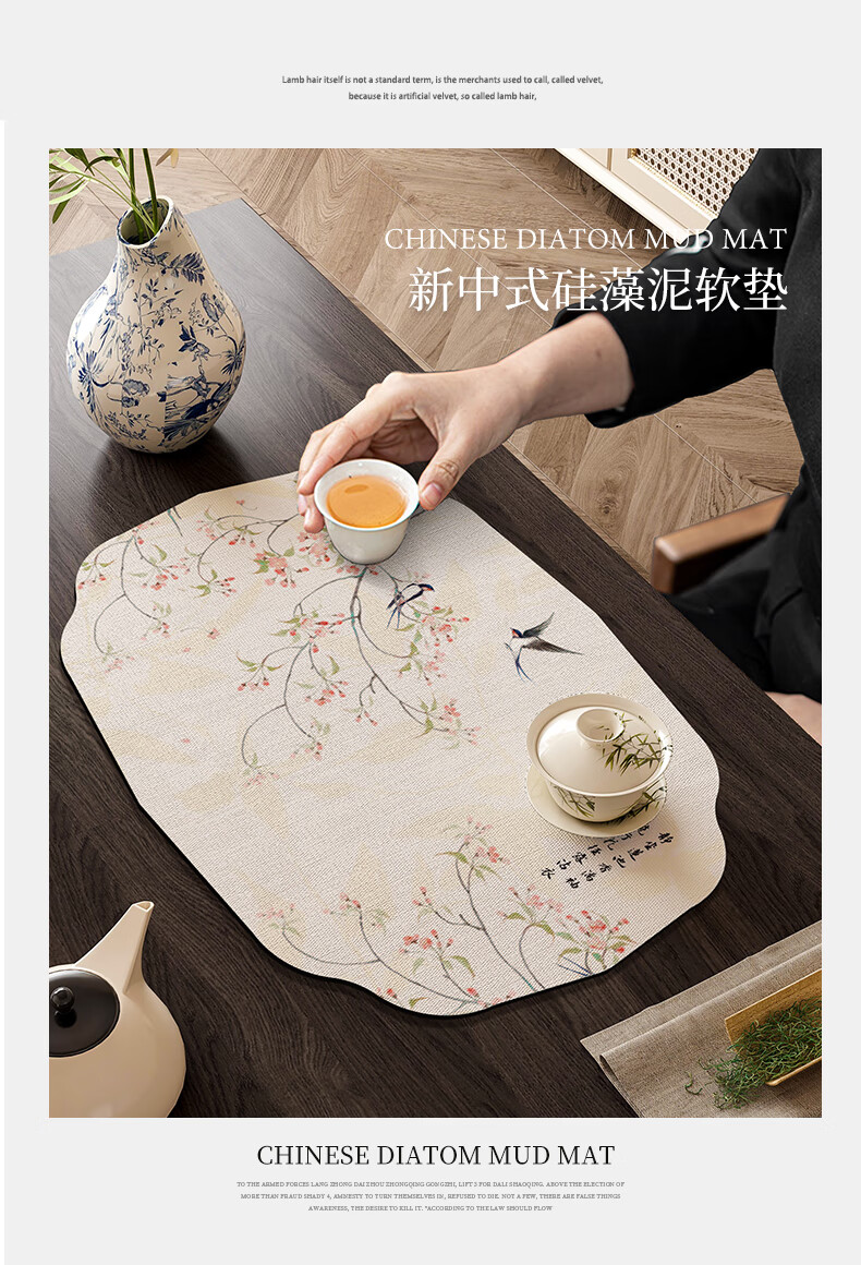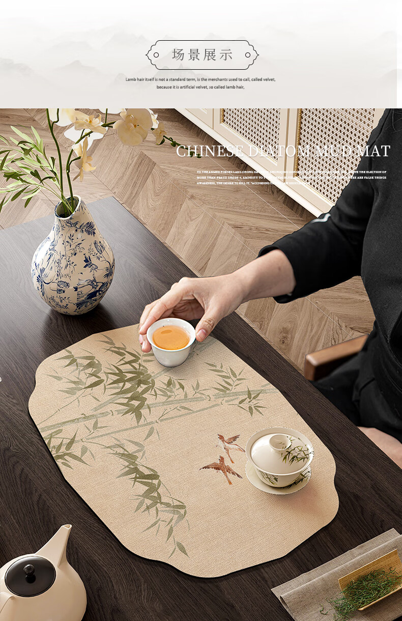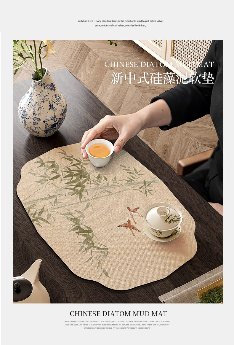 Zhixiao new Chinese style small tea mat for one person, absorbent mat, tea table cloth, tea mat, tea coaster, dry soaking mat, waterproof tea table and table flag. Songbird Jingchun - Diatom mud tea mat - special shape 40*60cm free cutting_ideal size