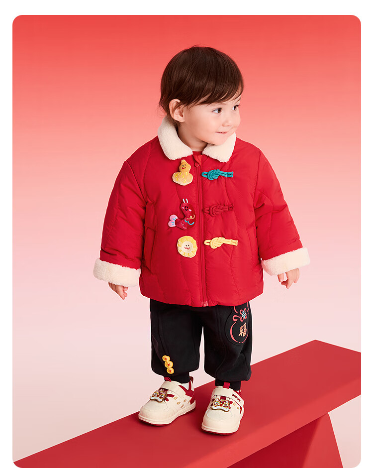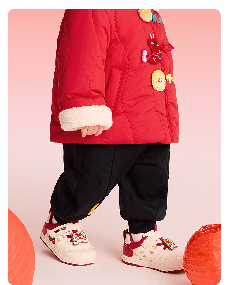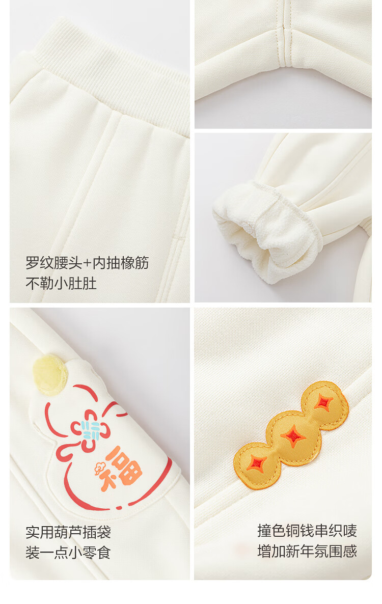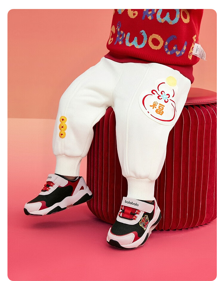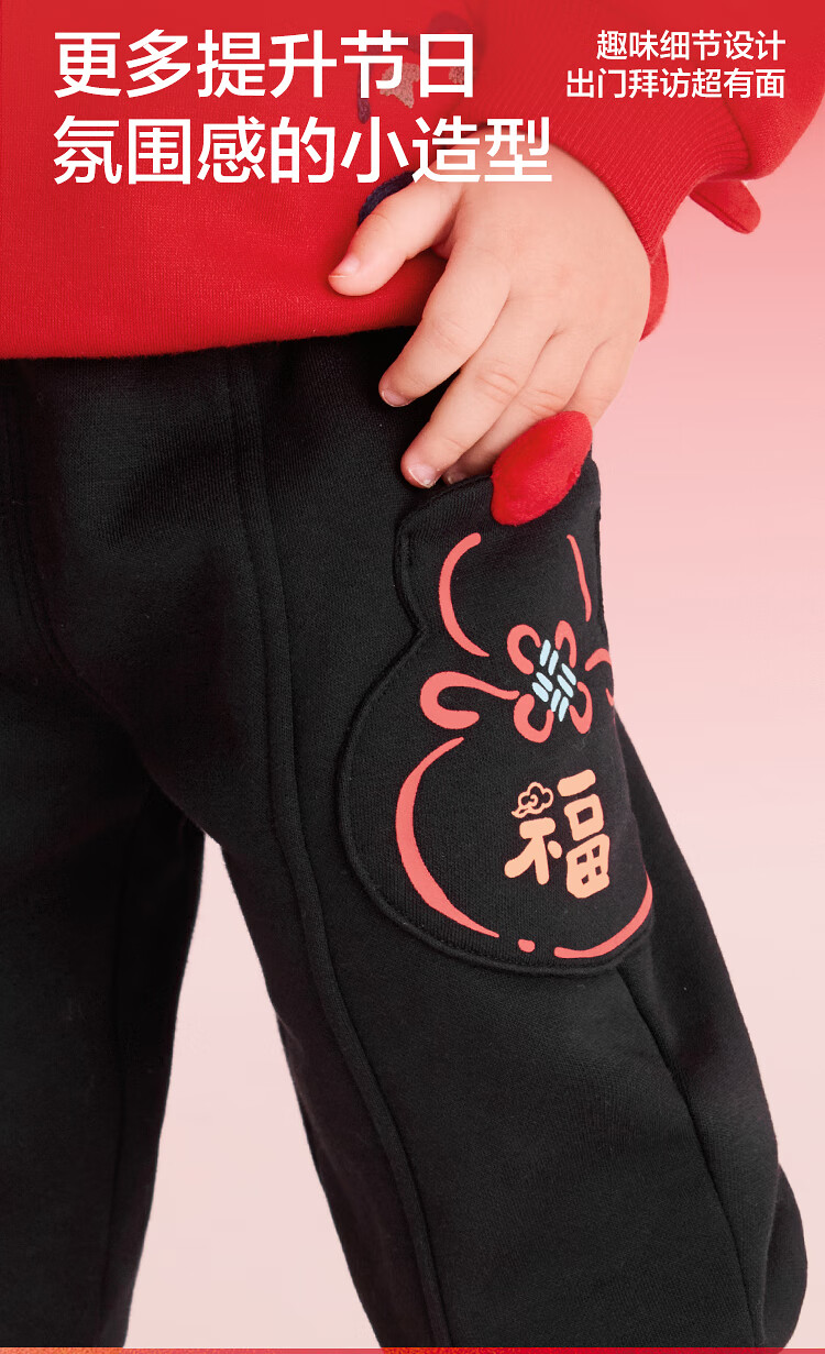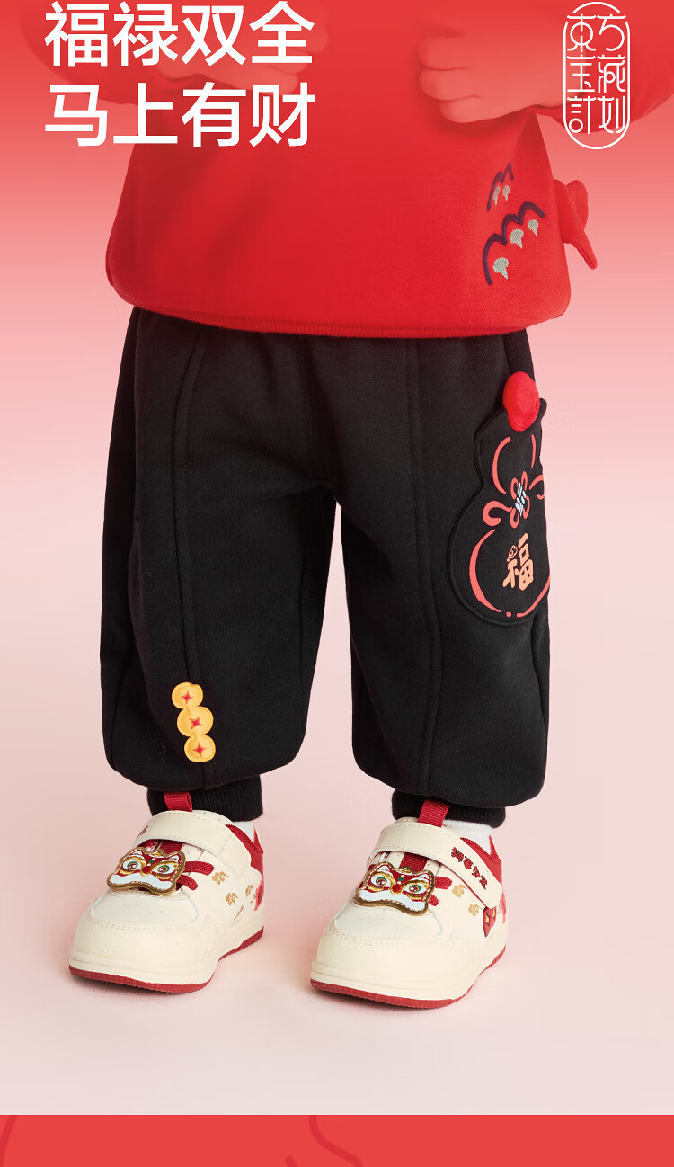 Balabala children's trousers plus velvet for boys and girls spring 2025 new New Year's greetings clothes New Year's loose and comfortable leg warmer black 90001 90