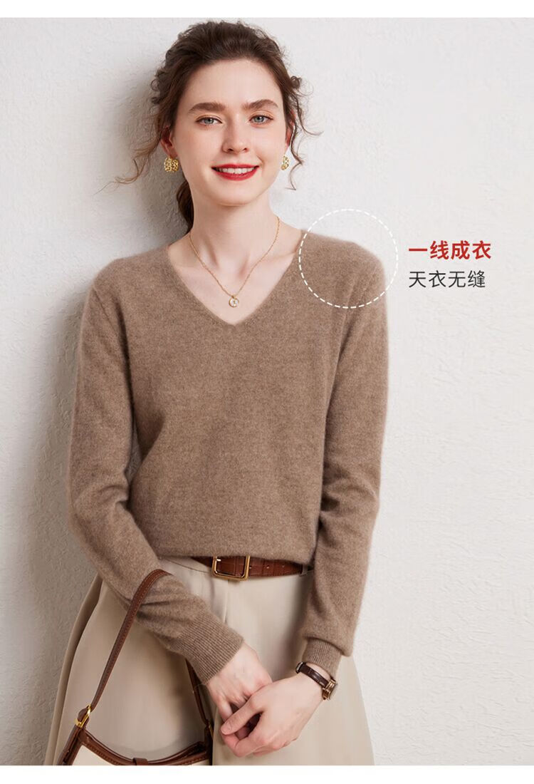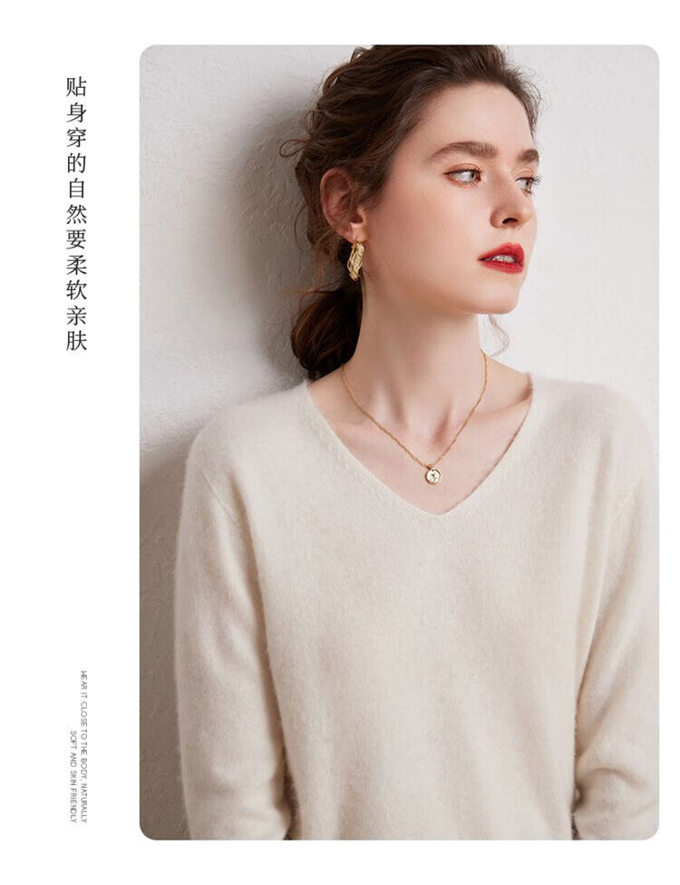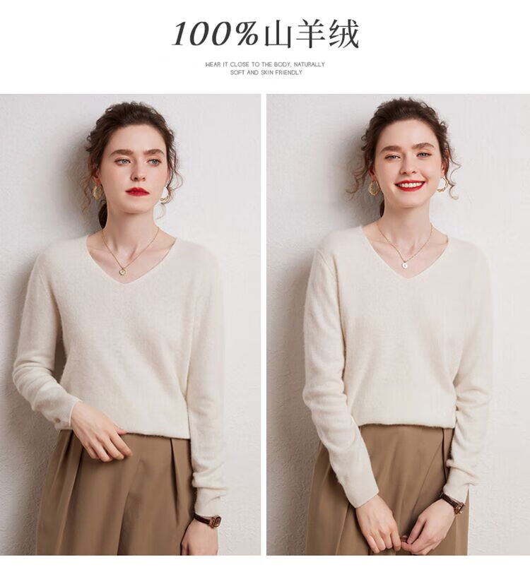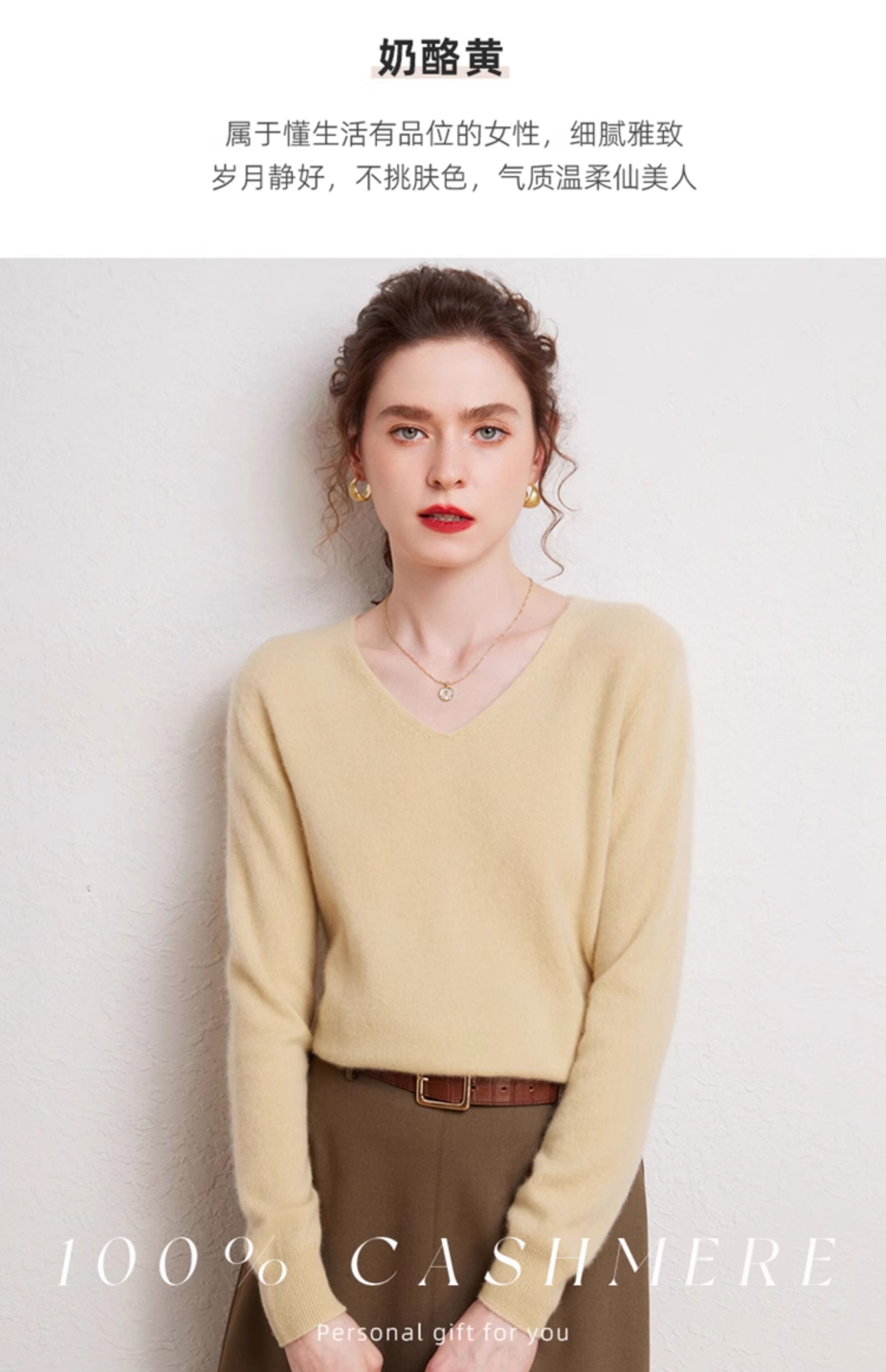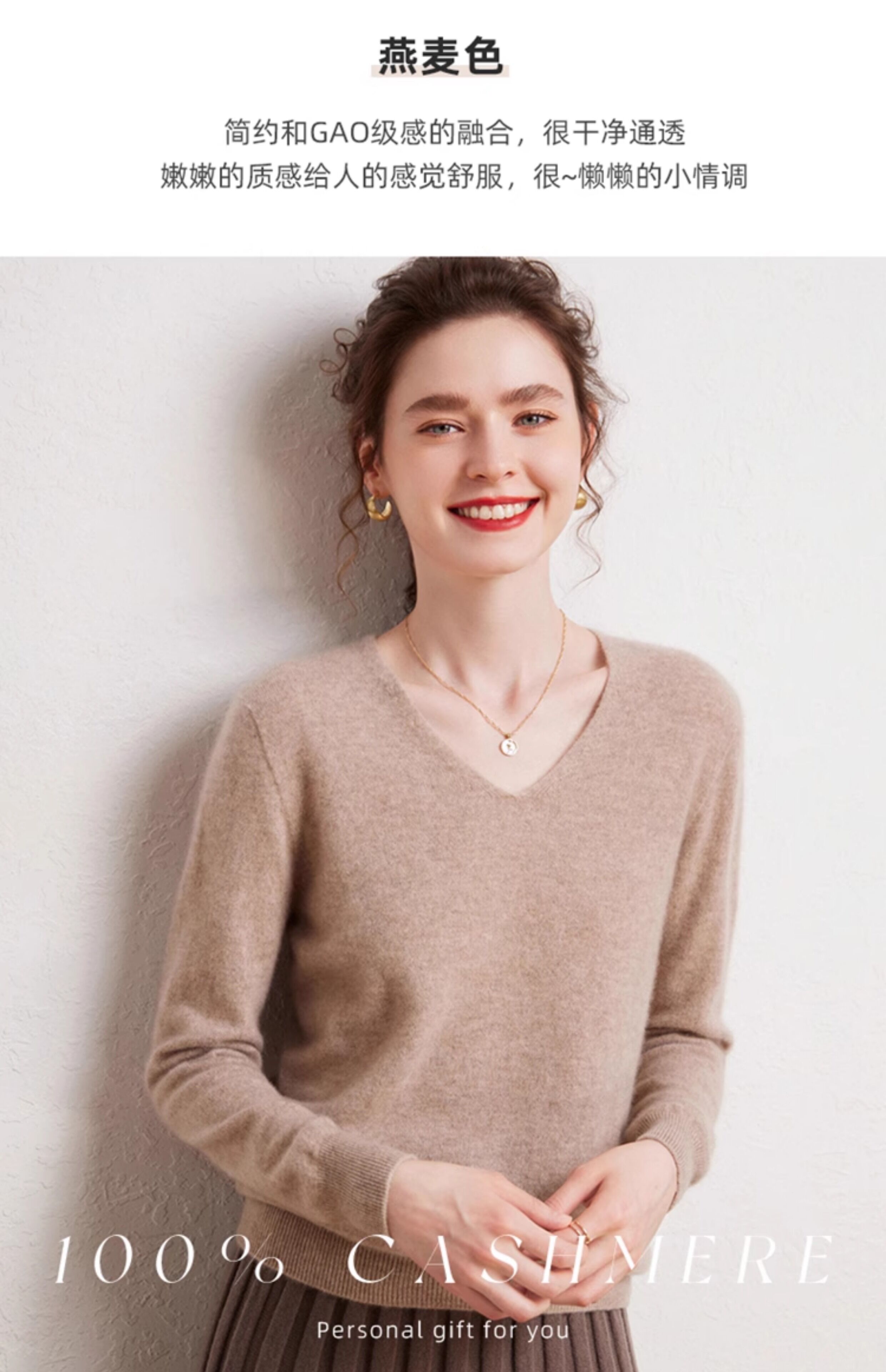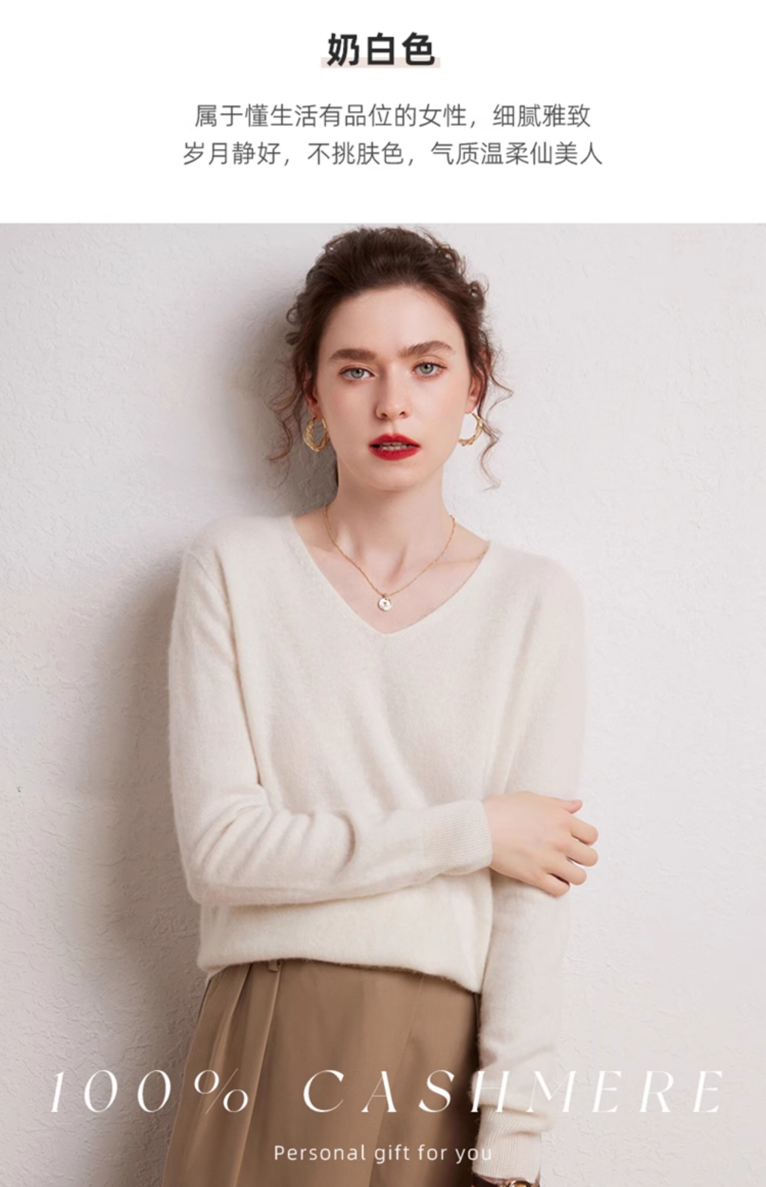 SENLIYA international light luxury high-end cashmere sweater 24 seamless 100 pure cashmere sweater women's V-neck sweater loose versatile knitted milk white S