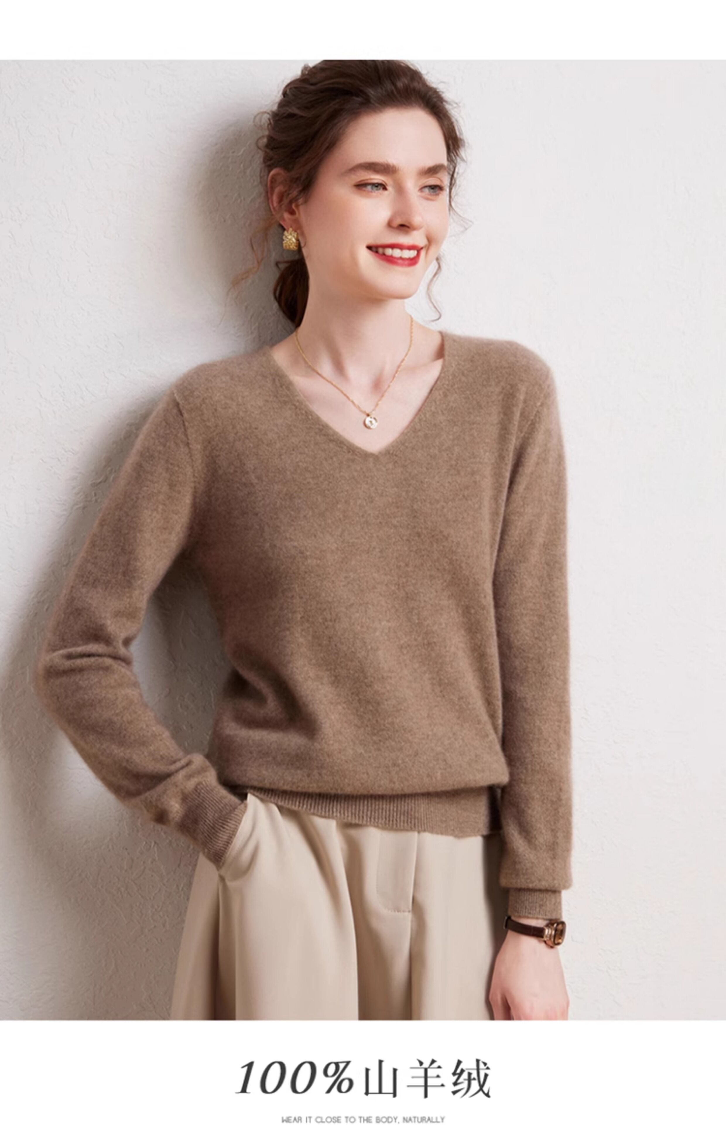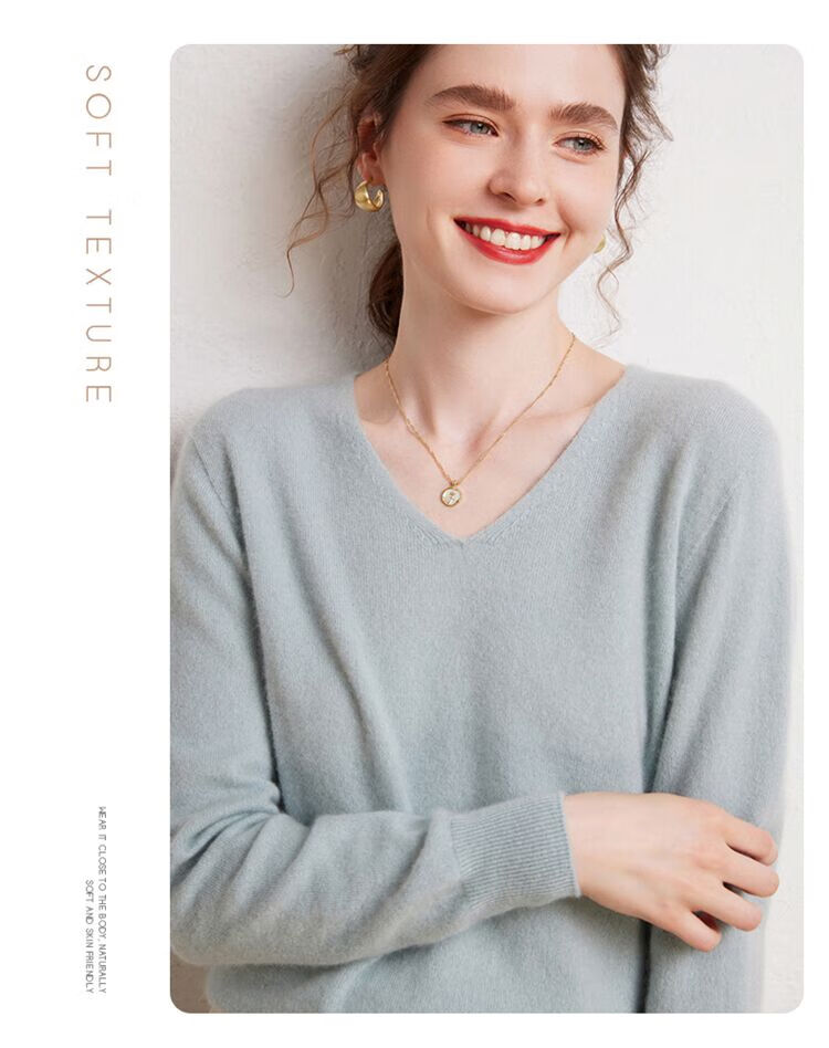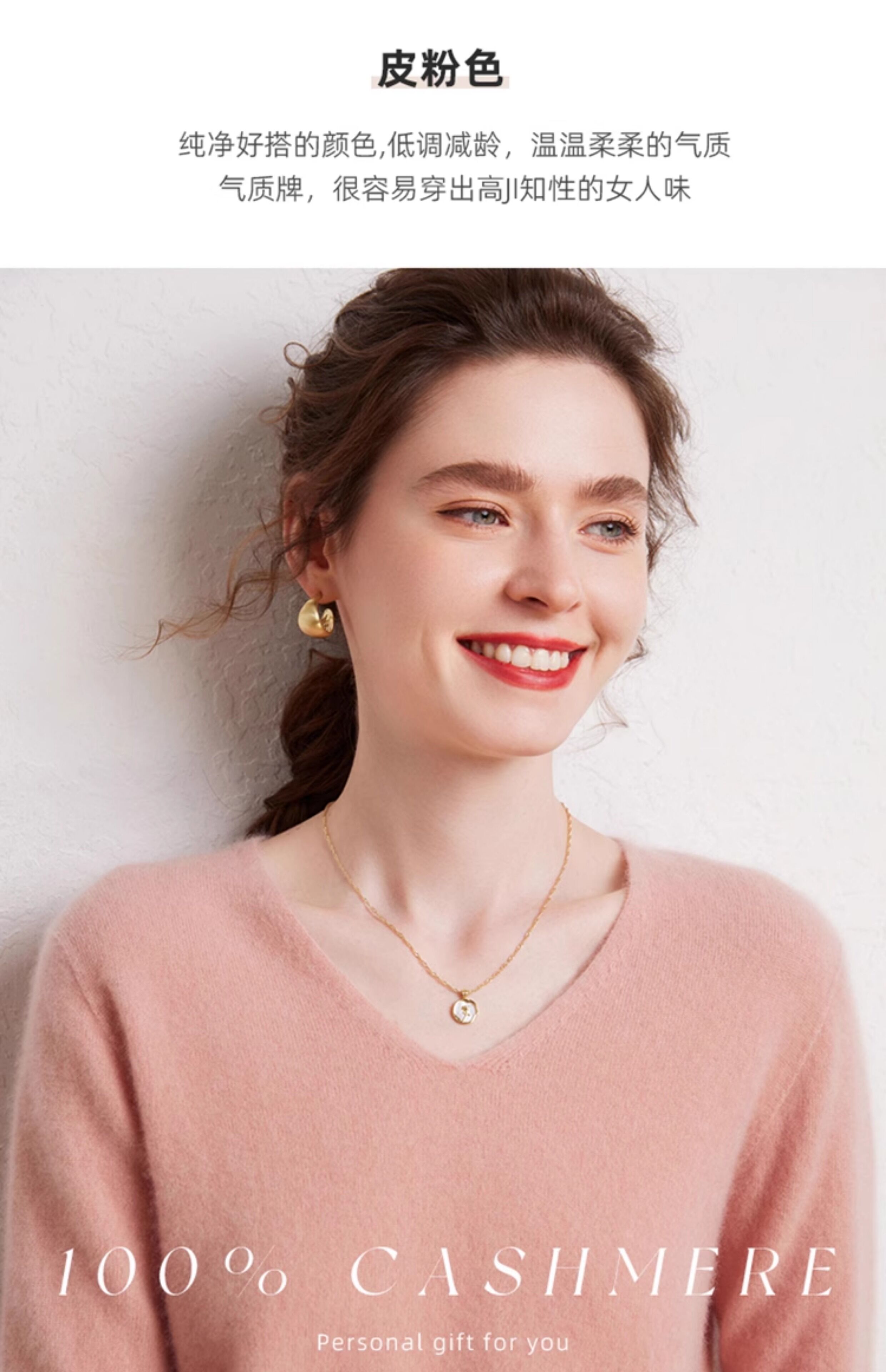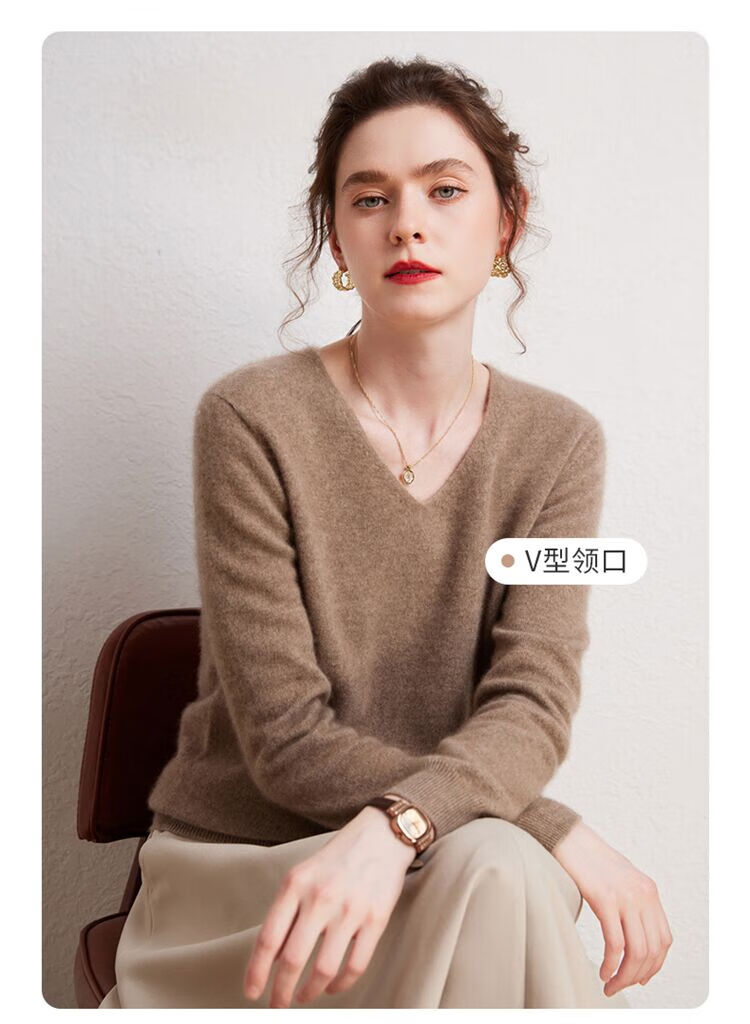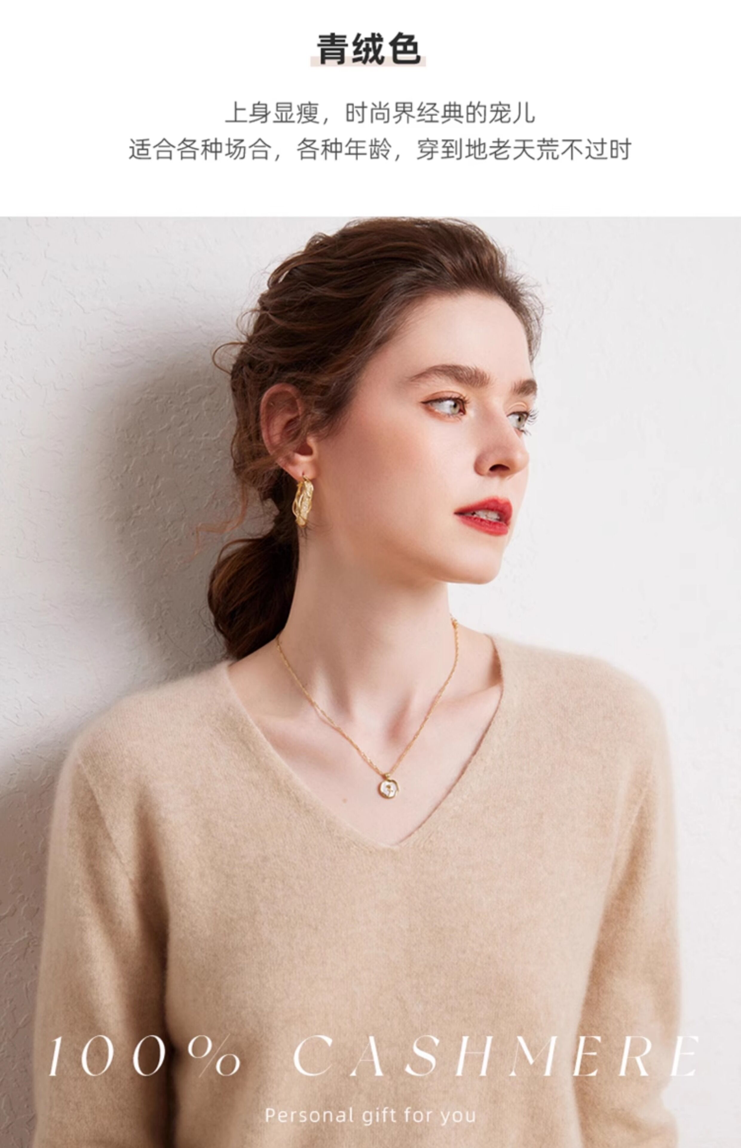 SENLIYA international light luxury high-end cashmere sweater 24 seamless 100 pure cashmere sweater women's V-neck sweater loose versatile knitted milk white S