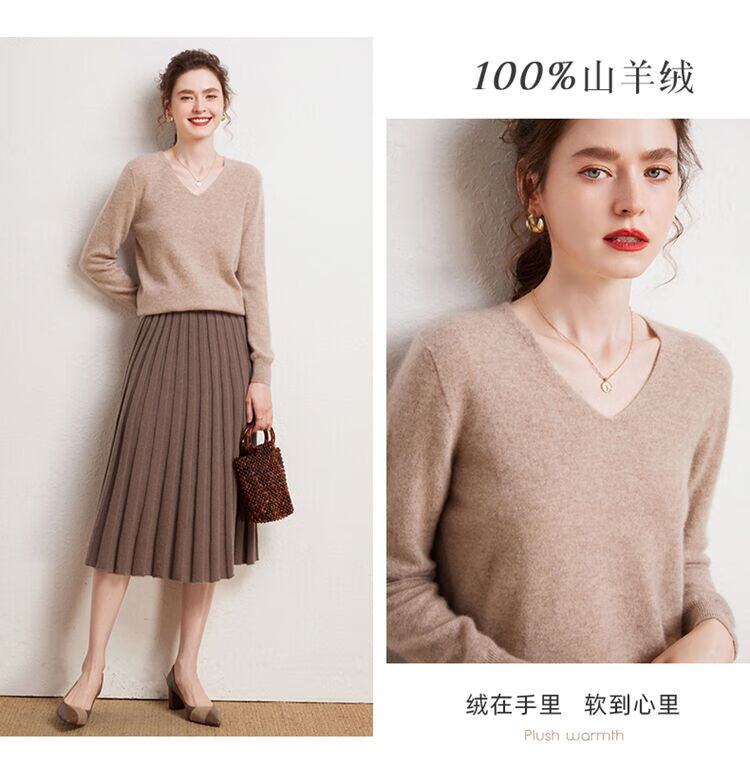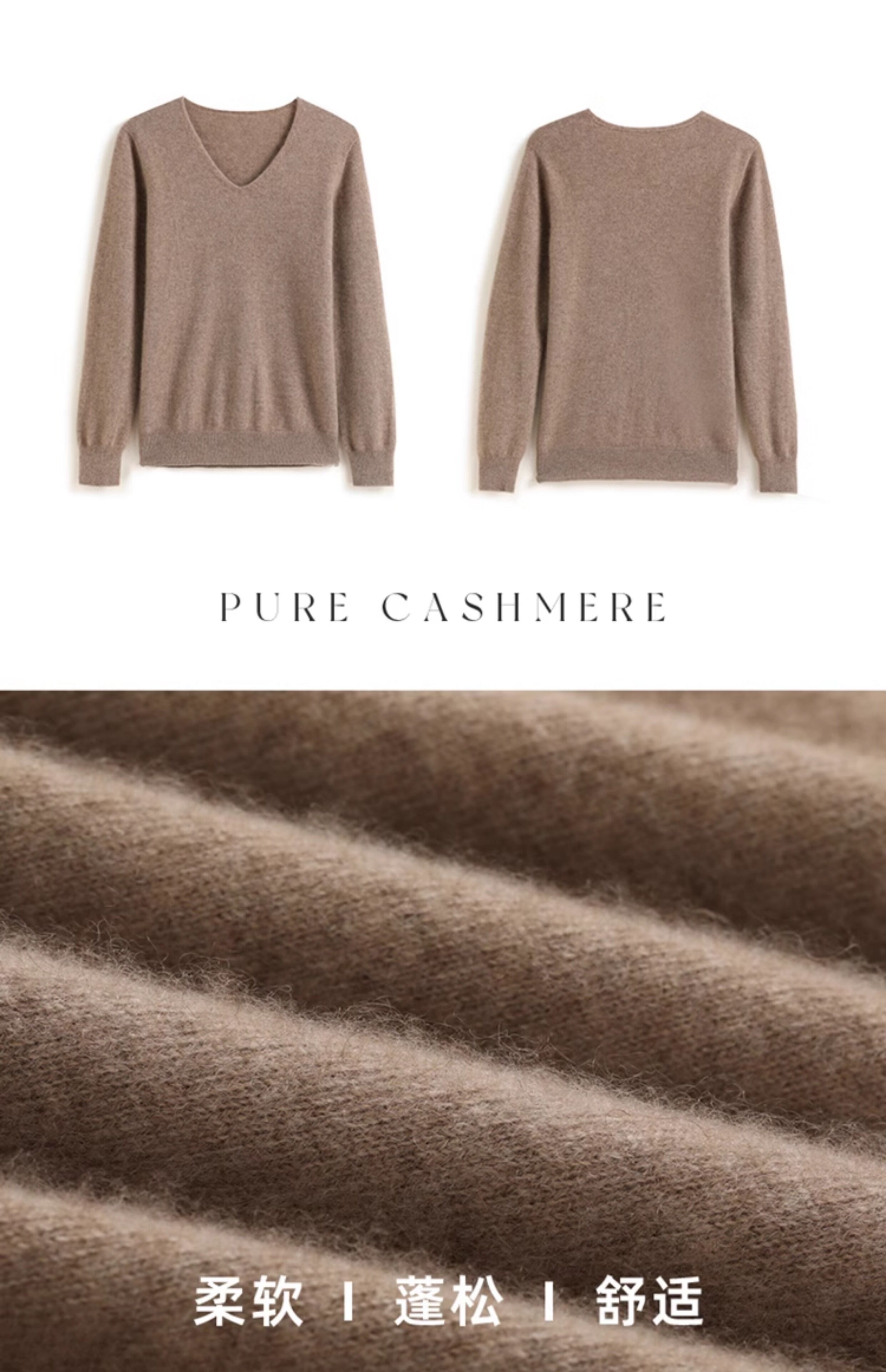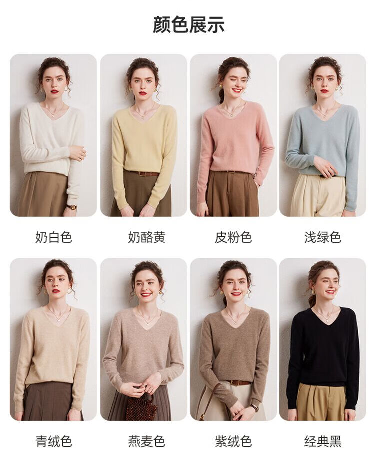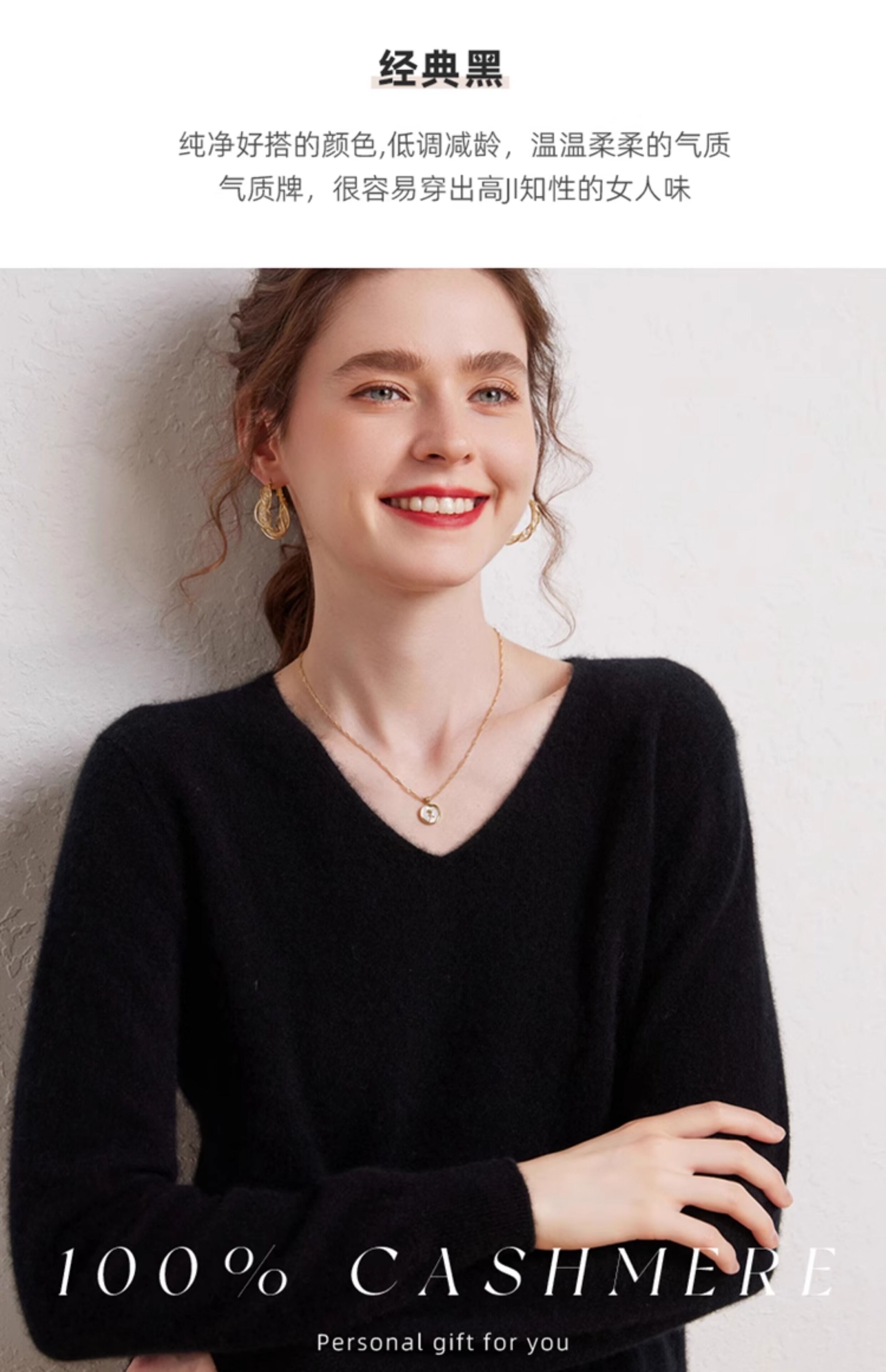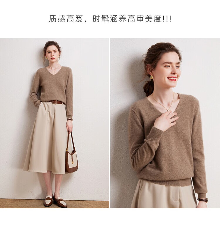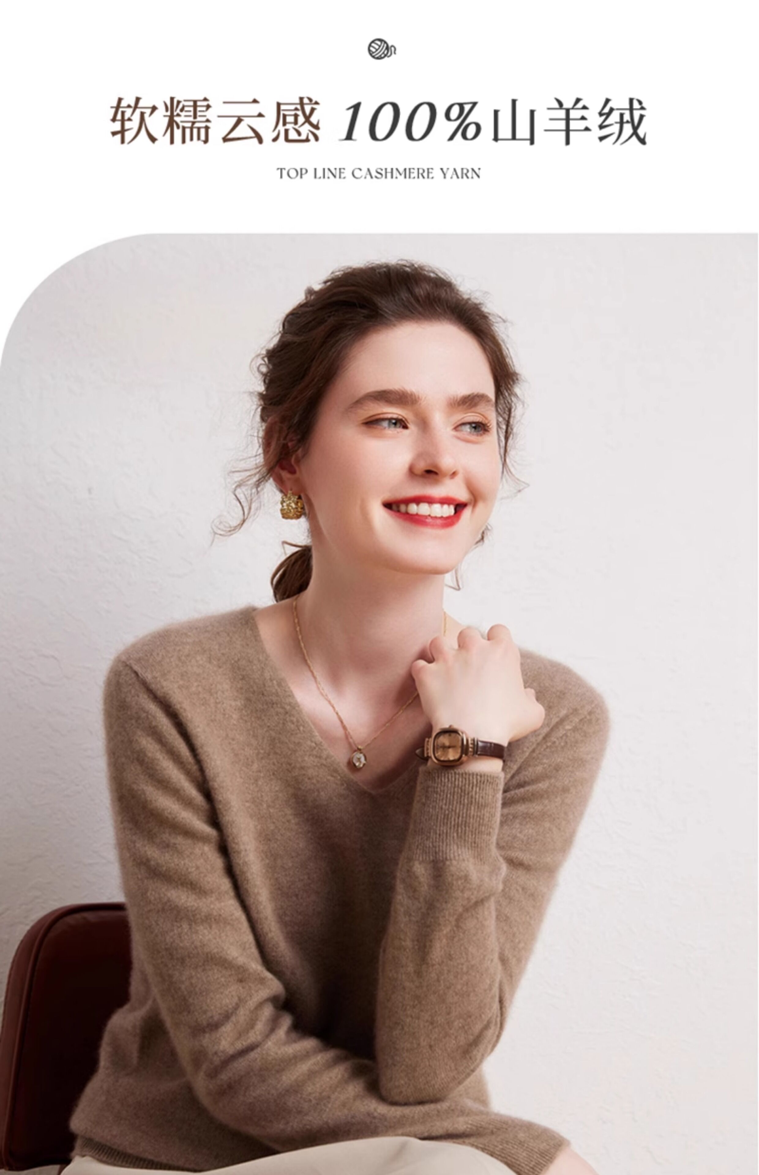 SENLIYA international light luxury high-end cashmere sweater 24 seamless 100 pure cashmere sweater women's V-neck sweater loose versatile knitted milk white S