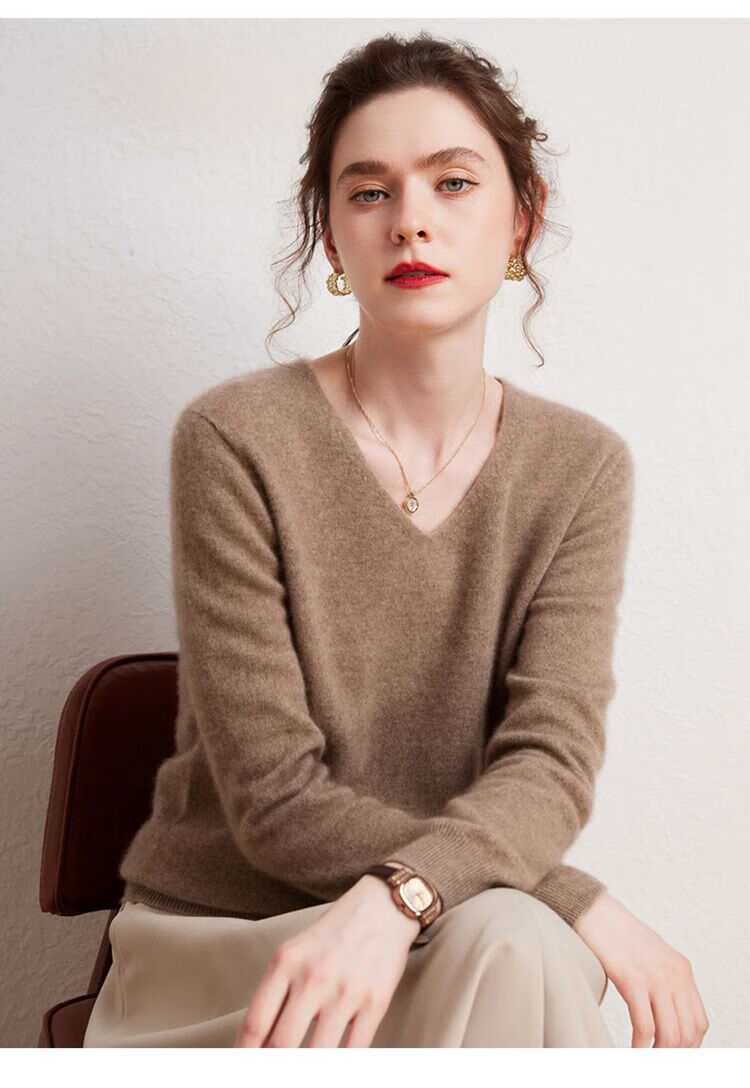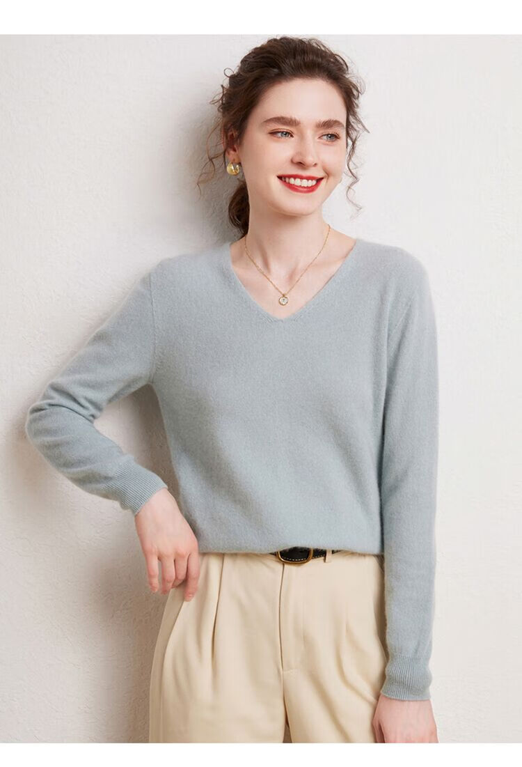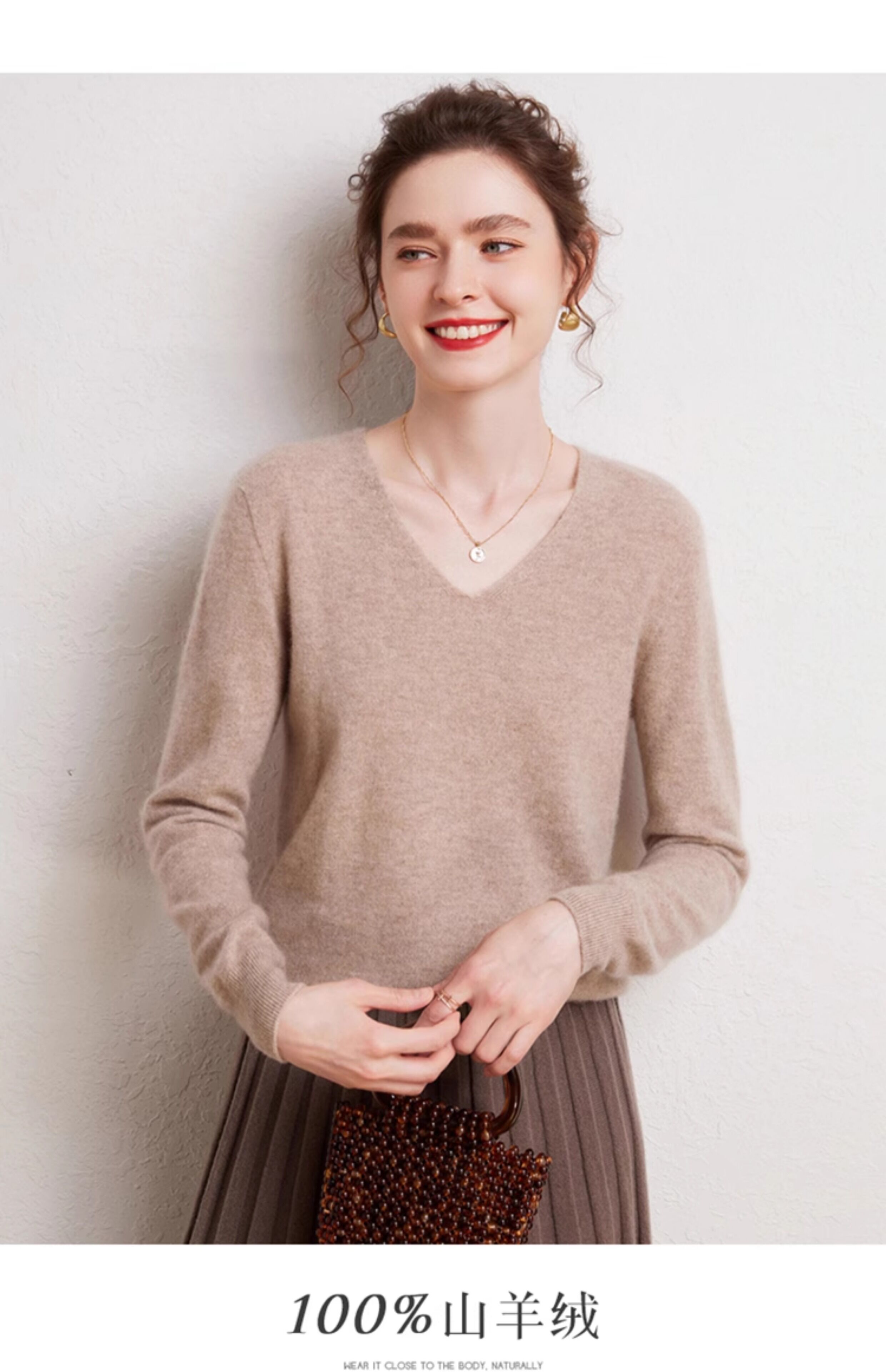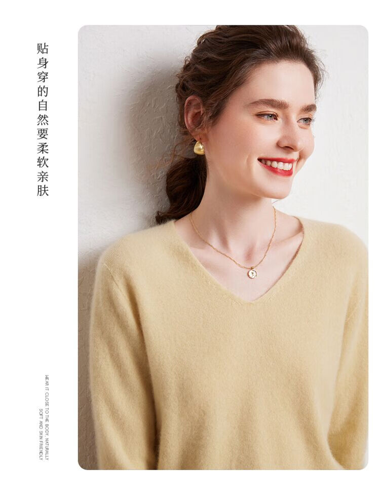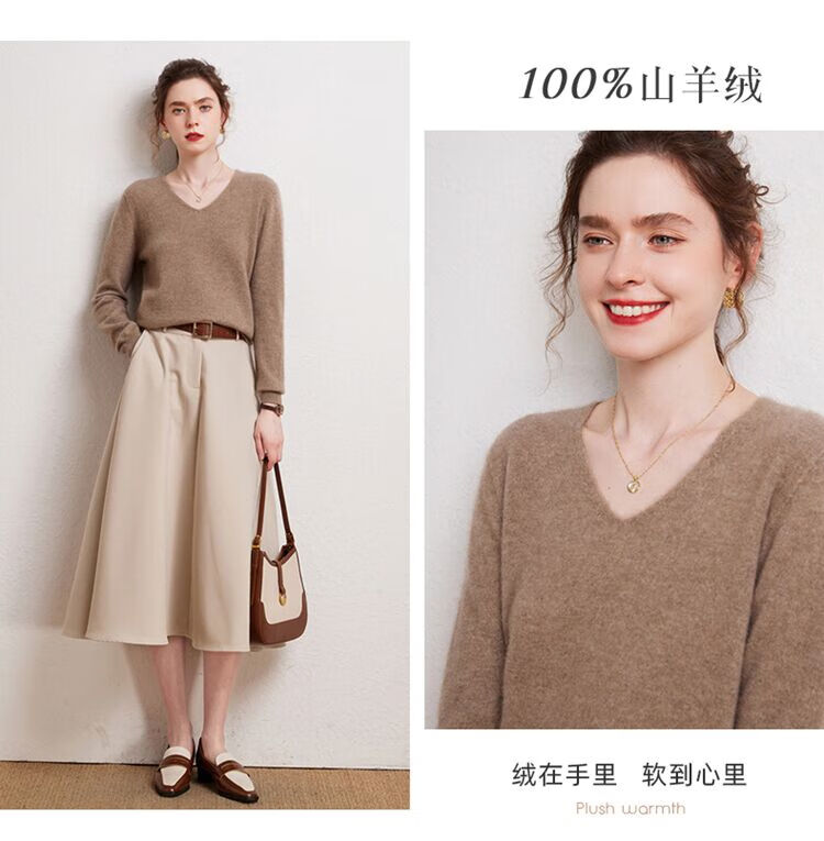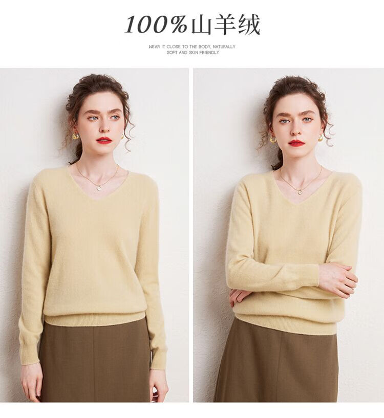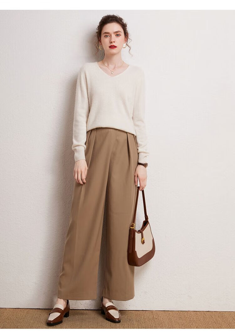 SENLIYA international light luxury high-end cashmere sweater 24 seamless 100 pure cashmere sweater women's V-neck sweater loose versatile knitted milk white S
