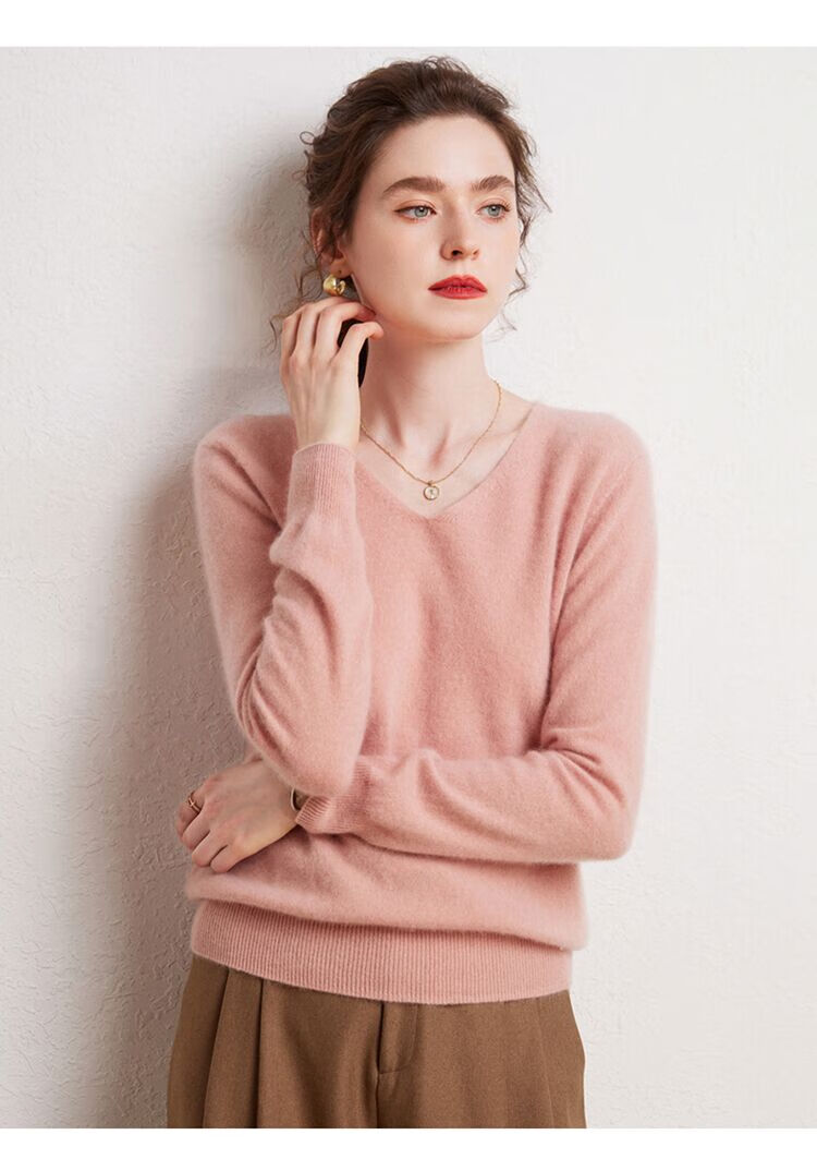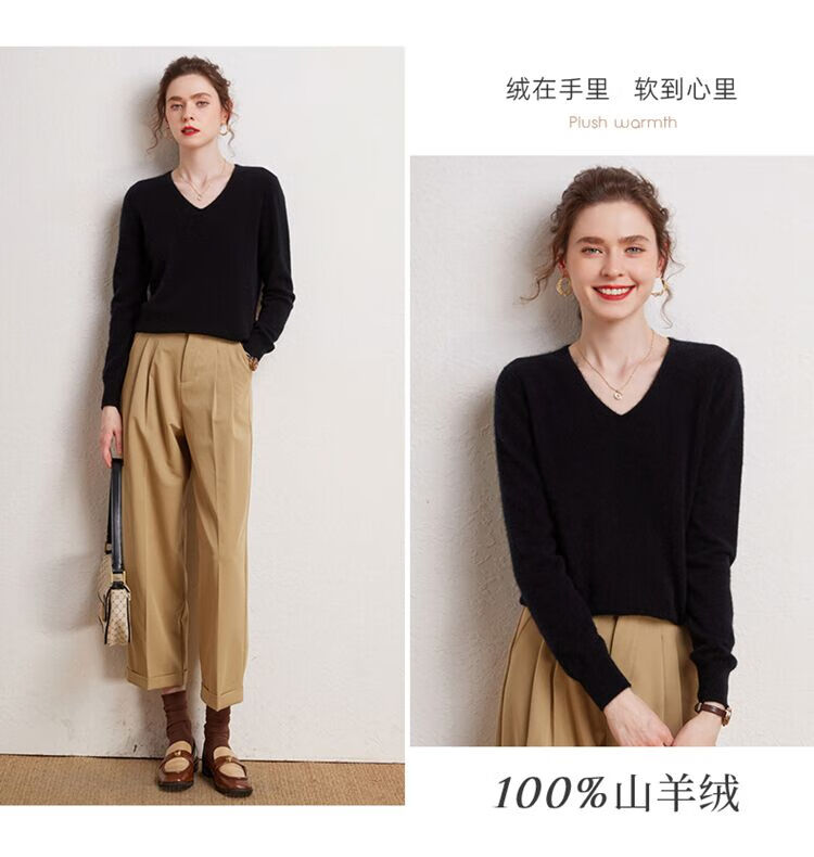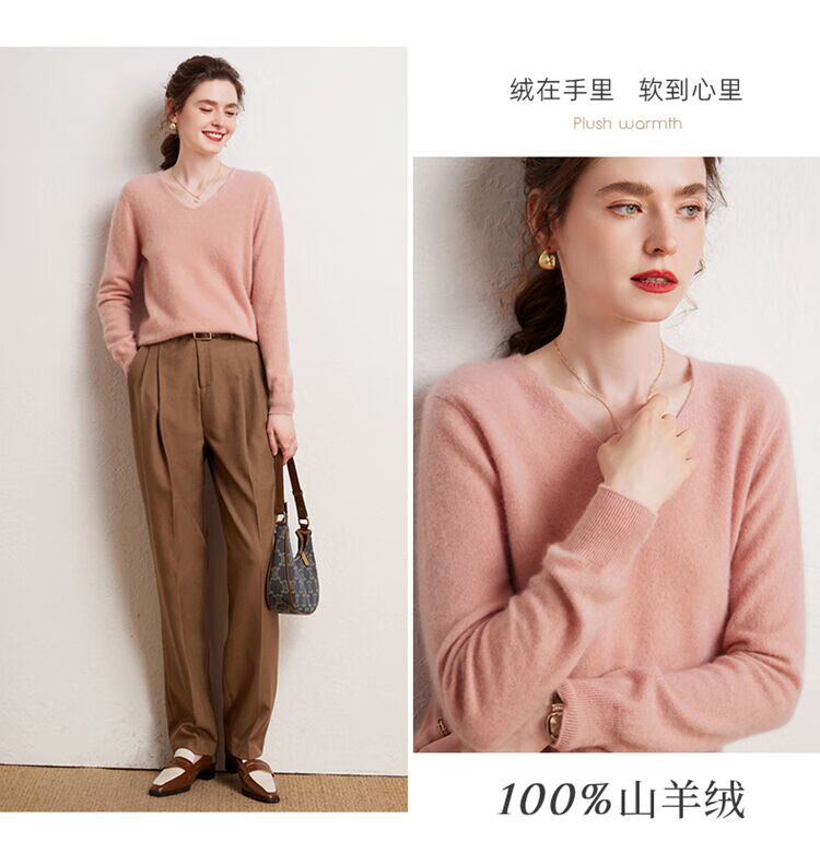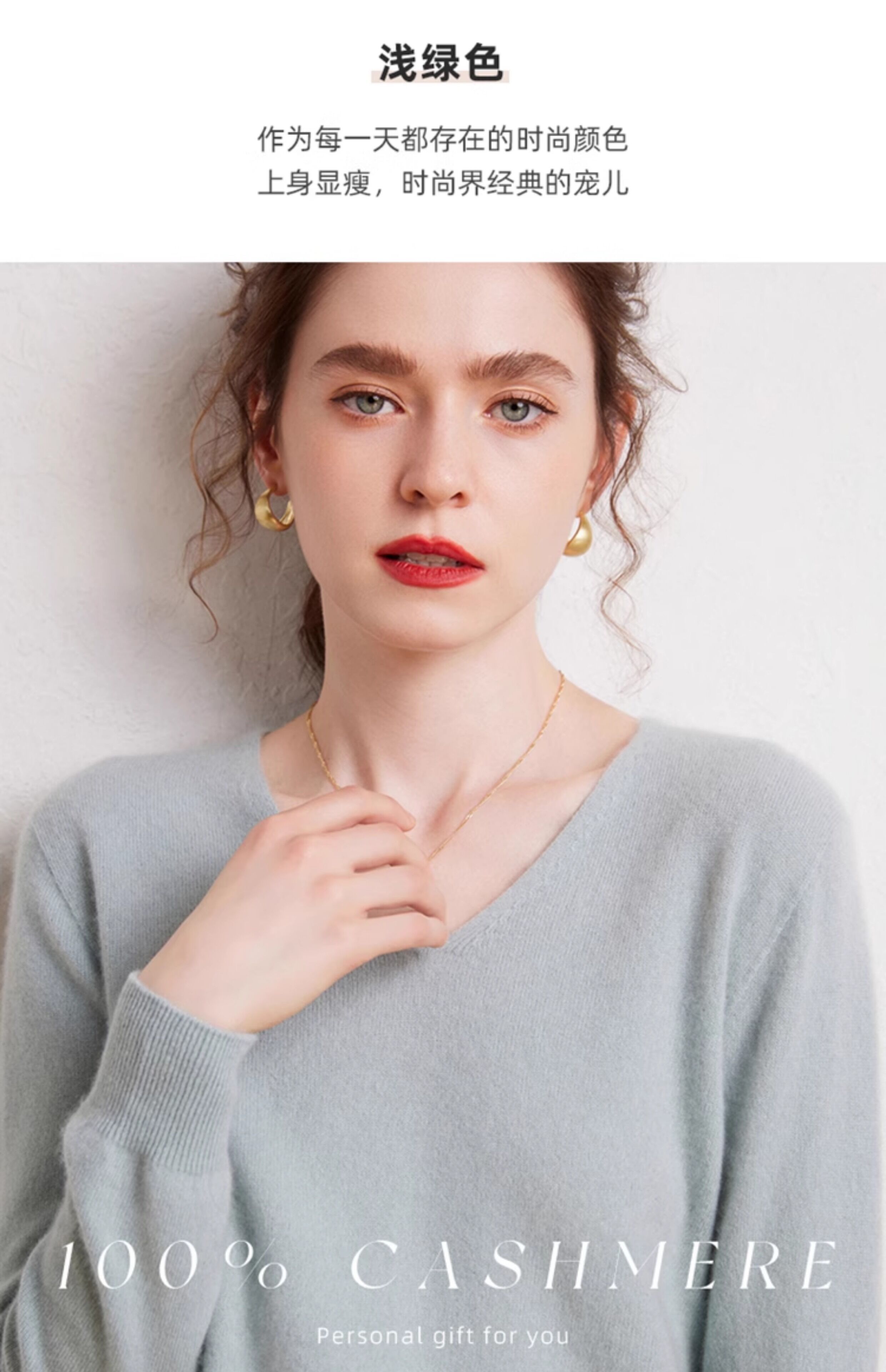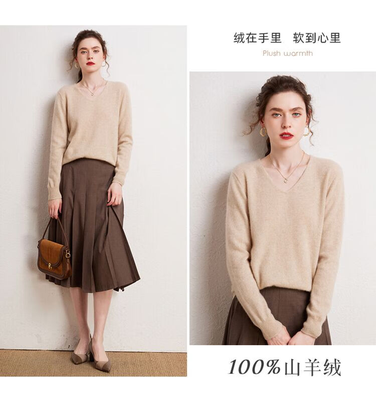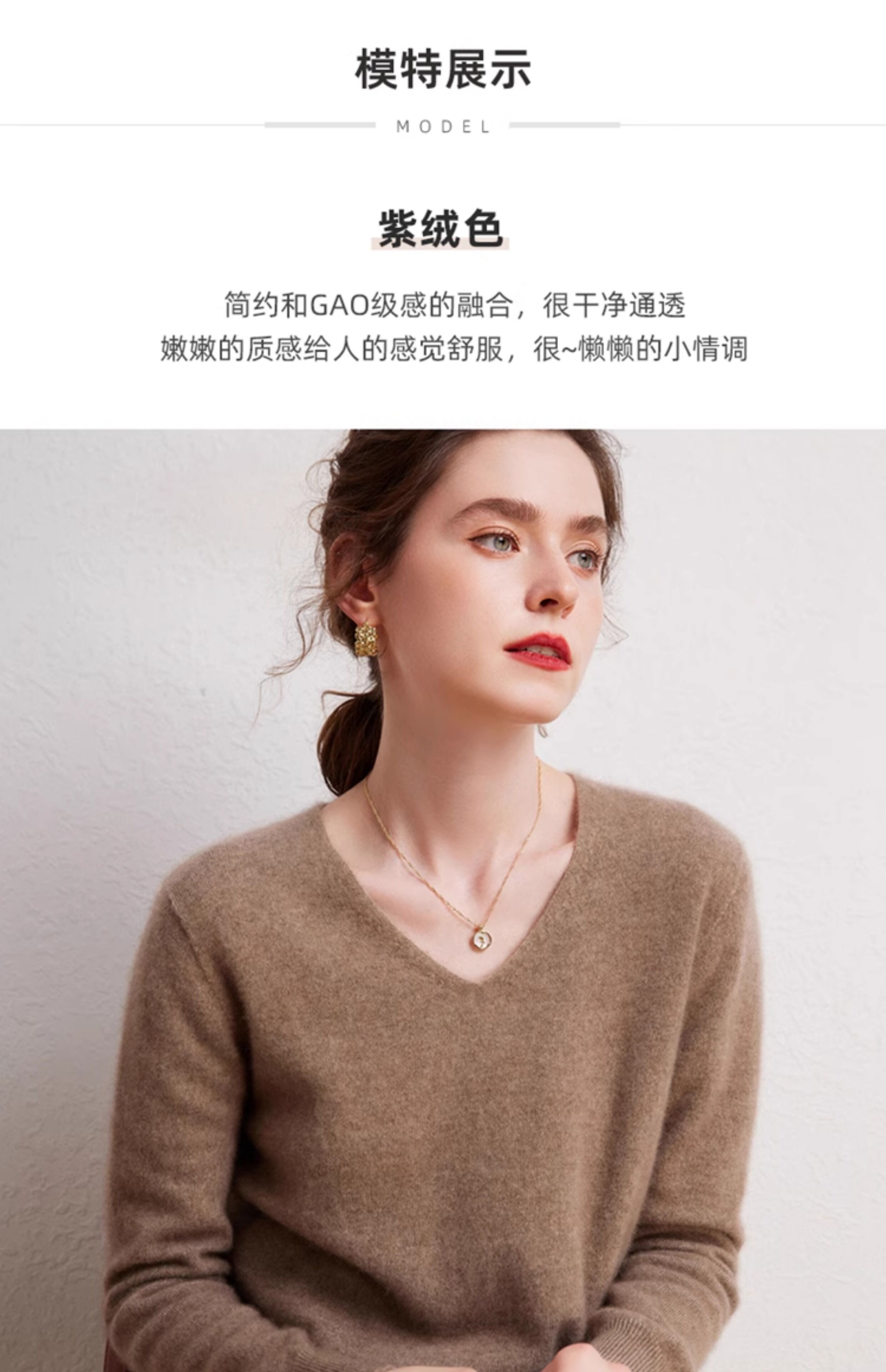 SENLIYA international light luxury high-end cashmere sweater 24 seamless 100 pure cashmere sweater women's V-neck sweater loose versatile knitted milk white S