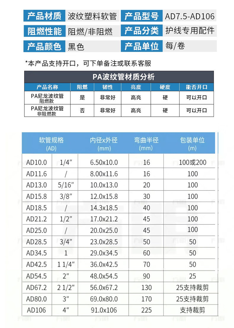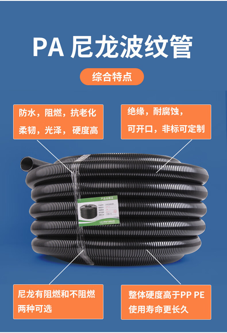 MAXX POWER plastic corrugated pipe PA nylon threading hose wire and cable electrician protective sleeve flame retardant pipe threaded pipe opening PA nylon ad42.5/inner diameter 36/50 meters