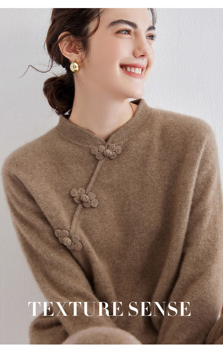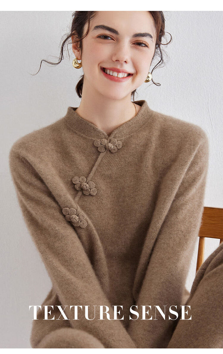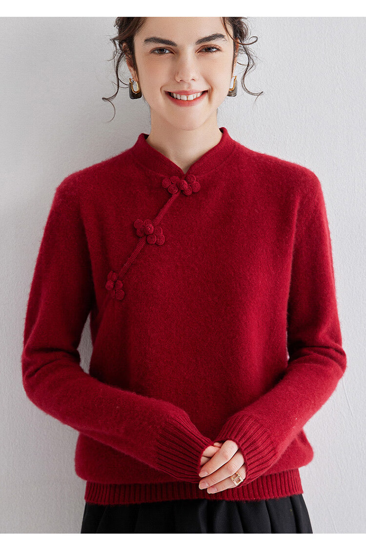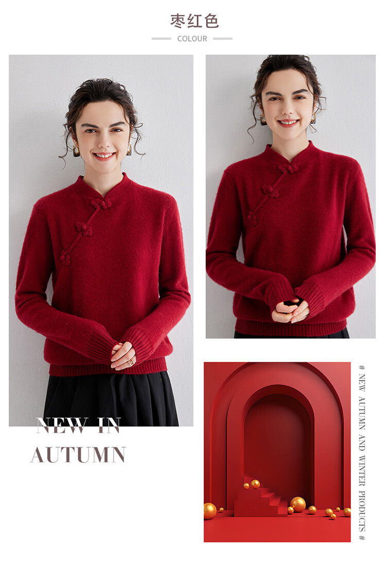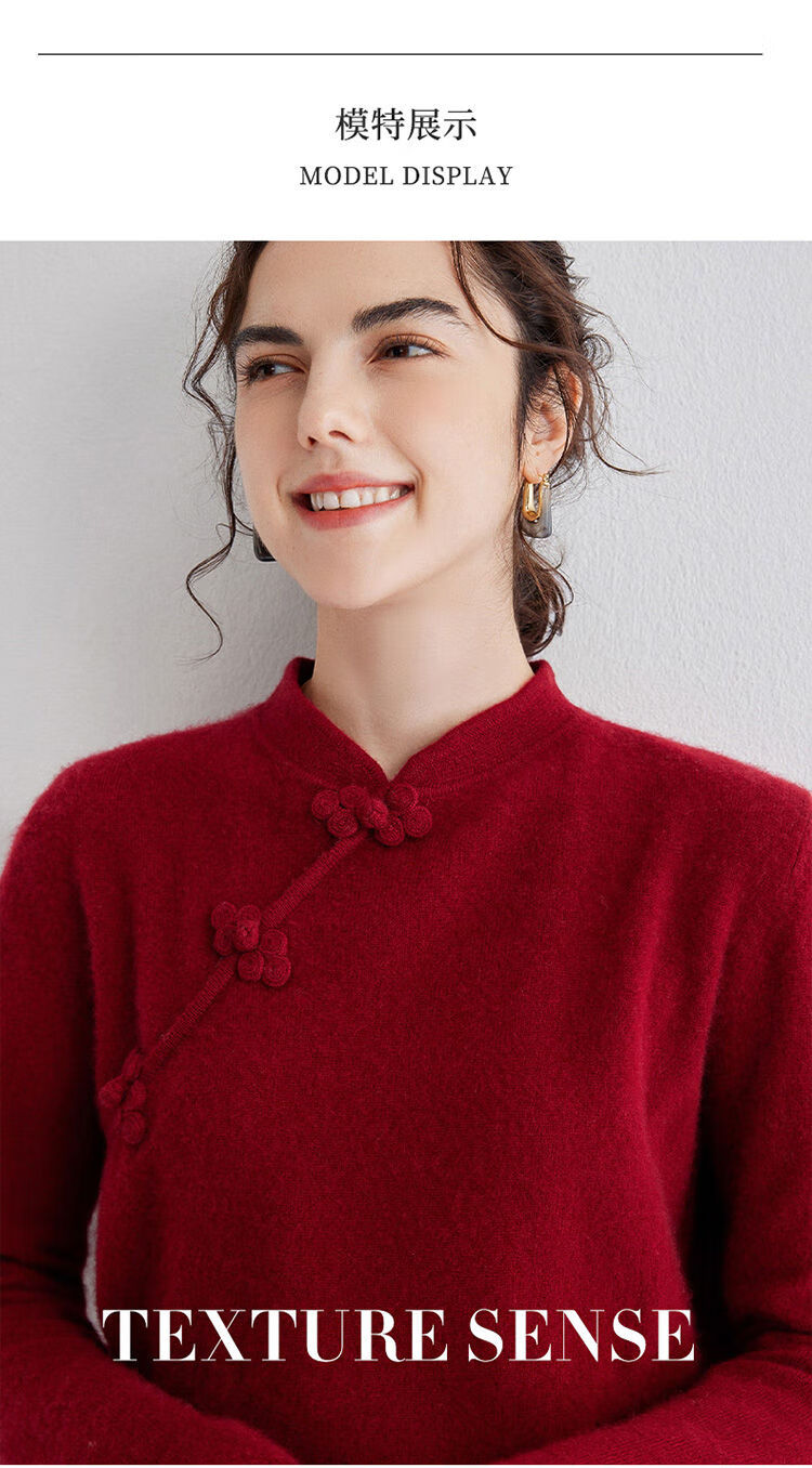 SENLIYA International Light Luxury High-End Cashmere Sweater Button Stand Collar Cashmere Sweater Women's Cashmere Slim Half Turtleneck Pullover Sweater Pomegranate Red S Collection and purchase will give you a gift