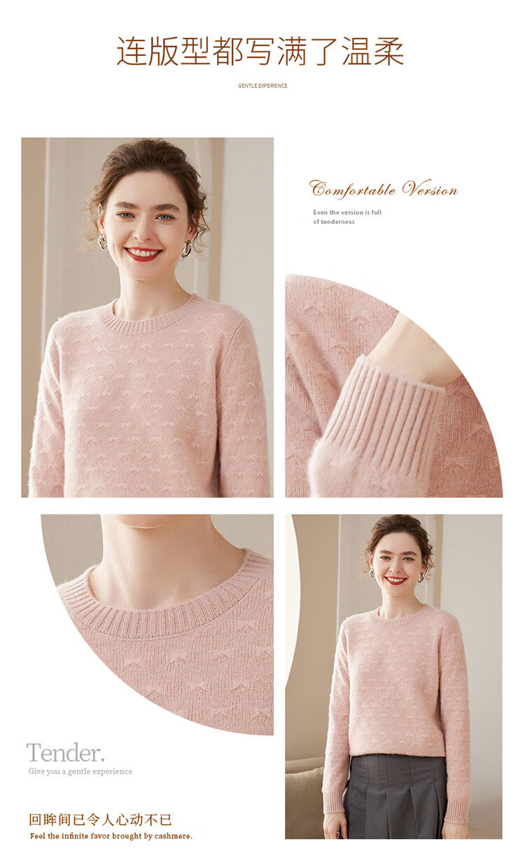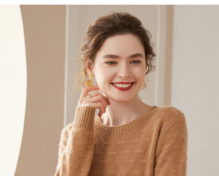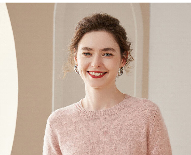 SENLIYA International Light Luxury High-end Cashmere Sweater 100 Pure Cashmere Sweater Women's Round Neck Thick Loose Solid Color Cable Sweater Needle Grapefruit Red S Collect and purchase to get a gift