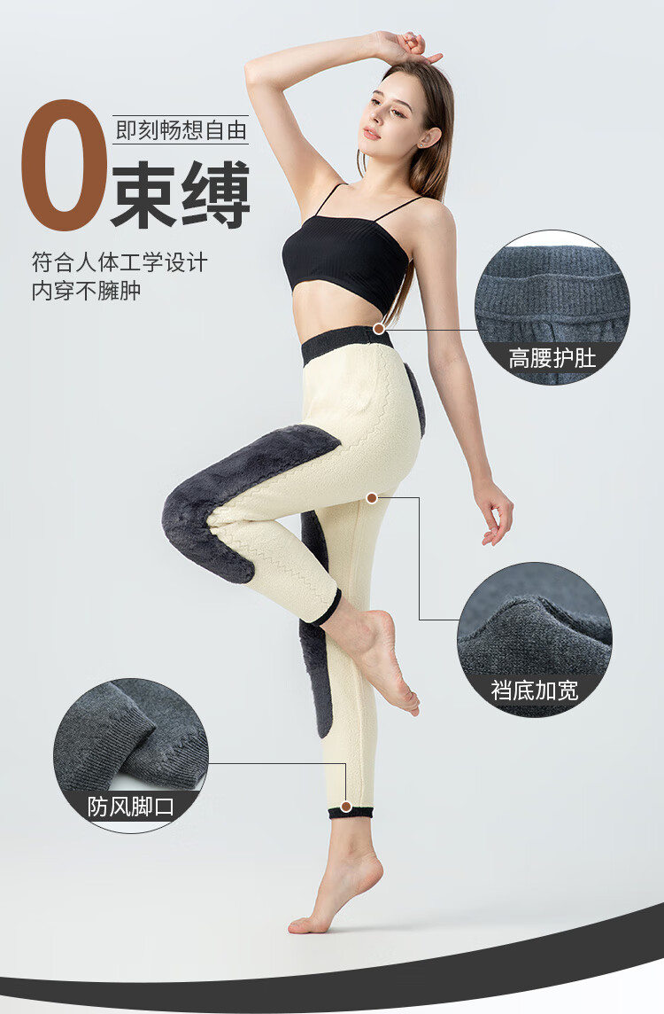 Woodpecker Wool Pants Plus Velvet Thickened Warm Pants Middle-aged and Elderly Northeastern Cotton Pants Women's Leggings Winter High-Waisted Cashmere Pants - Style B Dark Gray - Lamb M