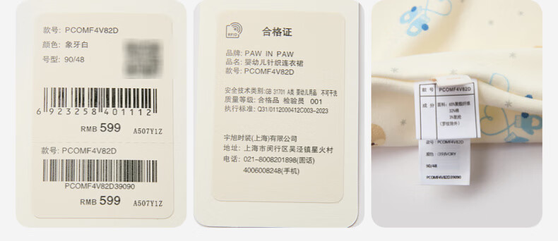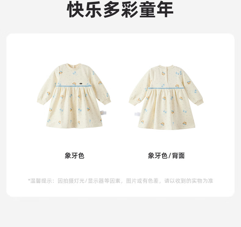 PawinPaw shopping mall same style cartoon bear children's clothing 25 years new winter new baby girl dress plus velvet Ivory ivory/39 120