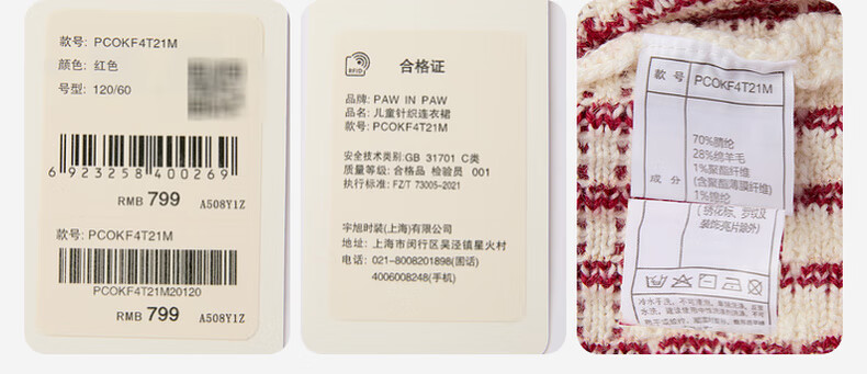 PawinPaw shopping mall same style cartoon bear children's clothing 25 years new winter new girls sweater dress Red red/20 160