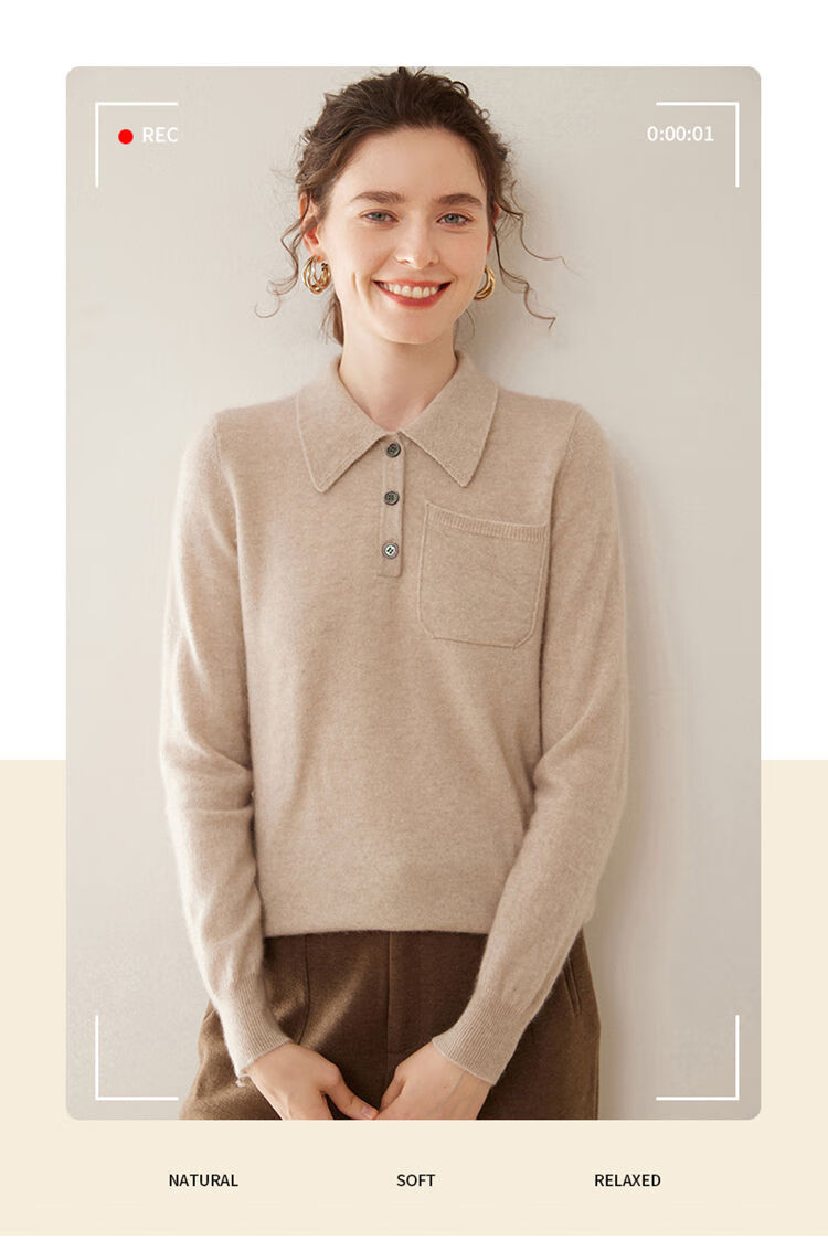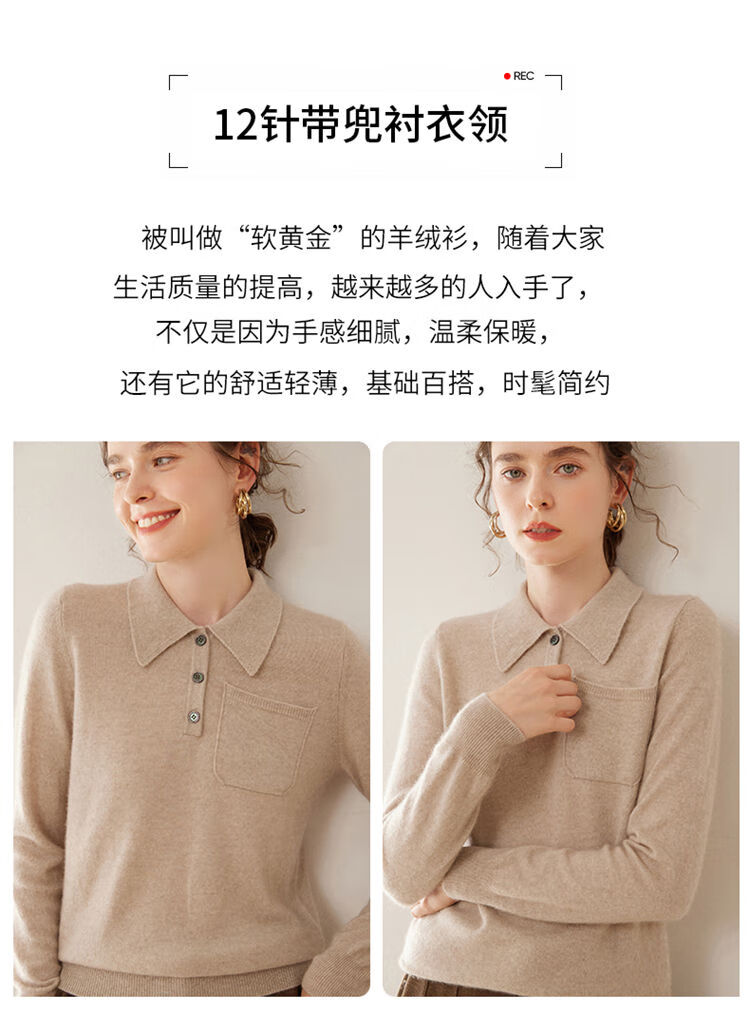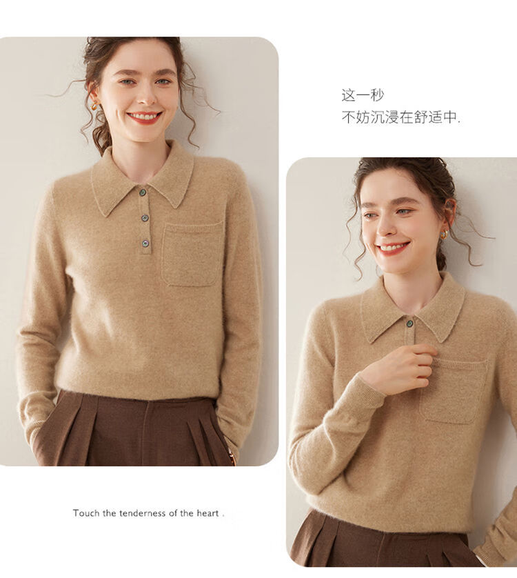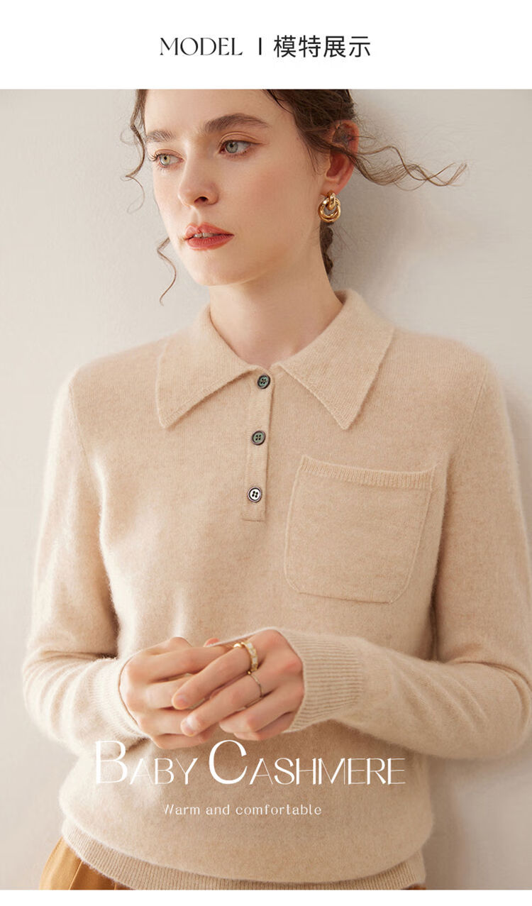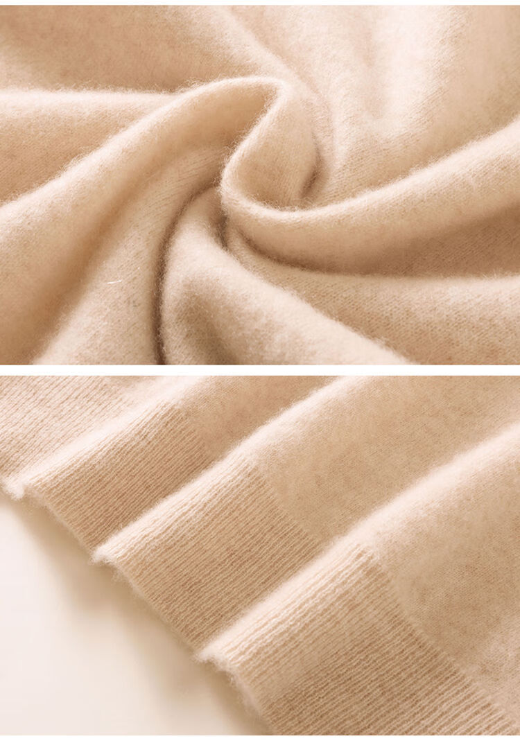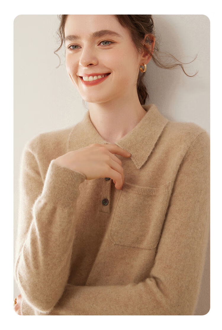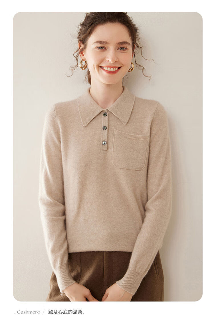 SENLIYA international light luxury high-end cashmere sweater 24 lapels with pockets cashmere sweater for women solid color sweater knitted wool bottoming sweater green velvet beige S 90-105Jin Jin is equal to 0.5 kg