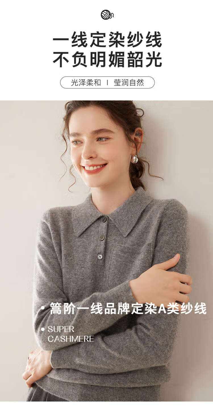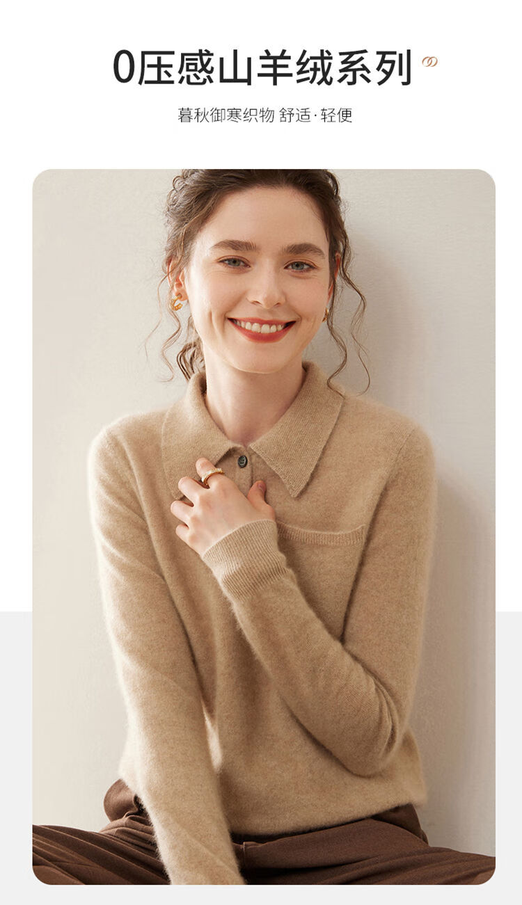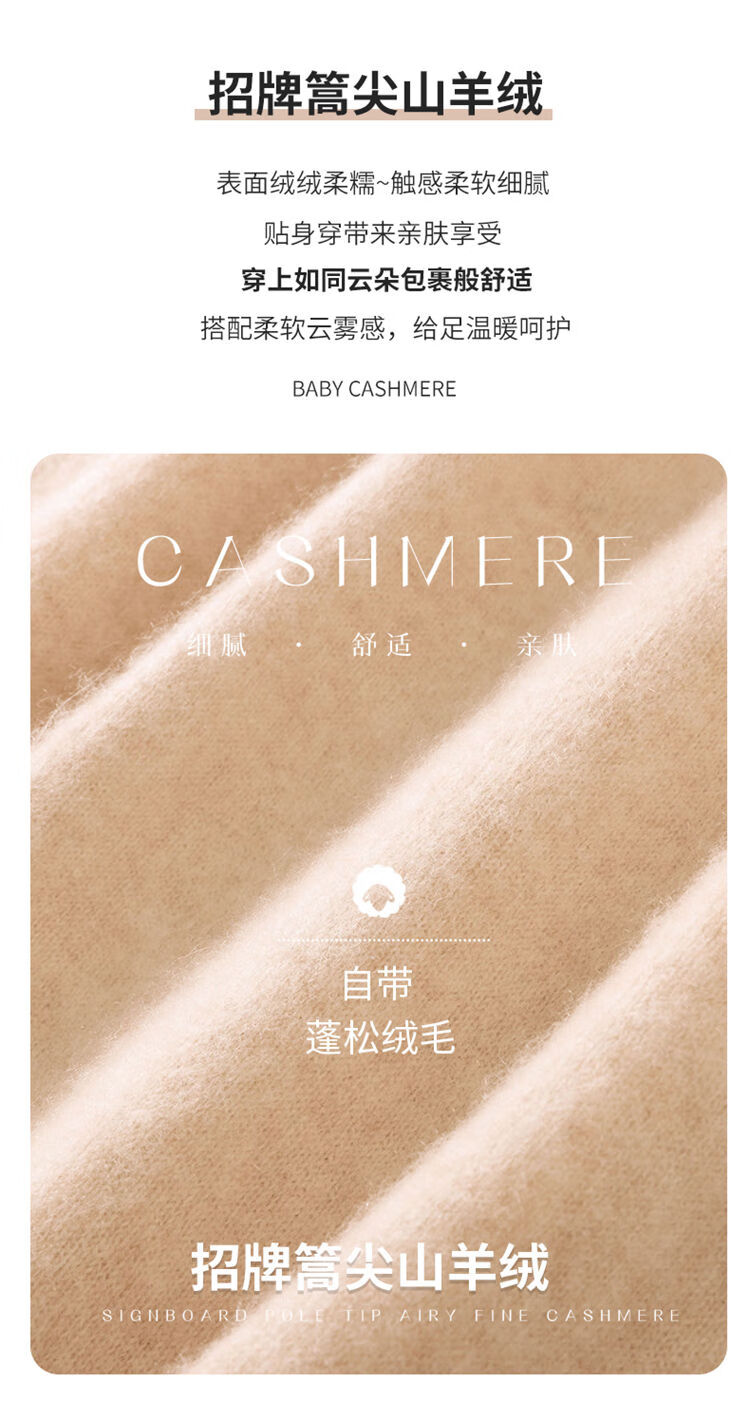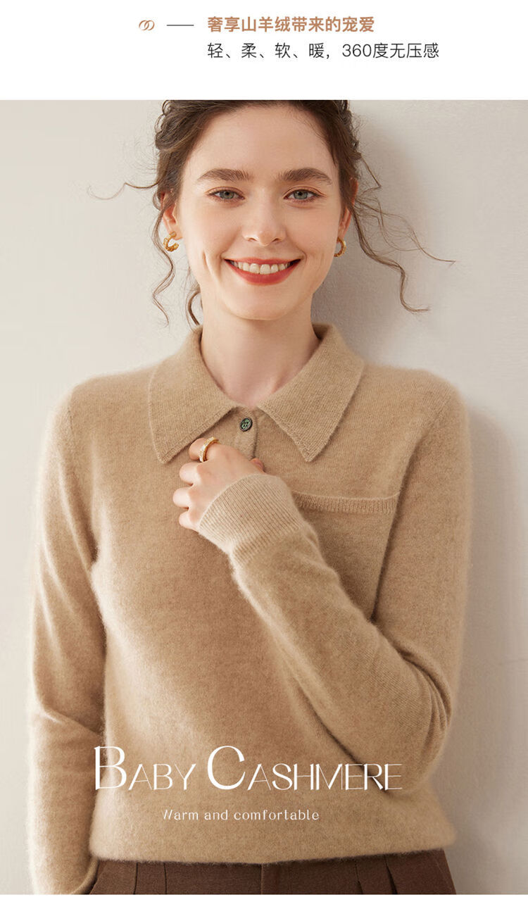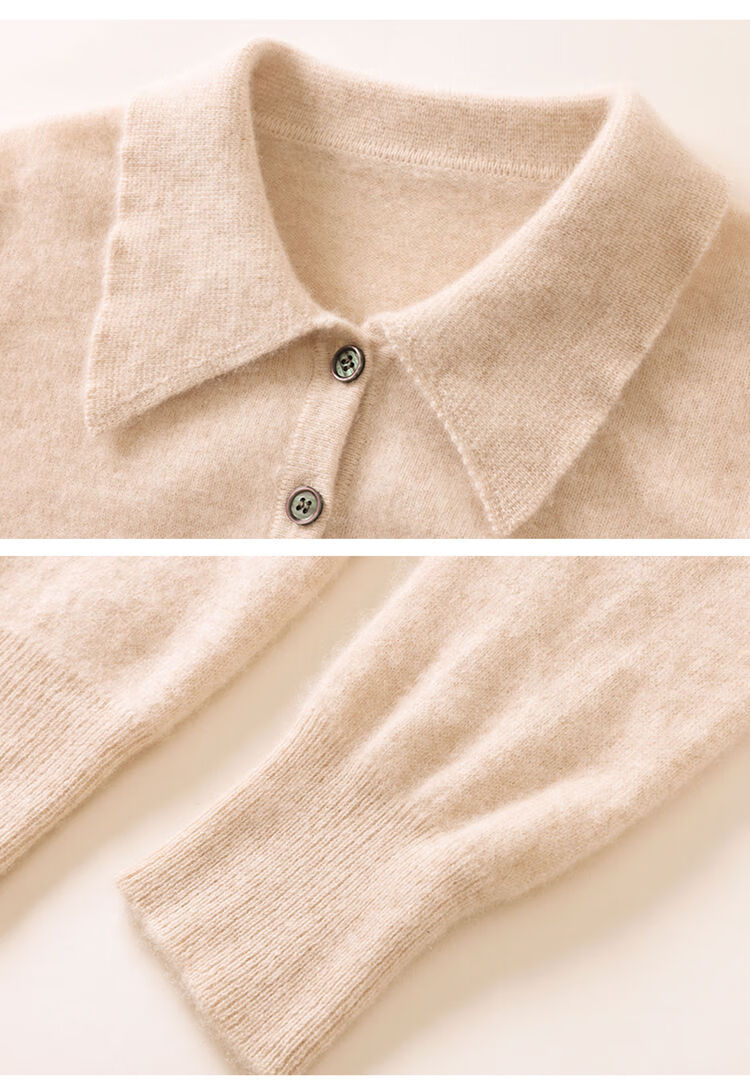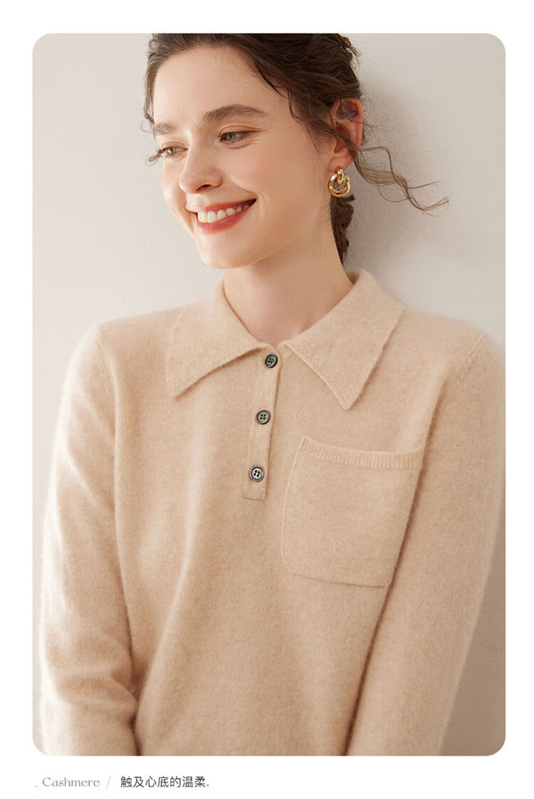 SENLIYA international light luxury high-end cashmere sweater 24 lapels with pockets cashmere sweater for women solid color sweater knitted wool bottoming sweater green velvet beige S 90-105Jin Jin is equal to 0.5 kg