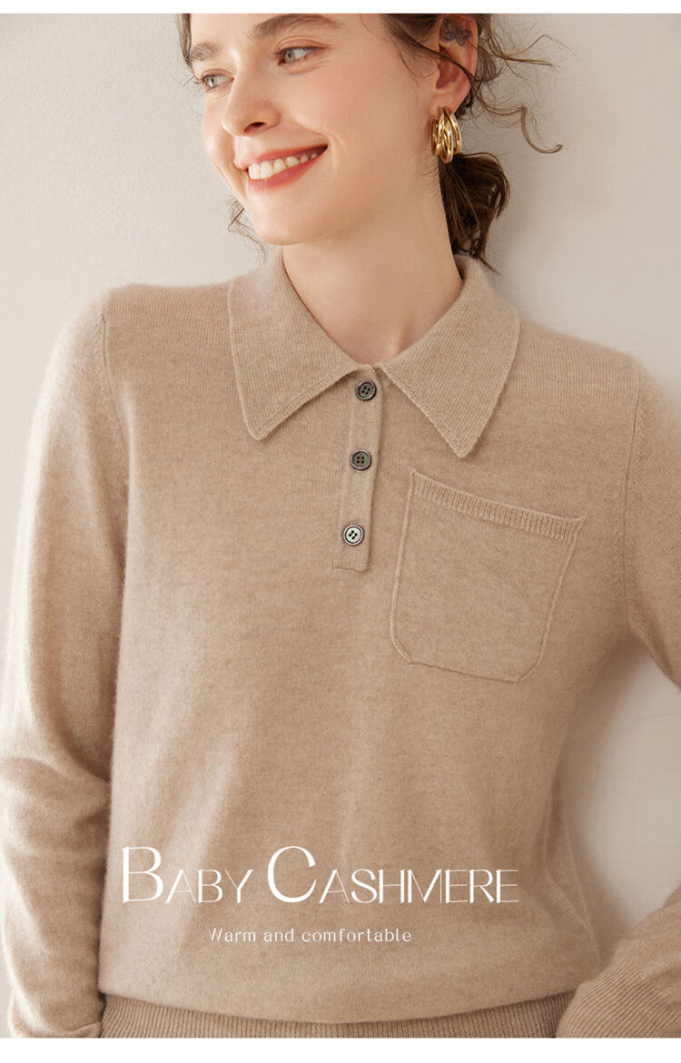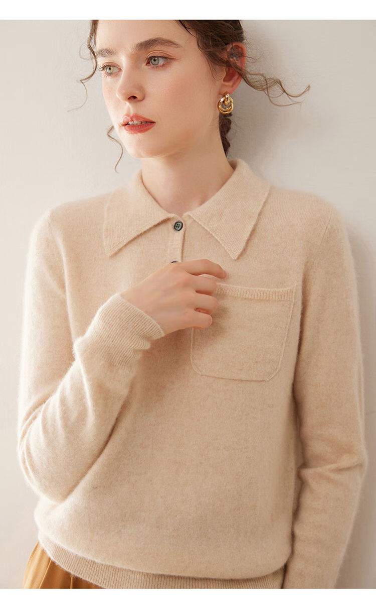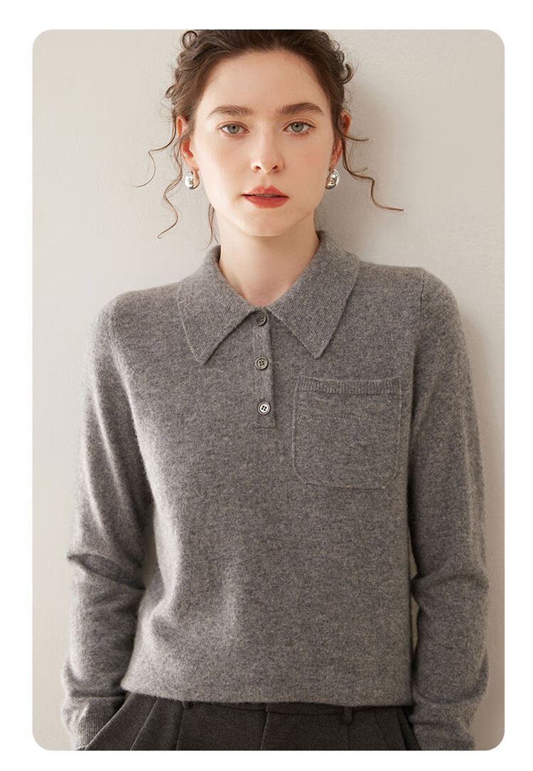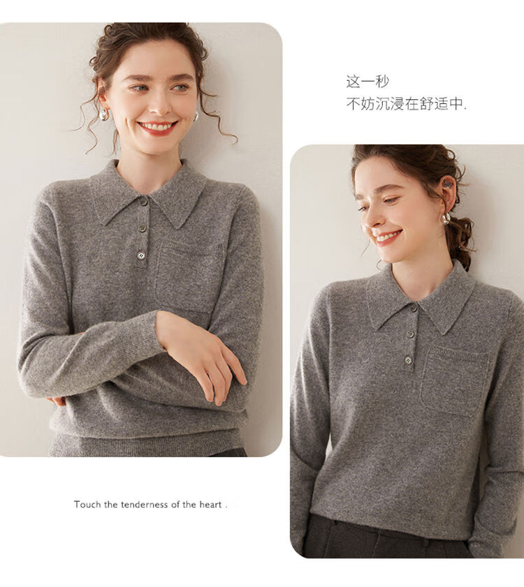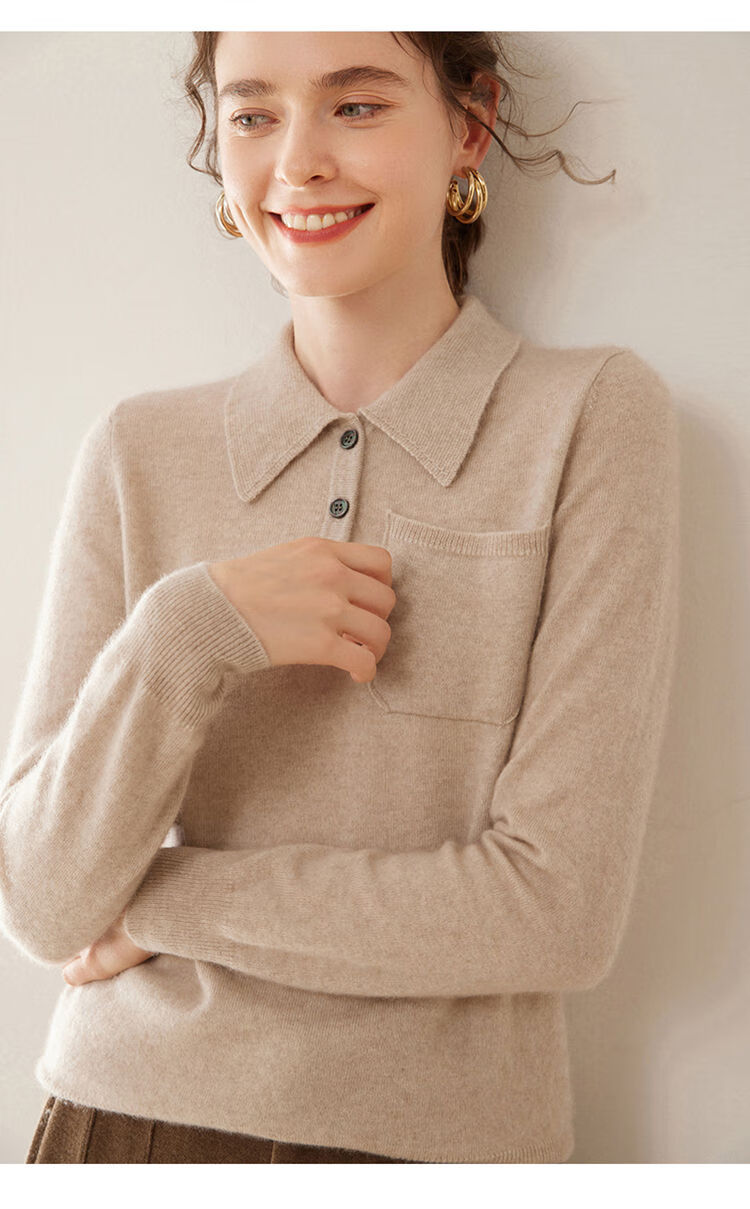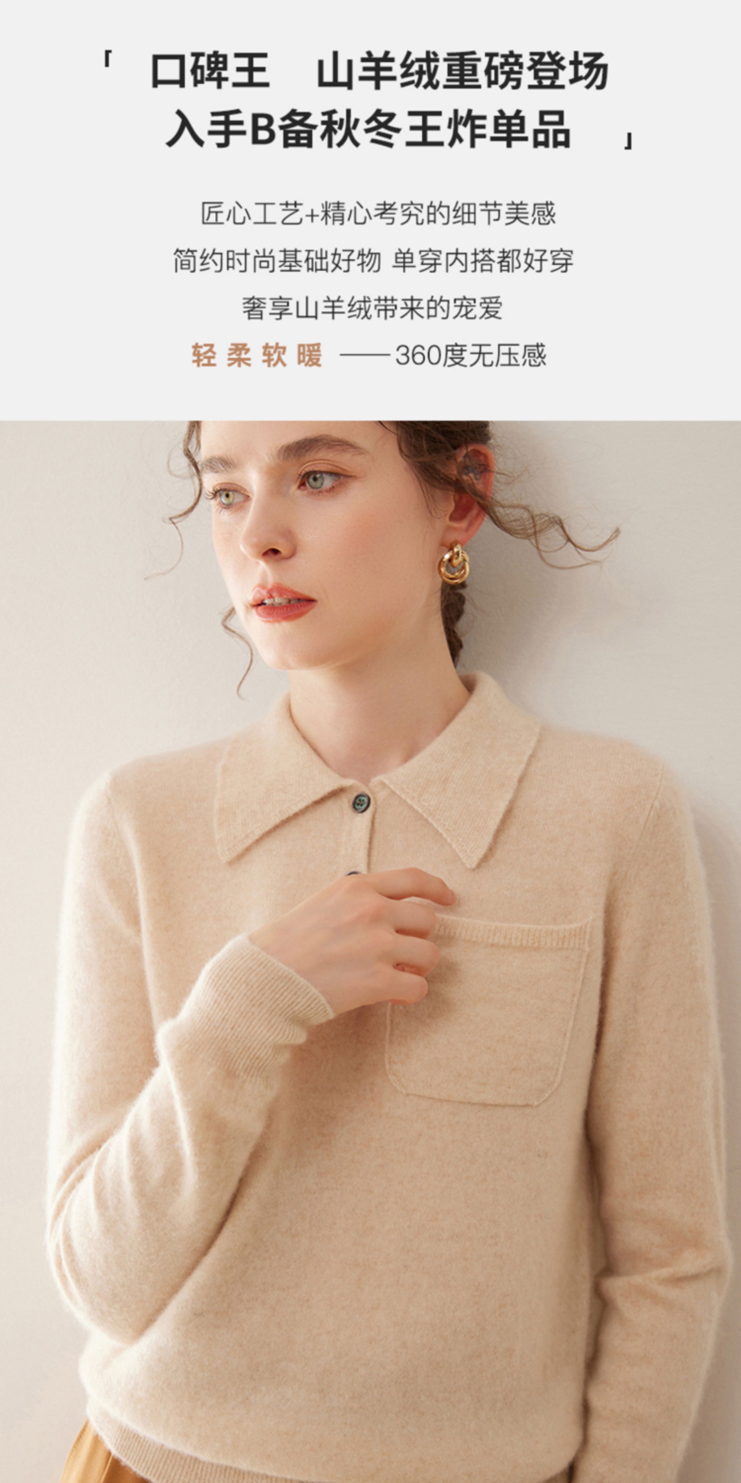 SENLIYA international light luxury high-end cashmere sweater 24 lapels with pockets cashmere sweater for women solid color sweater knitted wool bottoming sweater green velvet beige S 90-105Jin Jin is equal to 0.5 kg