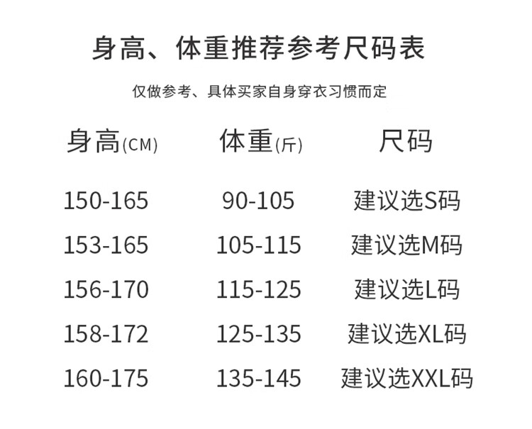 China (cm) 160-165/84-86 165-170 / 88-90 167-172 / 92-96 168-173 / 98-102 170-176 / 106-110