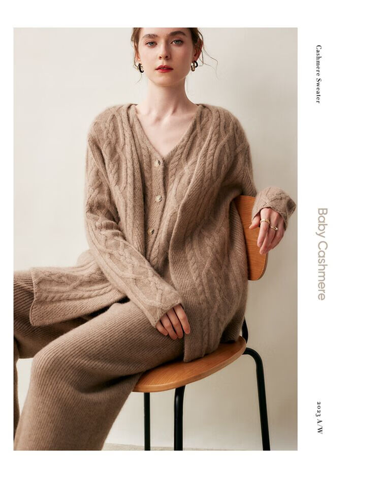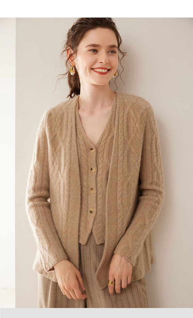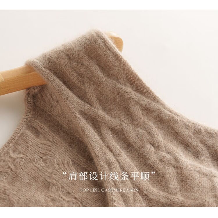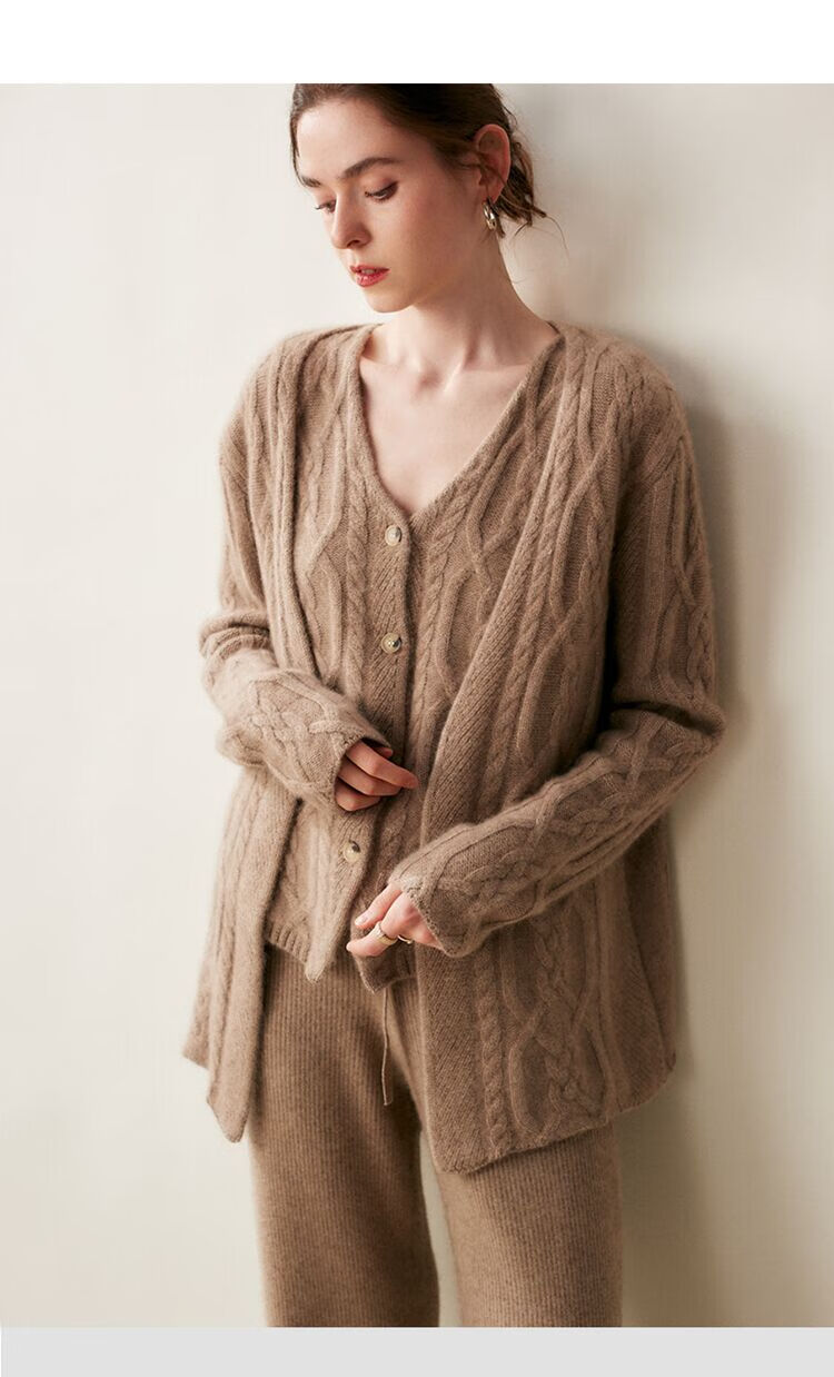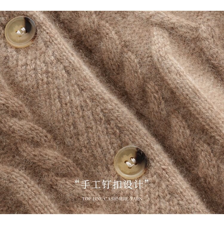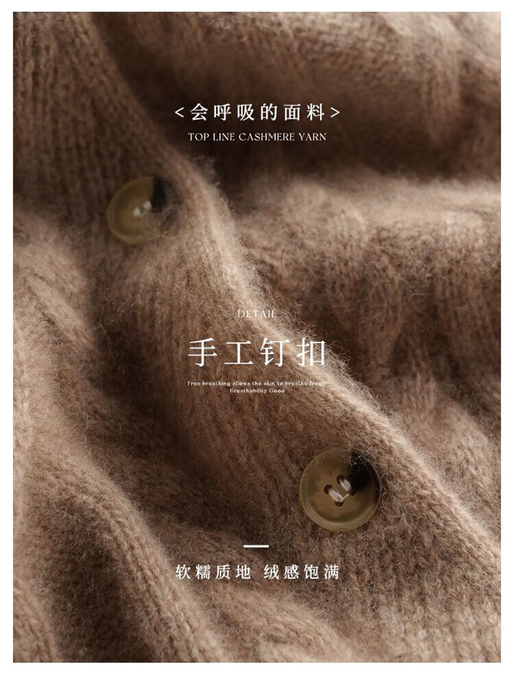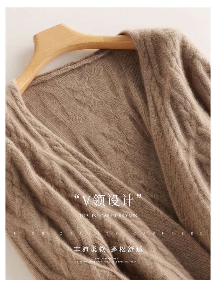 SENLIYA international light luxury high-end cashmere sweater baby small cashmere knitted cardigan women's loose lazy style cashmere sweater hemp khaki brown M
