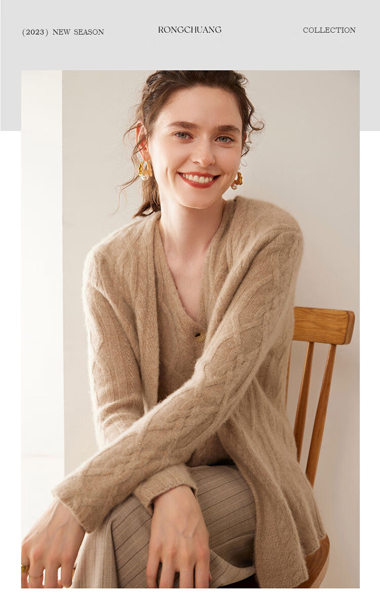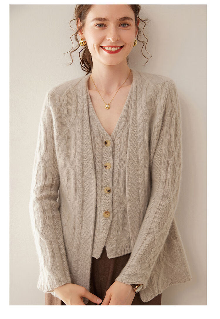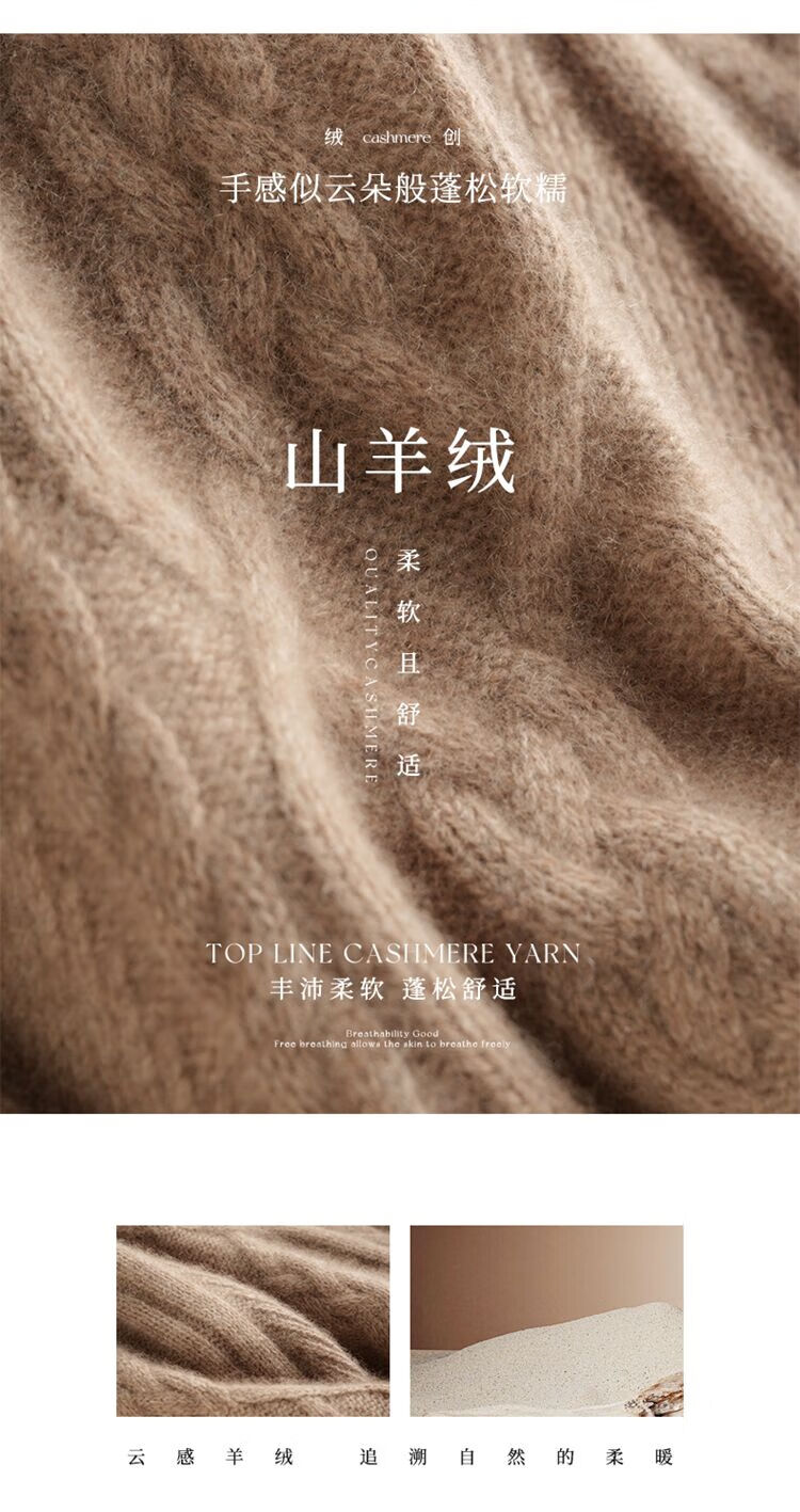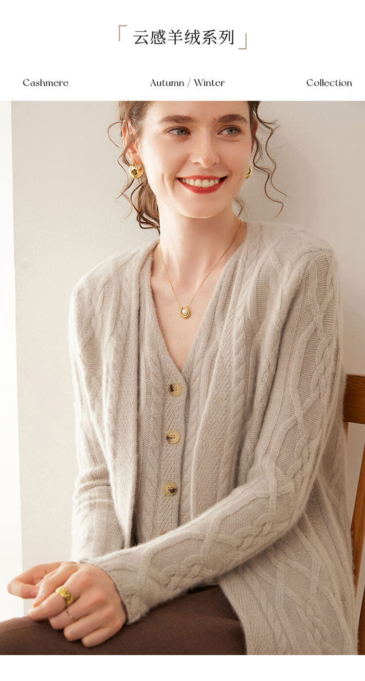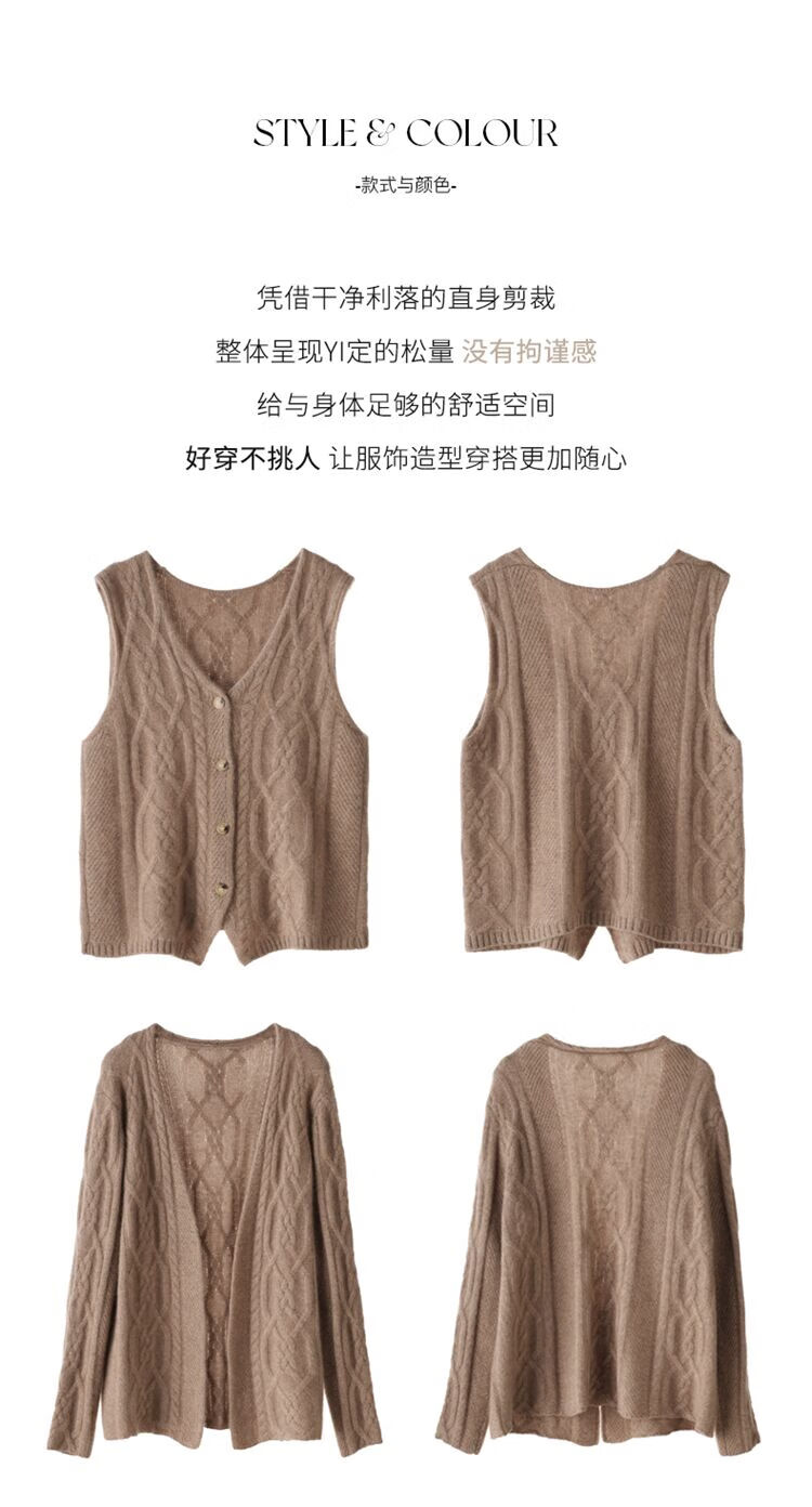 SENLIYA international light luxury high-end cashmere sweater baby small cashmere knitted cardigan women's loose lazy style cashmere sweater hemp khaki brown M